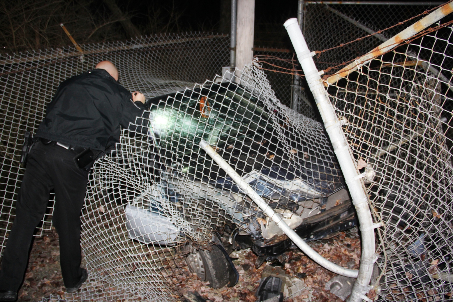 Two young men escaped serious injury after narrowly missing a deer and crashing their car into two connected fences in Rush Township early this morning (Saturday, Jan. 18, 2014). Emergency personnel were called to a single motor vehicle accident shortly after 1:30 AM just northeast of the Fairview Street and Marian Avenue intersection. When they arrived, they observed a car entangled in a fence along Marian Avenue, just short of an Air Products water pumping station. Responding were Rush Township Police, Ryan Township Police, Quakake Fire Company, Hometown Fire Company, Ryan Rescue Squad/EMS and others. The two males in the vehicle were treated on scene by Ryan Township EMS.