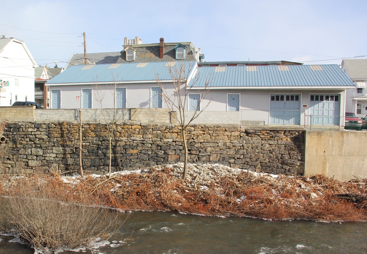 No one guessed it correctly, even though many of you came close. It is a stone wall along the Little Schuylkill River located about 15 foot southwest of dirt road and T.M.S. Storage building near the intersection of Mauch Chunk and Schuylkill Avenue in Tamaqua.
