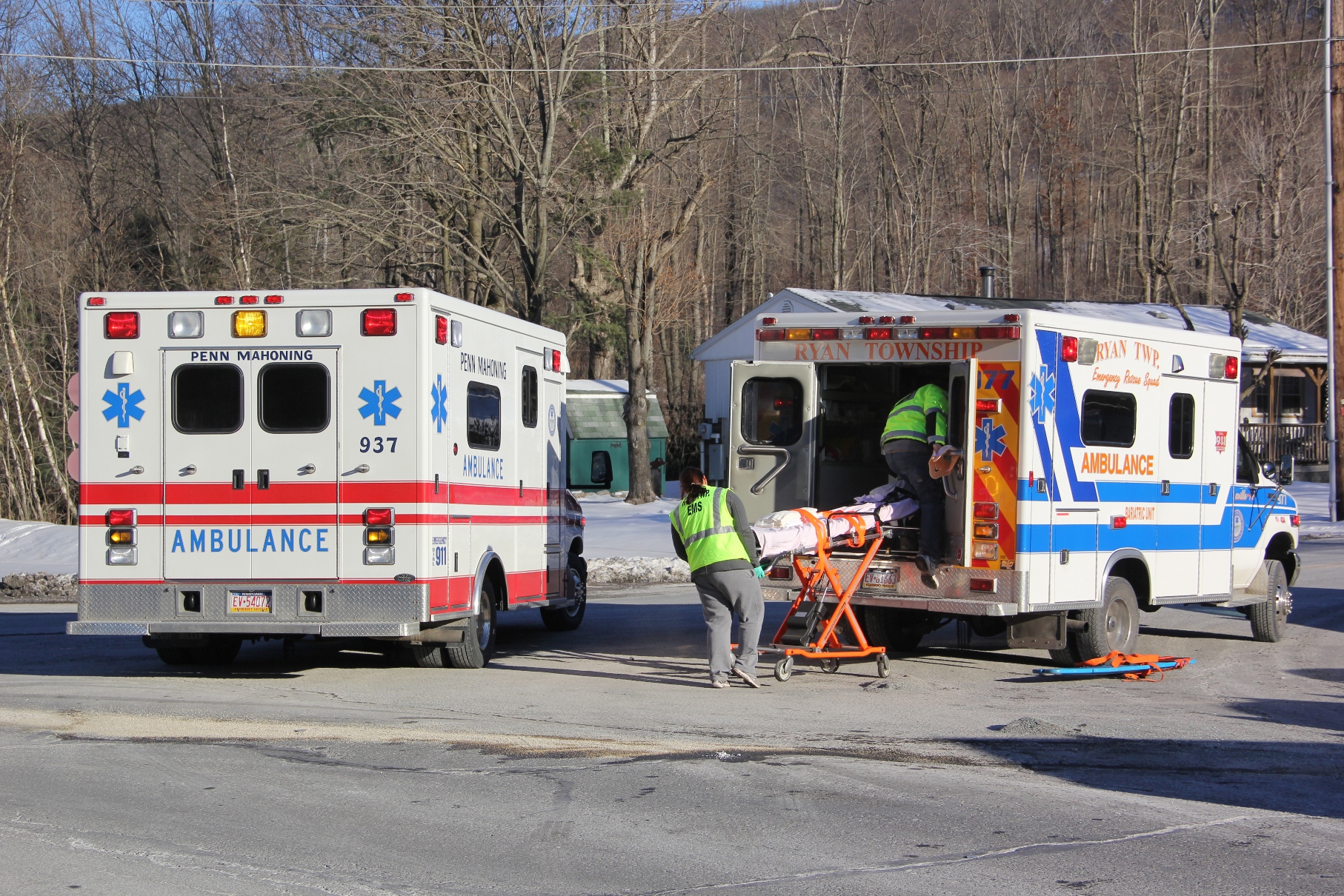 Emergency personnel were called around 3 PM today (Wed., Jan. 29, 2014) to the intersection of US209 and Catawissa Street in Schuylkill Township for a two-vehicle collision involving a student transport service van and a sedan. Two children and two women in the van were taken via four ambulances to nearby hospitals for unknown injuries. The male teenage driver of the other vehicle, a green Dodge Neon, was not injured. Officials on scene said the four were taken to the hospital only as a precaution. Responding were Tuscarora Fire Company, Penn Mahoning Ambulance, Lehighton Ambulance, two Ryan Township Ambulance crews, area fire police and State Police.