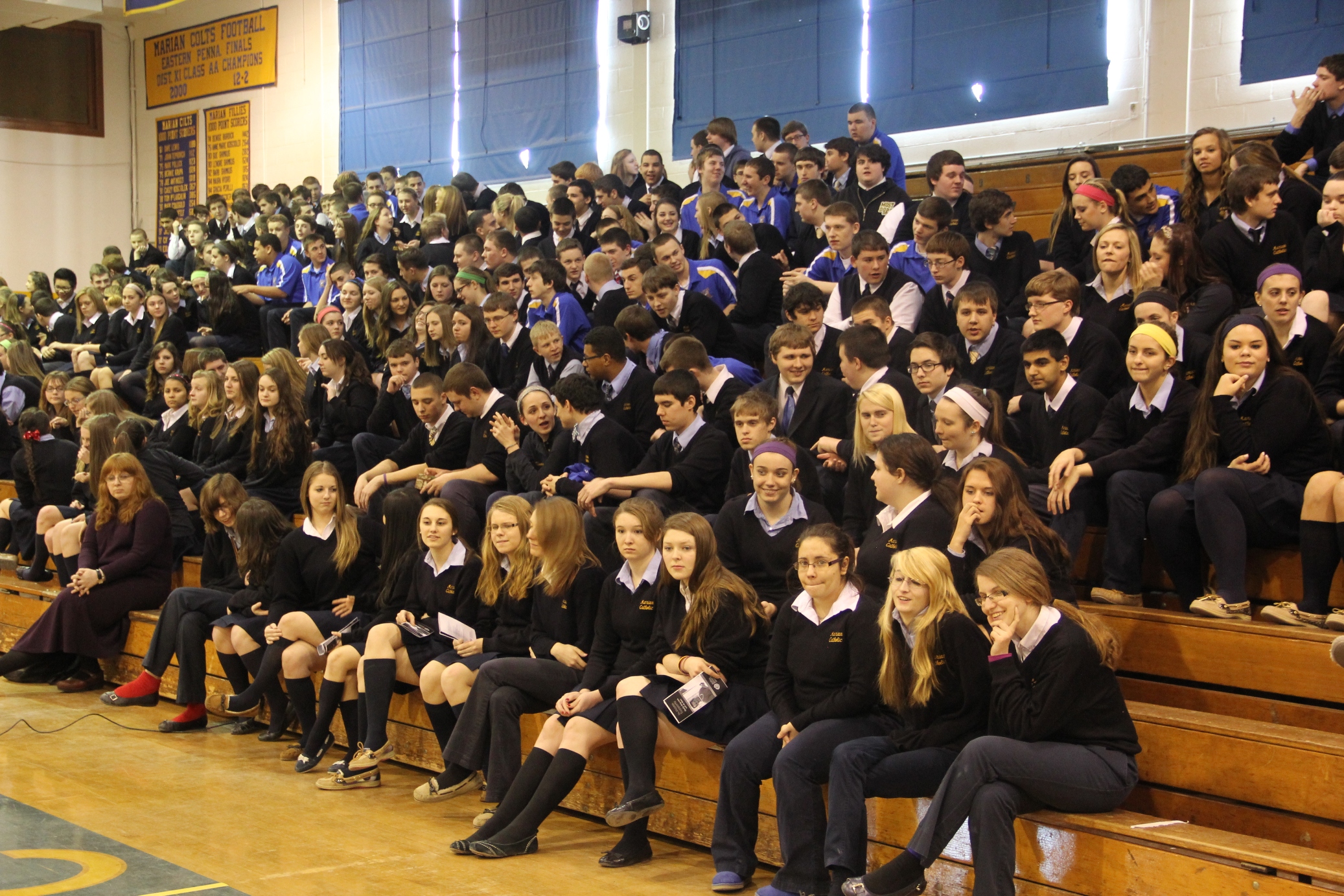 Students and staff at Marian Catholic High School made a donation to three area non-profit organizations today (Jan. 30, 2014) following special student seminars detailing the progress and activities of these organizations. Talking to students were speakers with Access Services and Catholic Social Services.