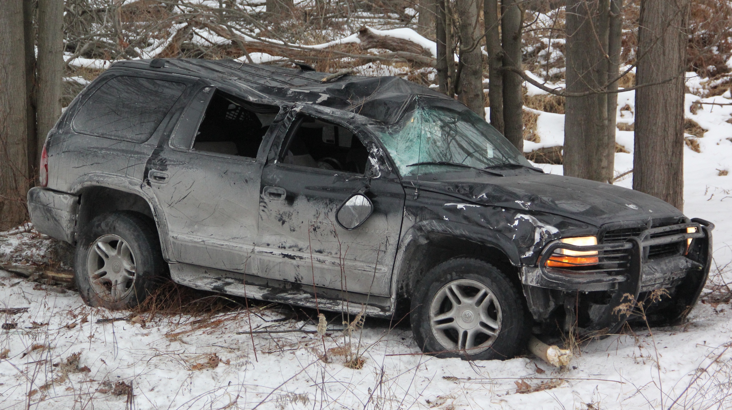 An unidentified man was injured after losing control and flipping his SUV (sport utility vehicle) along Hauto Highway (SR54) in Hometown. The crash occurred around 8:30 AM today (Friday, Jan. 31, 2014) about one half mile east of the entrance to Lake Hauto. The SUV, a black Dodge Durango, was positioned upright about 40 feet from the road. Tire tracks in the snow show that the driver was traveling east. The man was taken to Lehigh Valley Hospital via ambulance for unknown injuries. Responding were Rush Township Police, Hometown Fire Company, Quakake Fire Company, Tamaqua Ambulance and Hometown Fire Police. Tamaqua Rescue was also called, but later canceled.