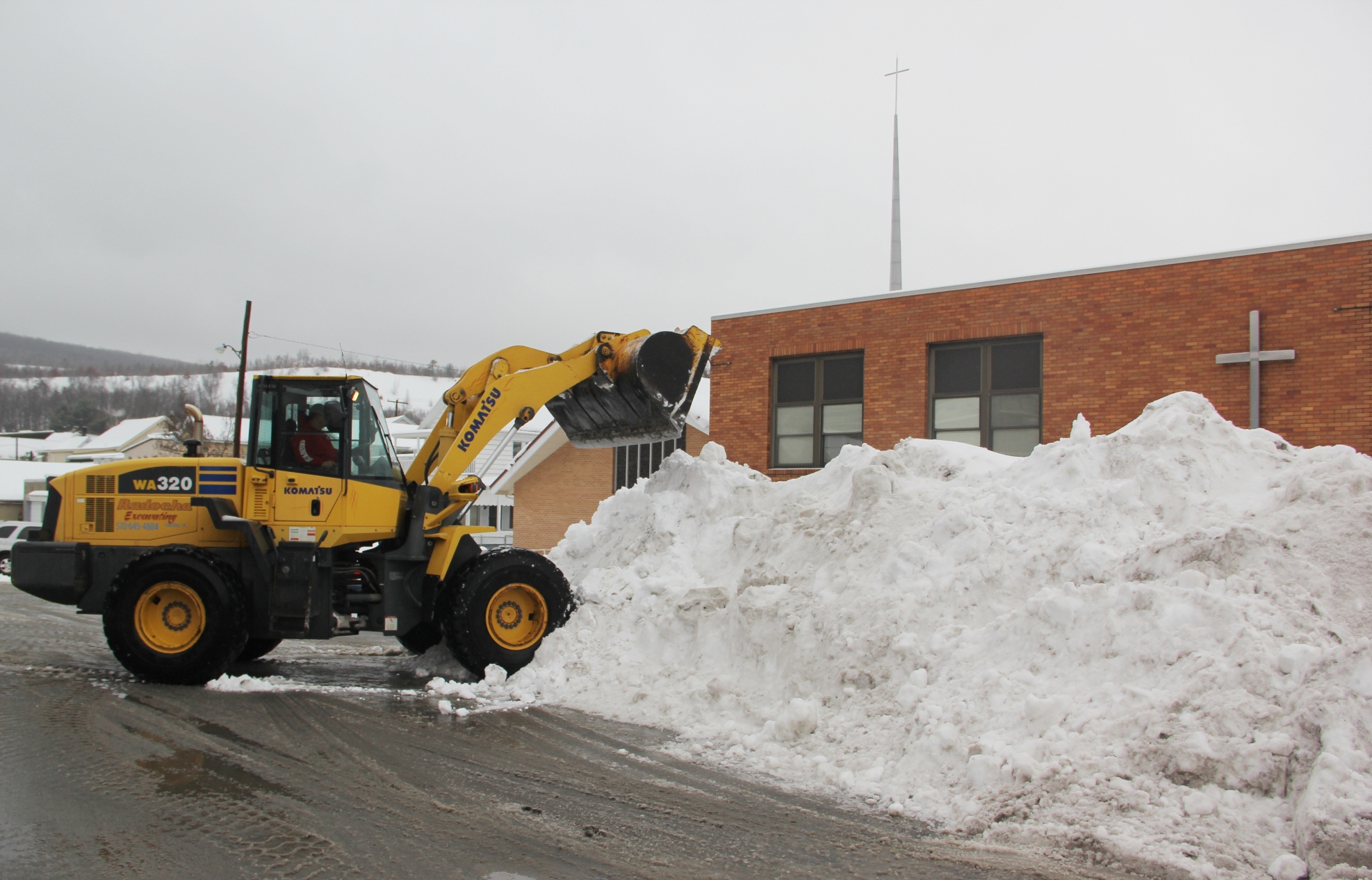 Lenny Kovach of Radocha’s Excavating in Coaldale utilizes a large loader to remove snow adjacent to the St. John’s United Church of Christ in Tamaqua. Our area received about 3 and a half inches of snow and sleet today. All schools were closed.