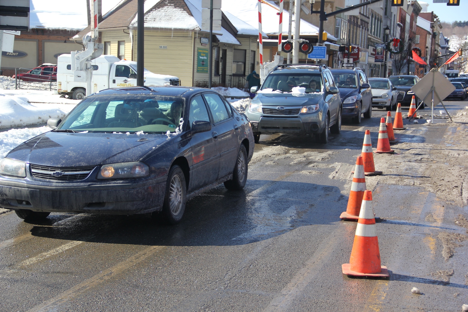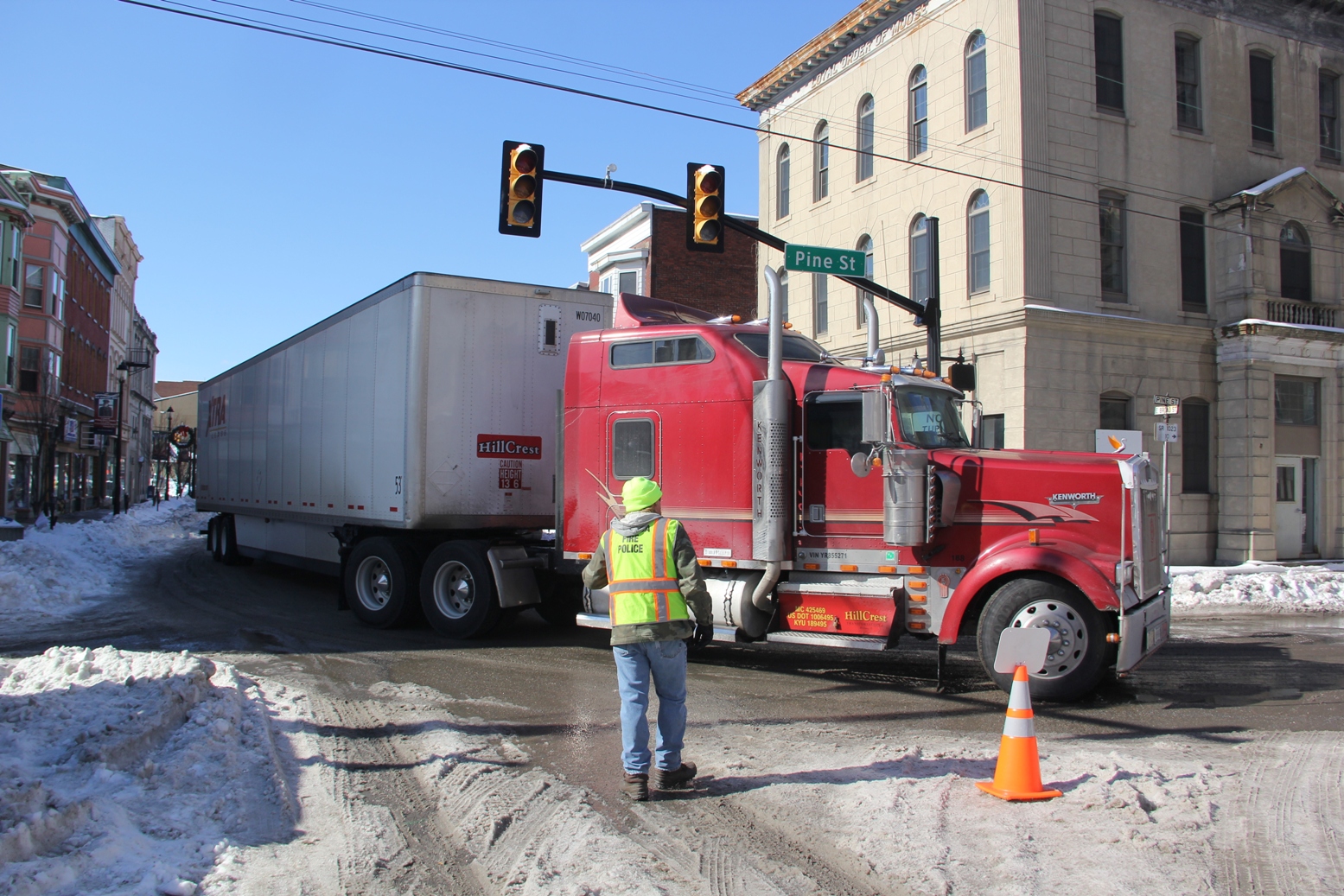 Tamaqua Fire Police volunteer John “Jack” Bowman detours northbound traffic at the Five Points intersection.