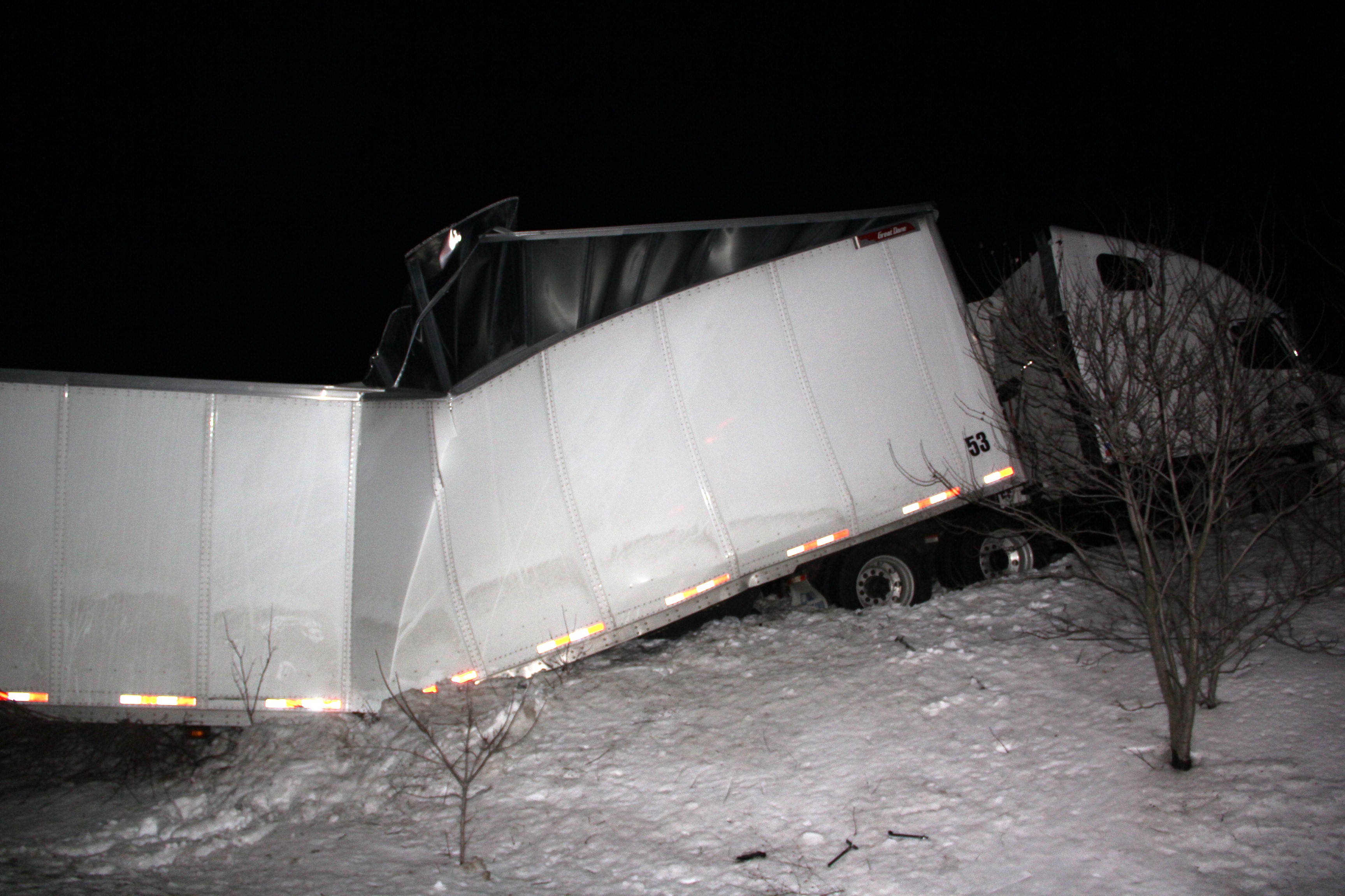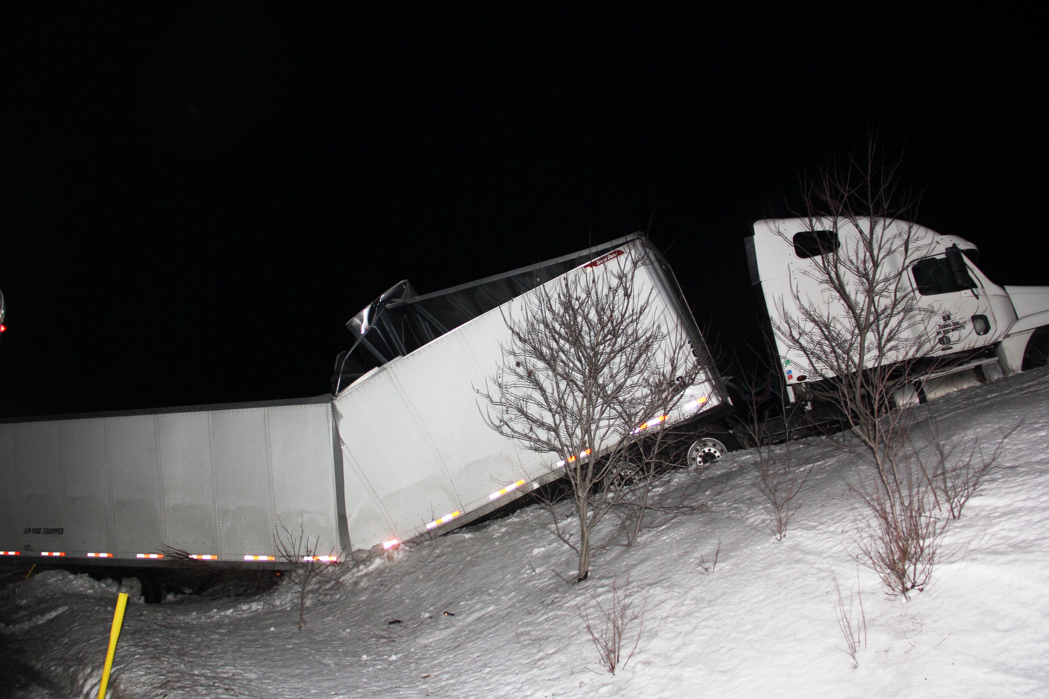 Tractor Trailer Up Embankment, Exit 138, Kline Township, 2-19-2014 (3)