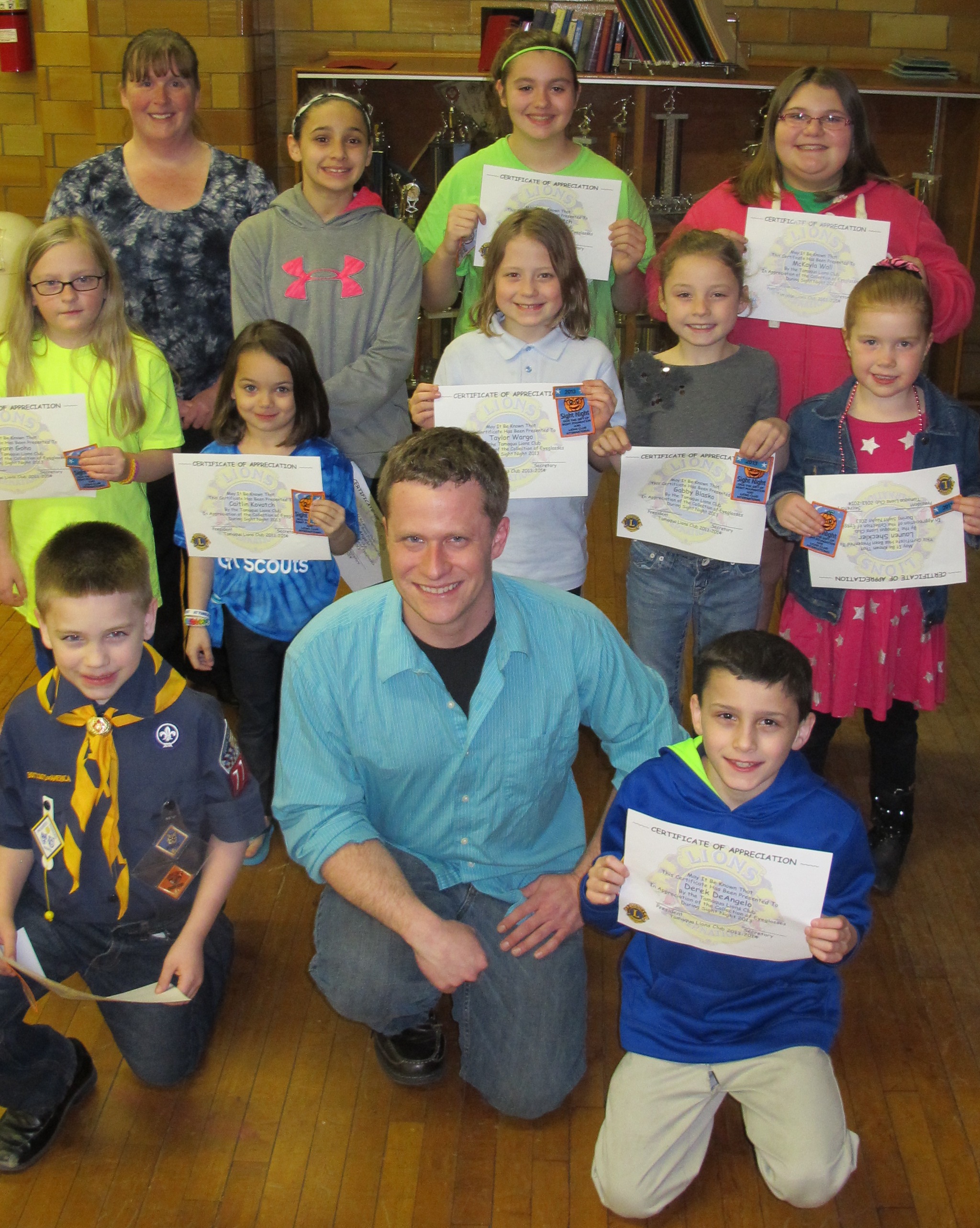 Scouts who collected between 10 and 15 eyeglasses were Ty Mauer, Nicholas Postupack, Aiden Mlynek, Corey Martin, Eric Richardshon, Bryce Bieber, Logan Buccieri, Dalton Sadusky, Zachary Swinburne, Mason Pennbirth, Derek DeAngelo, Anthony DeAngelo, Bradley McAloose, Devlin Rascavage, Nicholas Wall, Noelle Schuler, Audrey Florea, Helen Florea, Ashley DeAngelo, Victoria Carrell, Morgan Nelson, Emma Frohnheiser, Layla Kunkel, Kalie Woodring, Alivia Woodring, Emily Lang, Cassidy Englert, Chloe Englert, Courtney Kovatch, Caitlin Kovatch, Taylor Wargo, Julie Anna Liebsch, Alyssa Alabovitz, Kali Alabovitz, Jessie Lacrosse, Haley Karnish, McKayla Wall, Kallia Wall, Julia Romankow, Erica Goho and Ryann Goho.