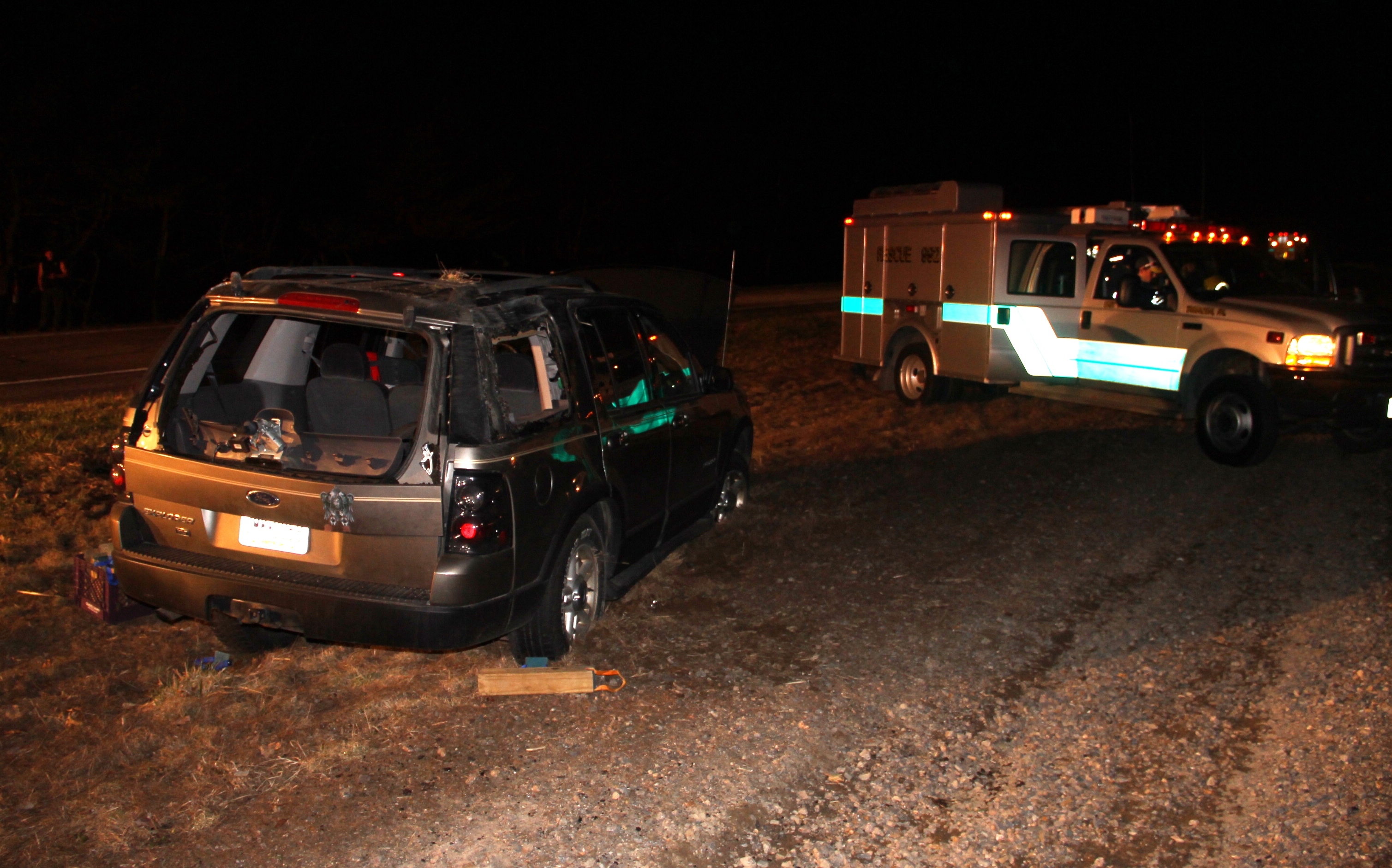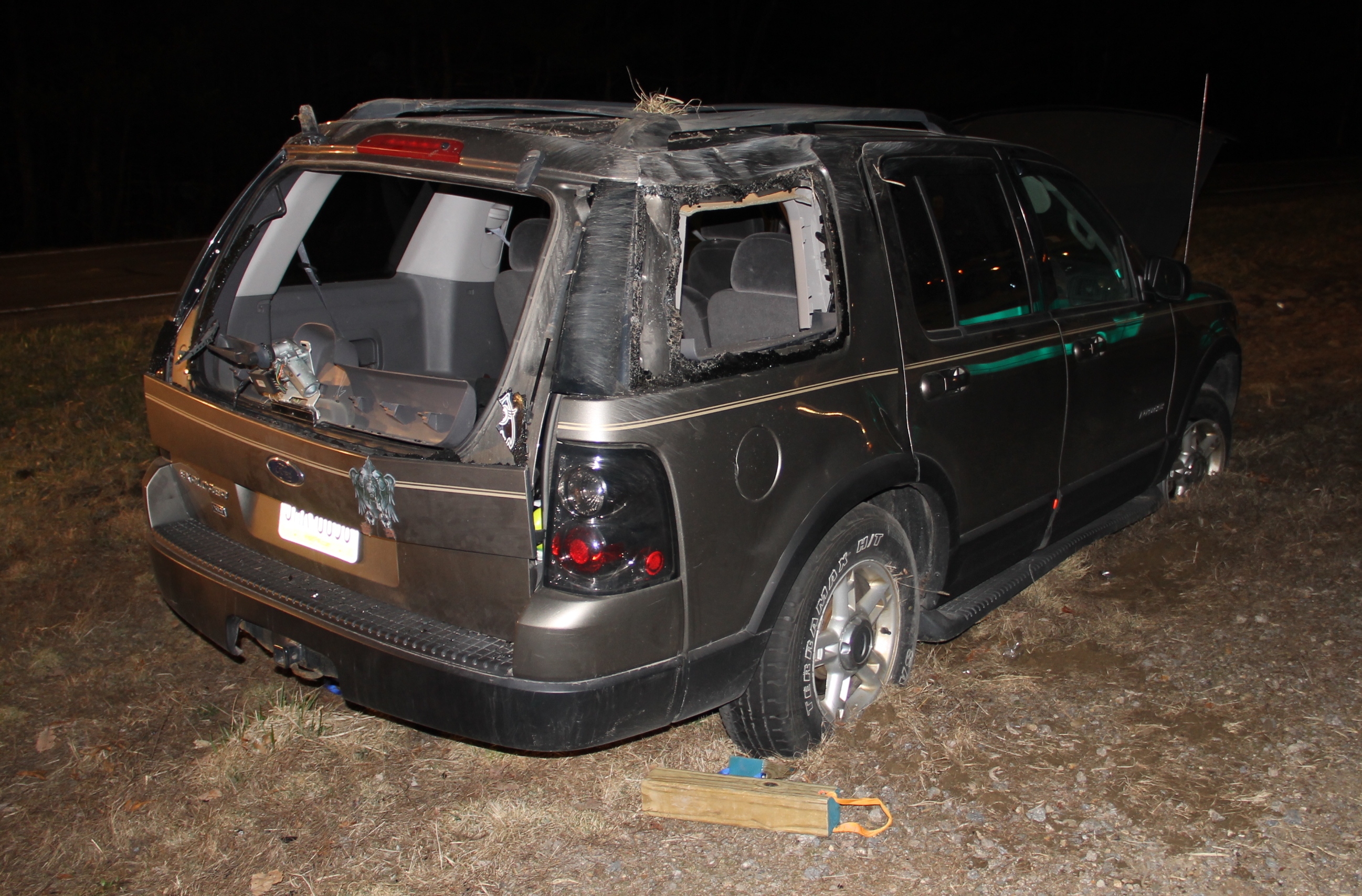 Tire tracks at the scene showed that the SUV (a grey Ford Explorer) was traveling west on US209 (about 1/2 mile east of the Tuscarora intersection) when it overturned and landed back on its wheels in the grass alongside the eastbound lane.