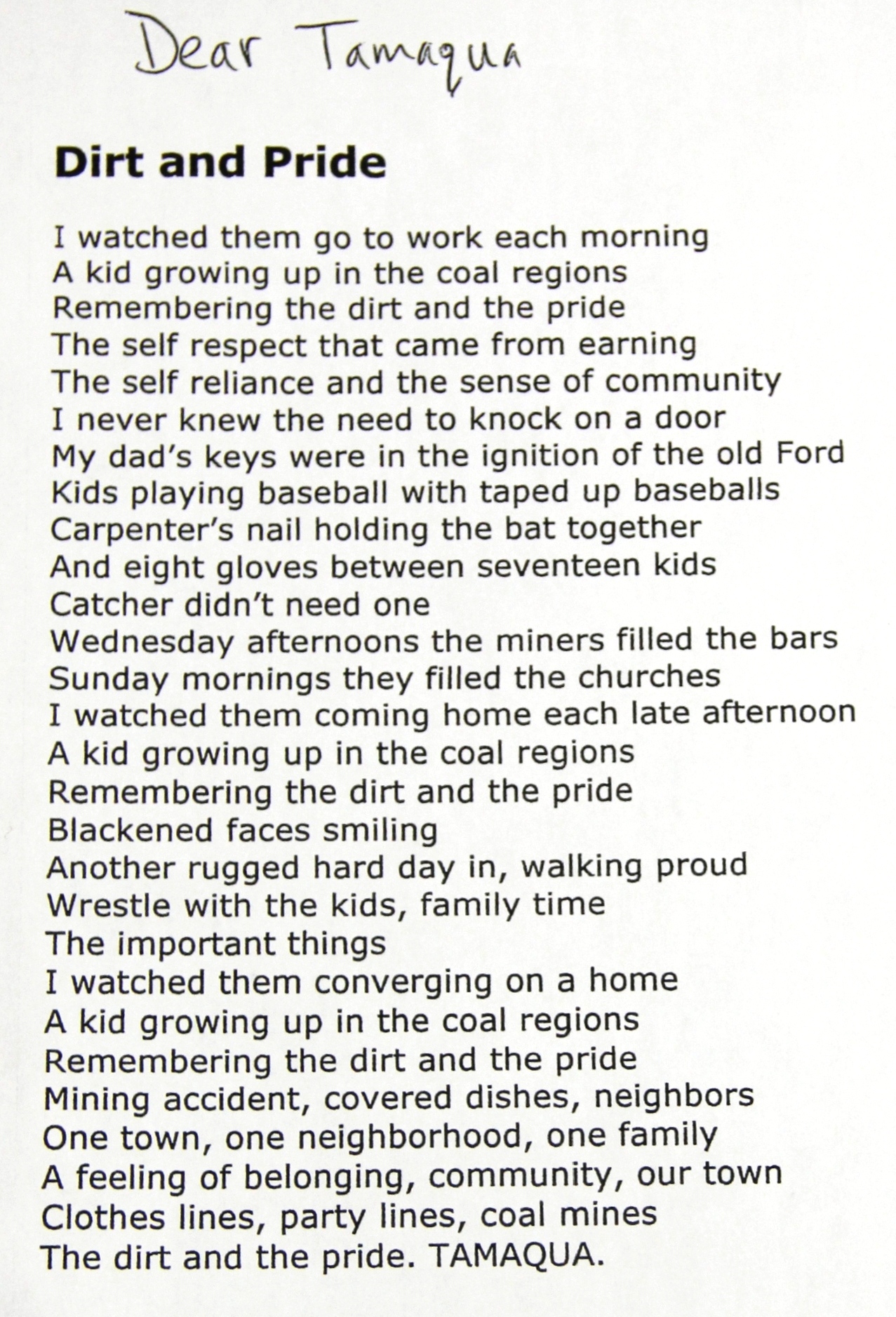 – Morrison spoke about a new Tamaqua community collaborative called “Dear Tamaqua”. Click HERE to view a related TamaquaArea.com story. Click HERE to view a related Times News story. Morrison also read the first letter titled “Dirt and Pride” given to the project by Tamaqua native Vince Suzadail Jr. of Summit Hill. To submit your Tamaqua story, photo, video, artwork or facts, visit www.DearTamaqua.com.