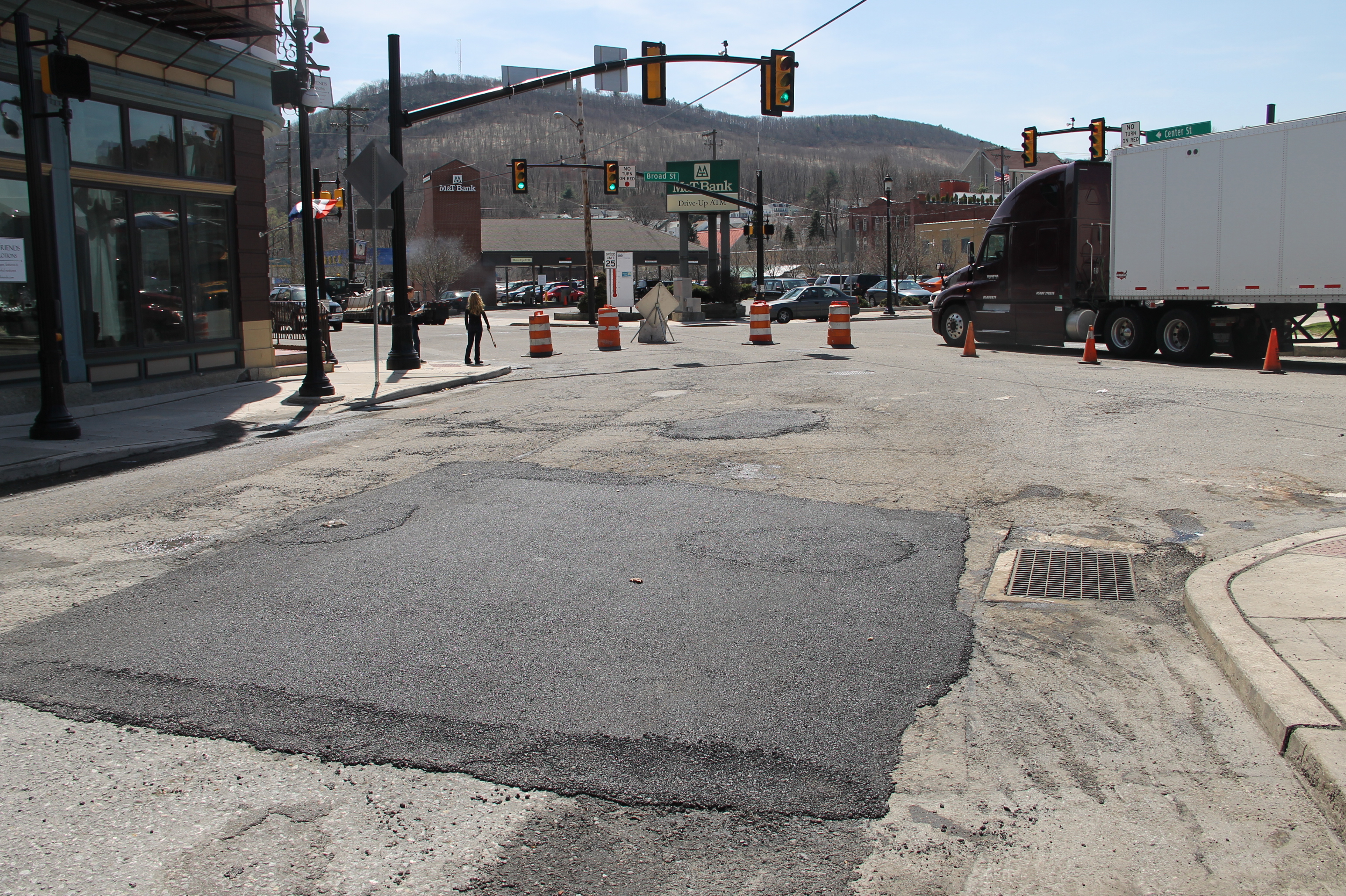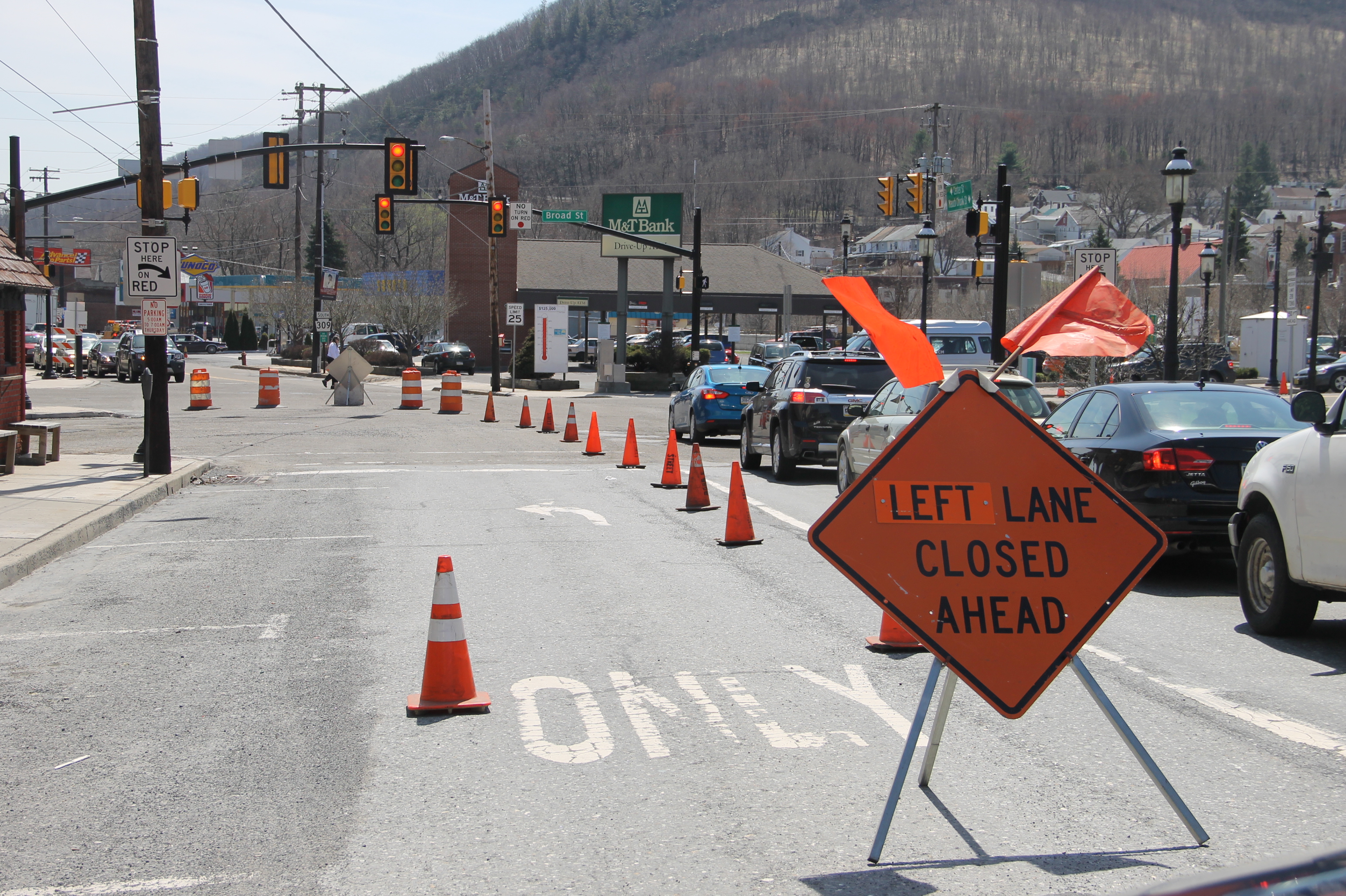 West Mauch Chunk Street in Tamaqua is now opened after being closed most of the work day today (Thursday, April 17, 2014) while crews performed large asphalt patch repairs to the road. During the repairs, drivers were rerouted via cones and signs. The road was opened back up around 2:30 PM.