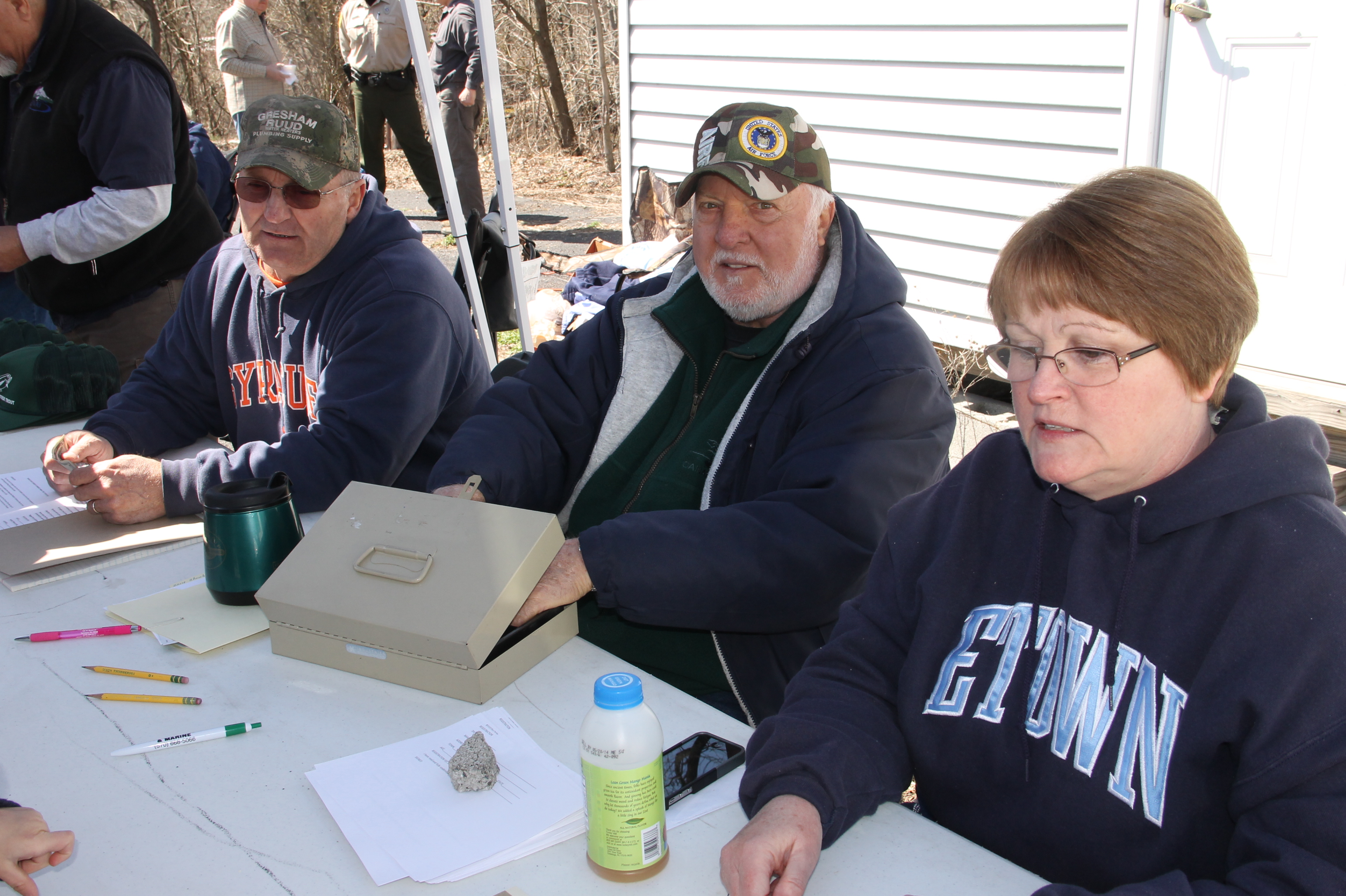 From back left are Schuylkill County Trout Unlimited (SCTU) members and volunteers Ann McCole, Jan Mione, Tom Folino, Phyllis Bondura, Kevin Clouser (PA Conservation Officer), John Bondura (chairman) and Tony Mione (President). On hand, but not pictured, were SCTU Mike Carroll, Jake Carl and Beau Huey.