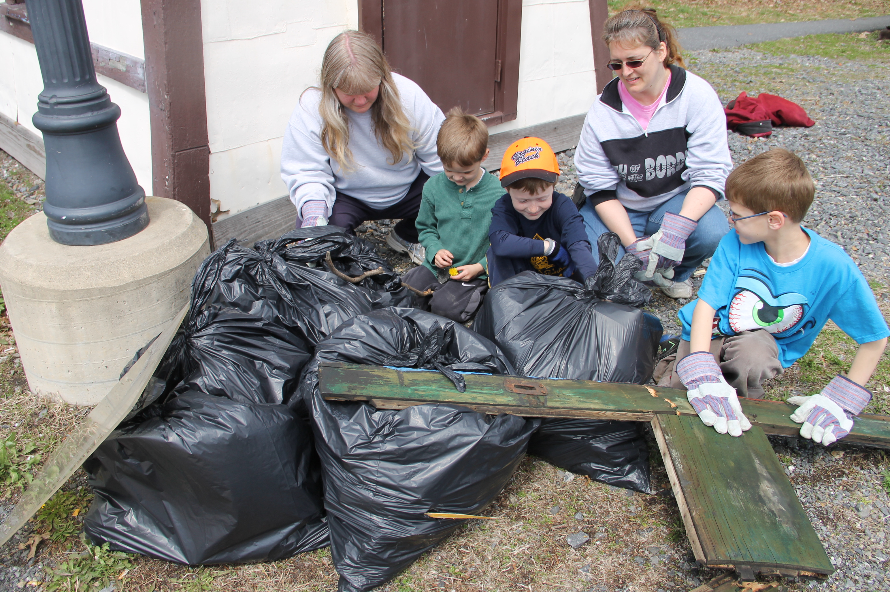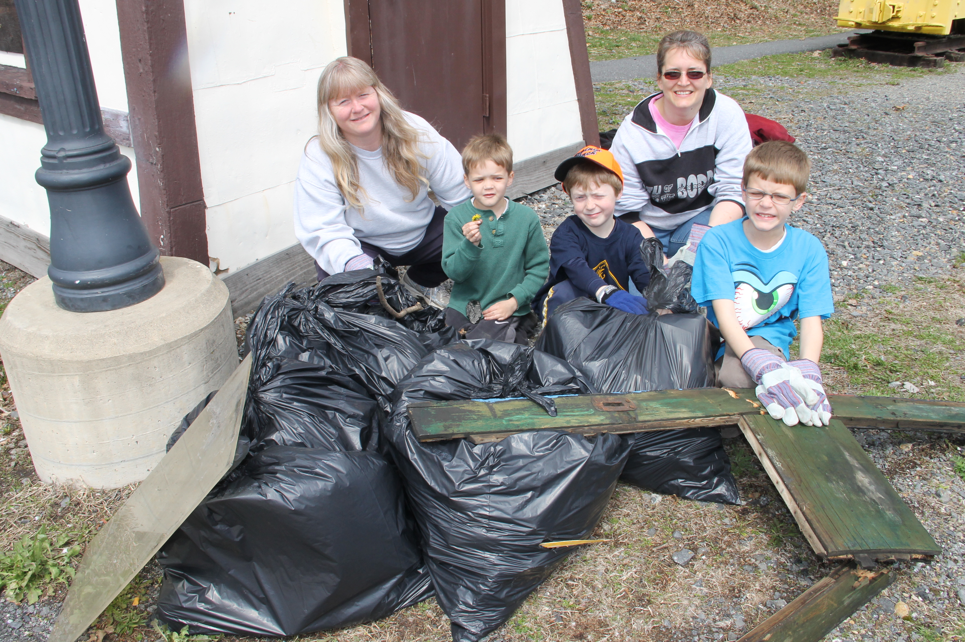 Numerous volunteers took part in Saturday’s (April 26, 2014) community cleanup throughout Tamaqua. Pictured cleaning around the Tamaqua Train Station are, from left, Jill Delp, Steven Richardson, Jacob Delp, Eric Richardson, and Jackie Richardson.