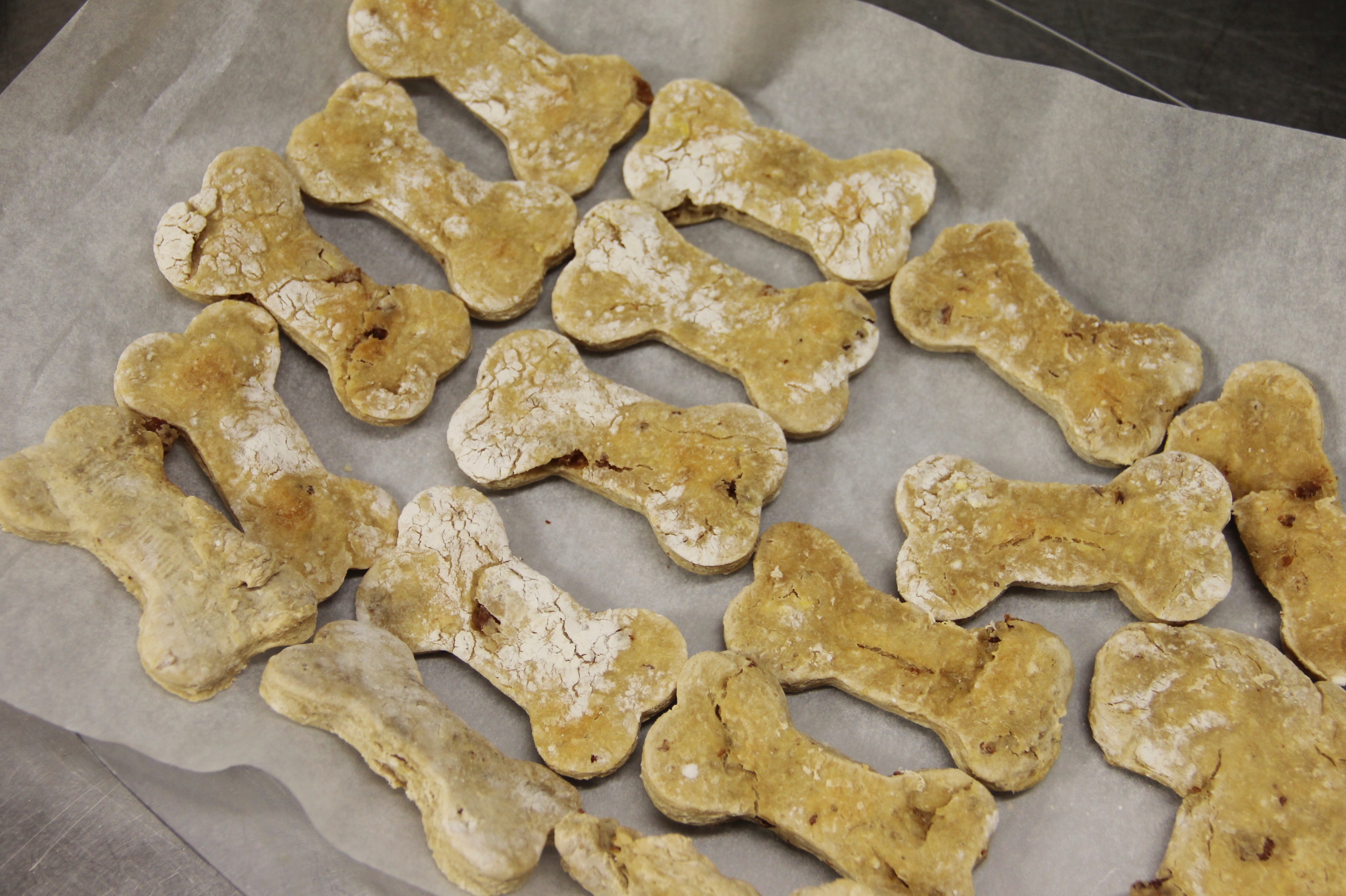 6.Cut into slices or bone shapes (you can purchase a bone shaped cookie cutter to make shapes with)