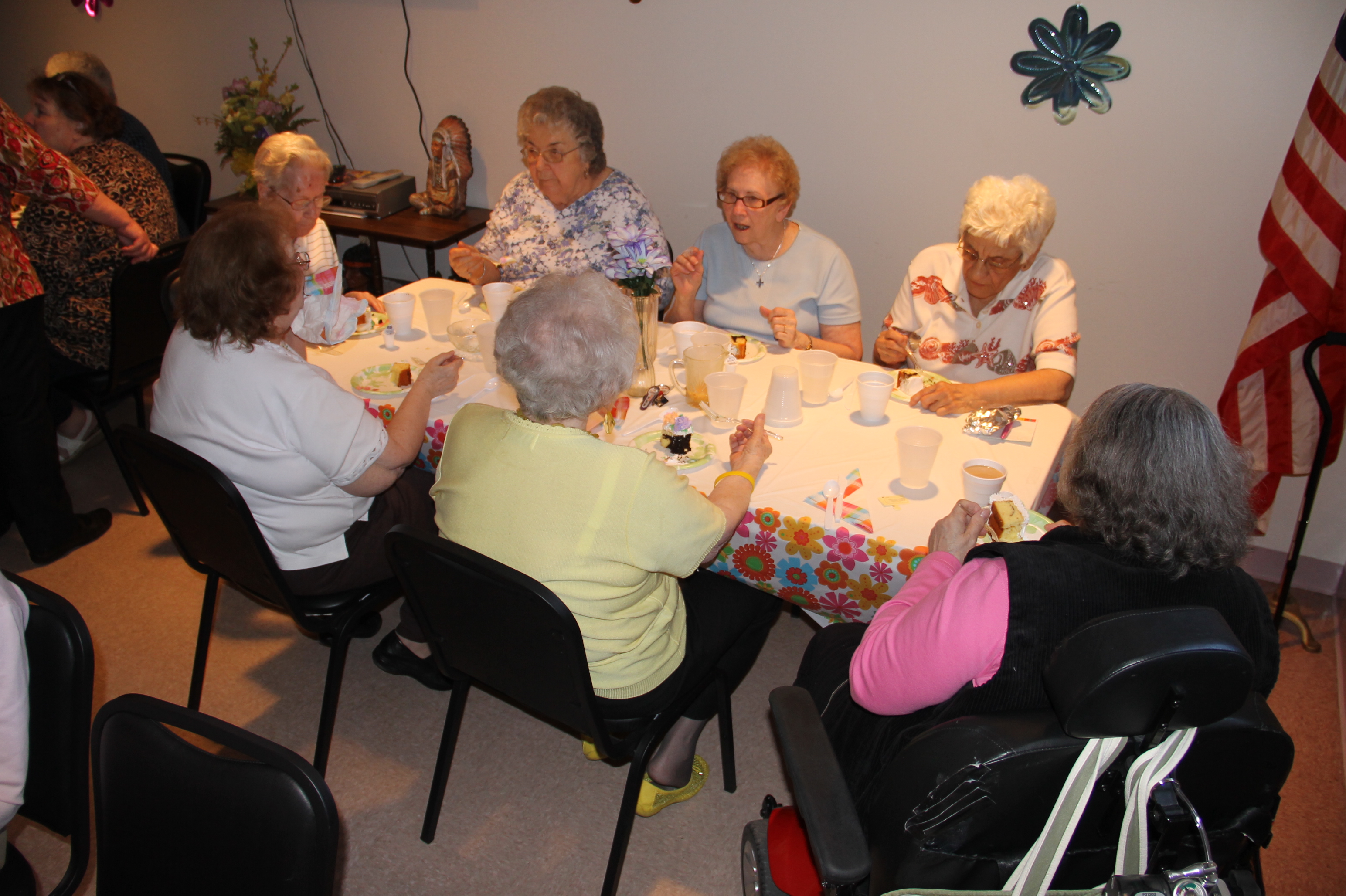 During the party, staff Sandra Davis (Supportive Services) and Cheryl Martuscelli (Property Manager) explained the history of the building. Their notes read: