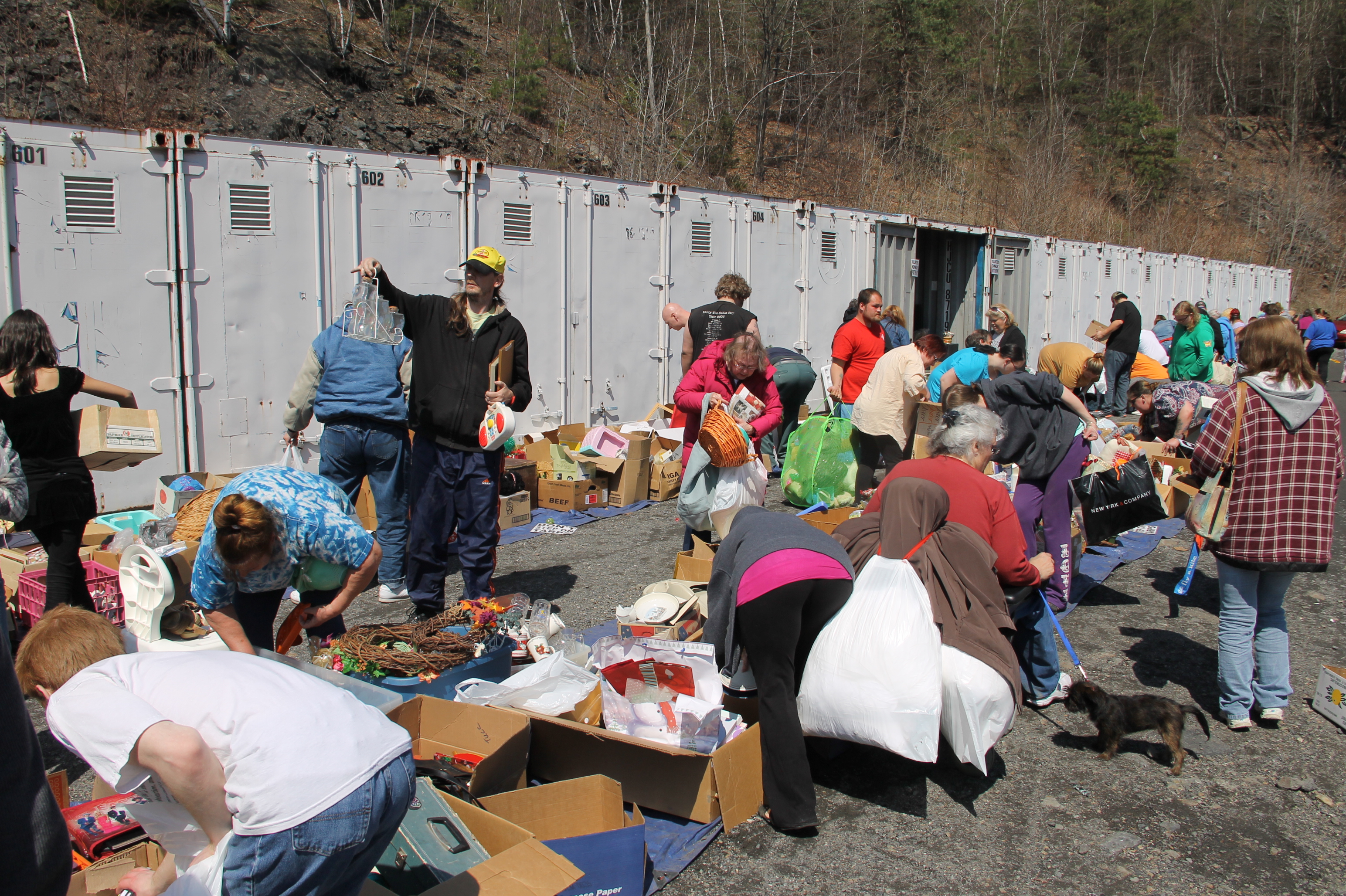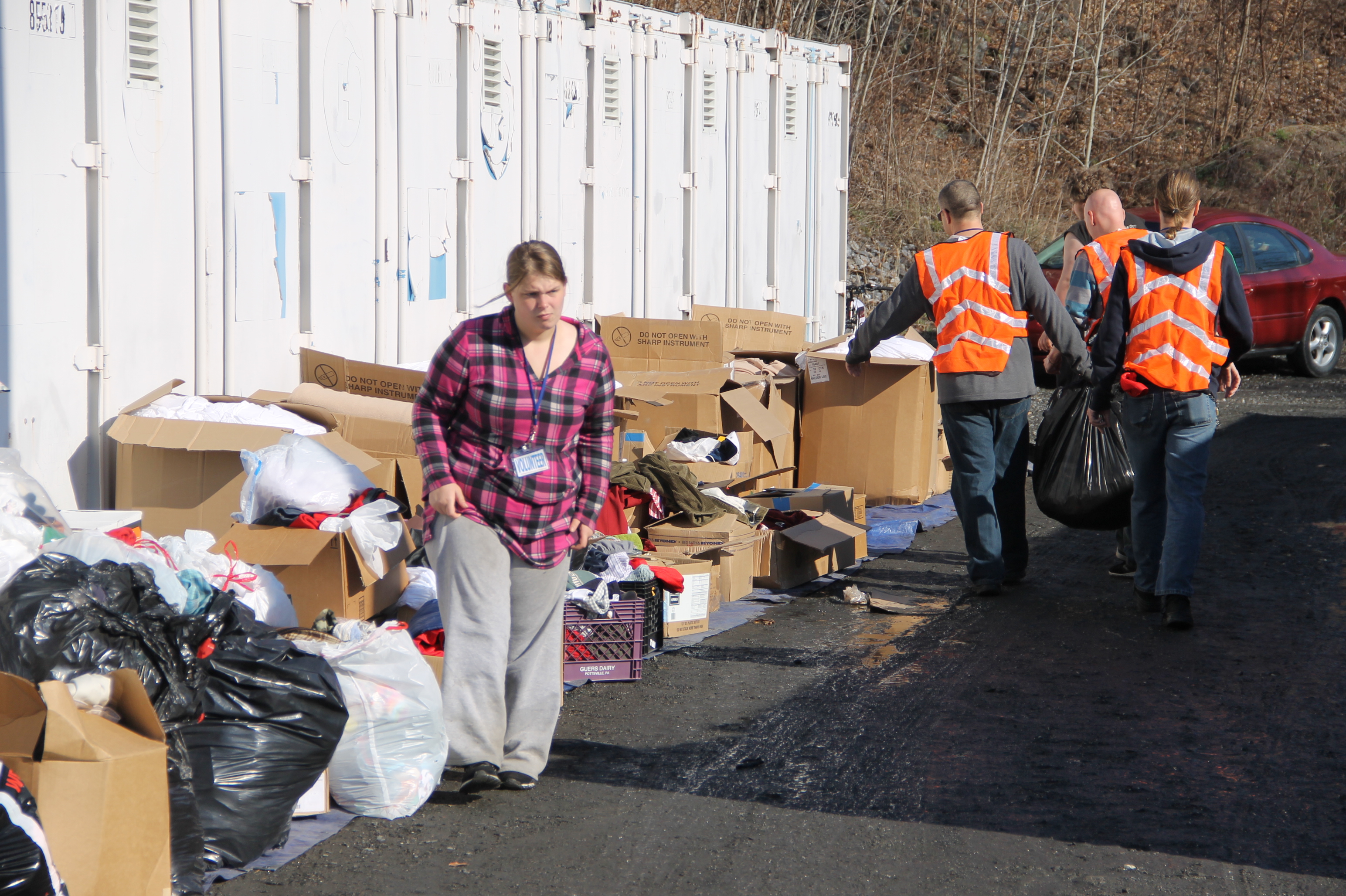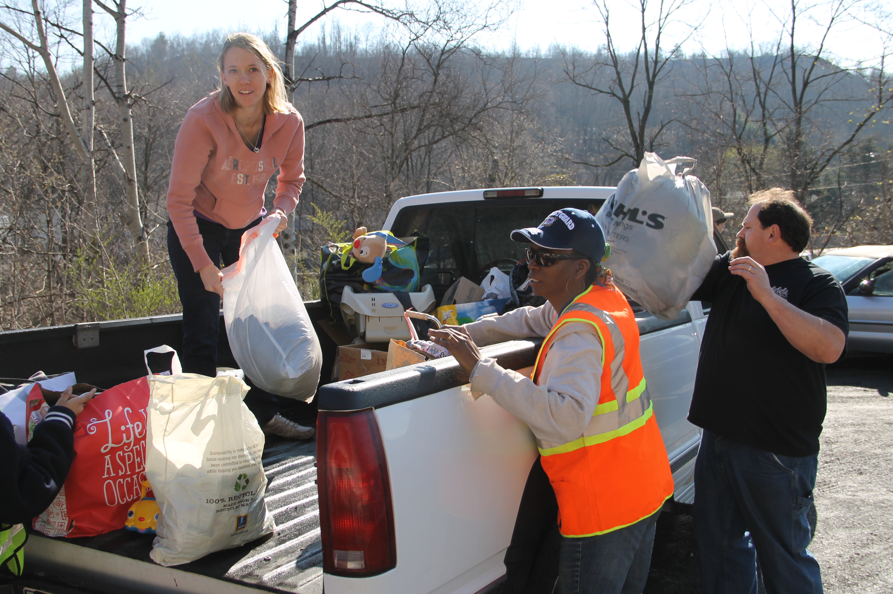 Members of the Tamaqua Volunteers community initiative group held their monthly donation drop-off and community giveaway recently.
