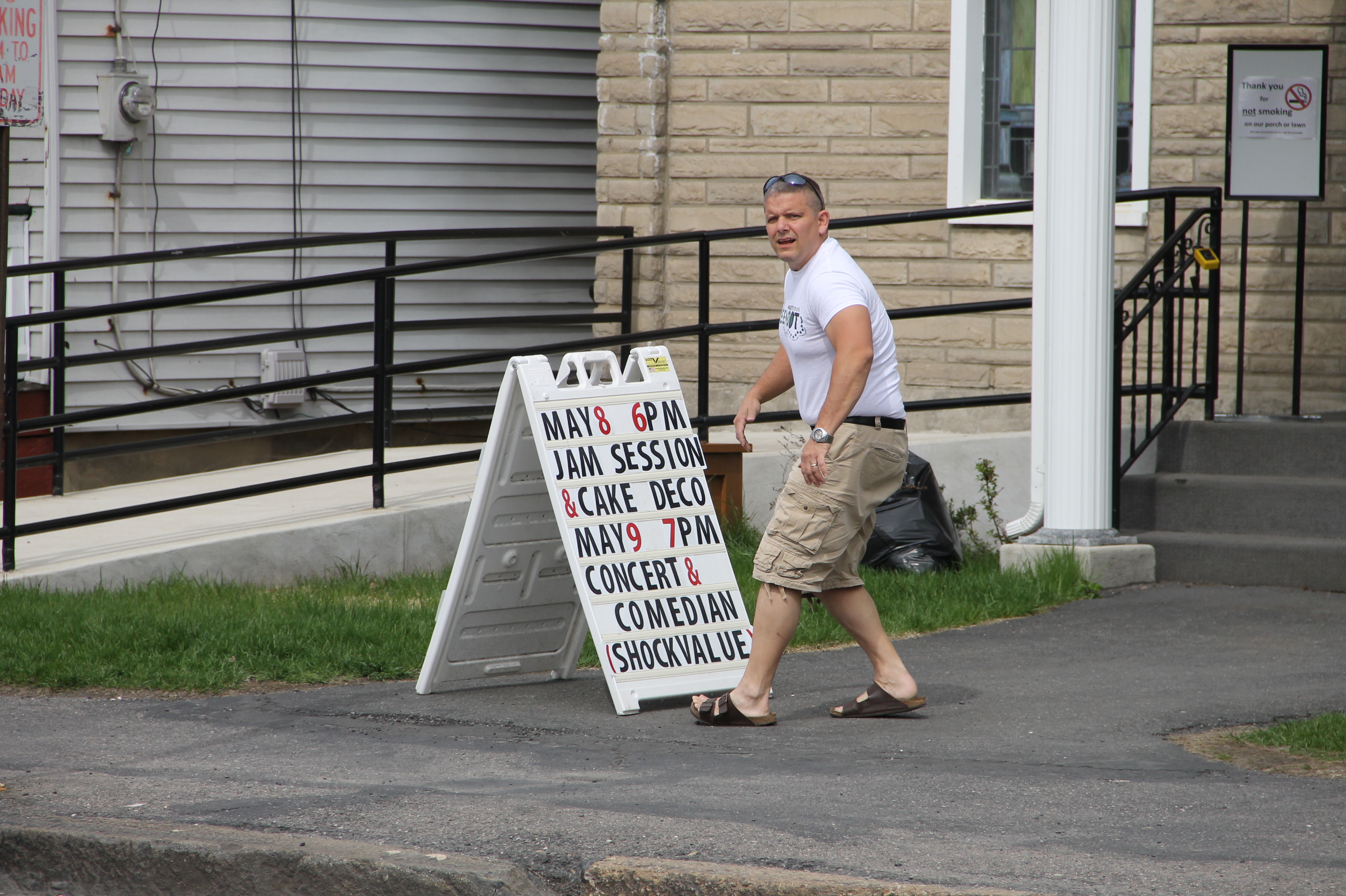 Pictured is Tamaqua Community Arts Center volunteer Mr. Shannon Rega placing letters on a sandwich board sign in front of the center. Like most community volunteers, Rega’s volunteerism go unseen. If you want to help at the center, call (570) 668-1192.