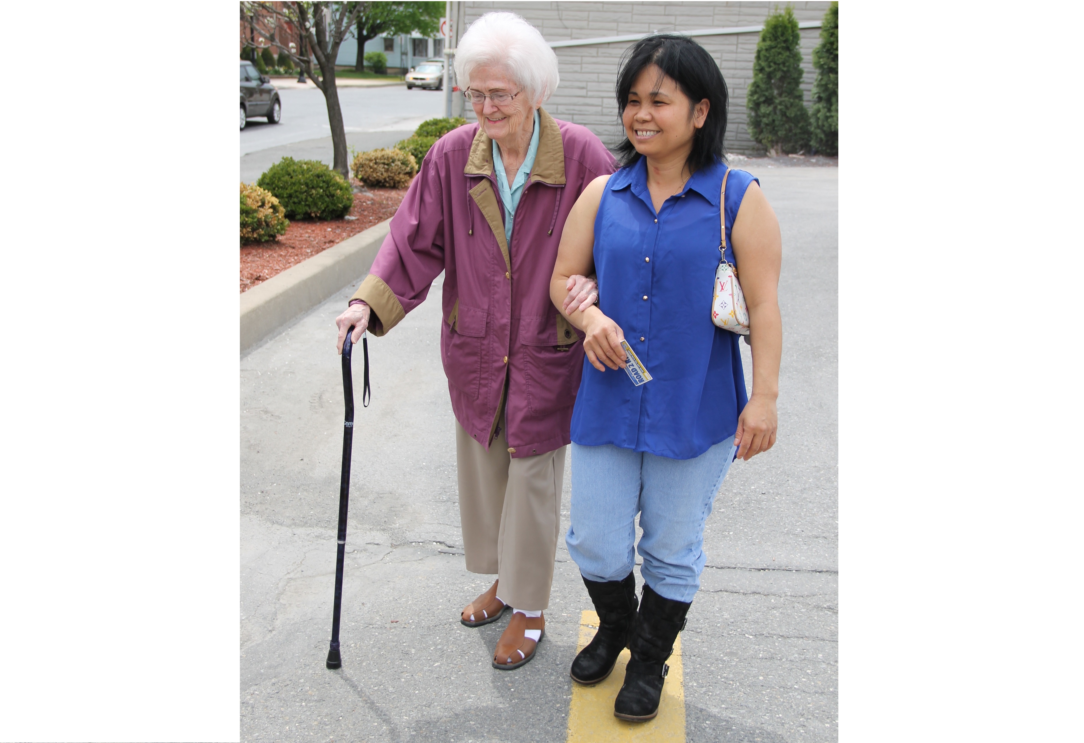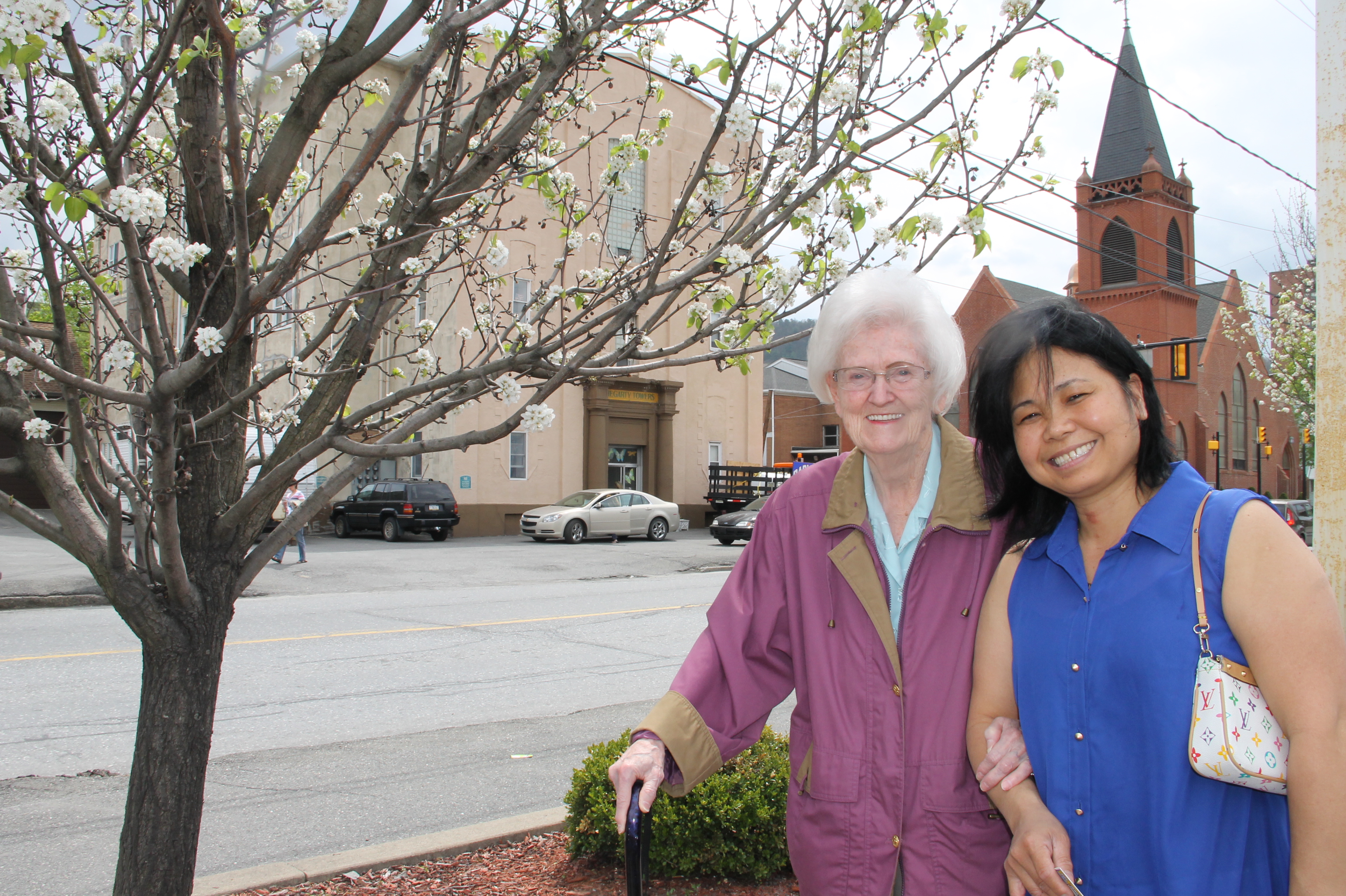 Melga Kelly, of Hometown, walks her mother Ruth Wychulis home after visiting the hair salon in Tamaqua. Wychulis turns 80 on Monday.