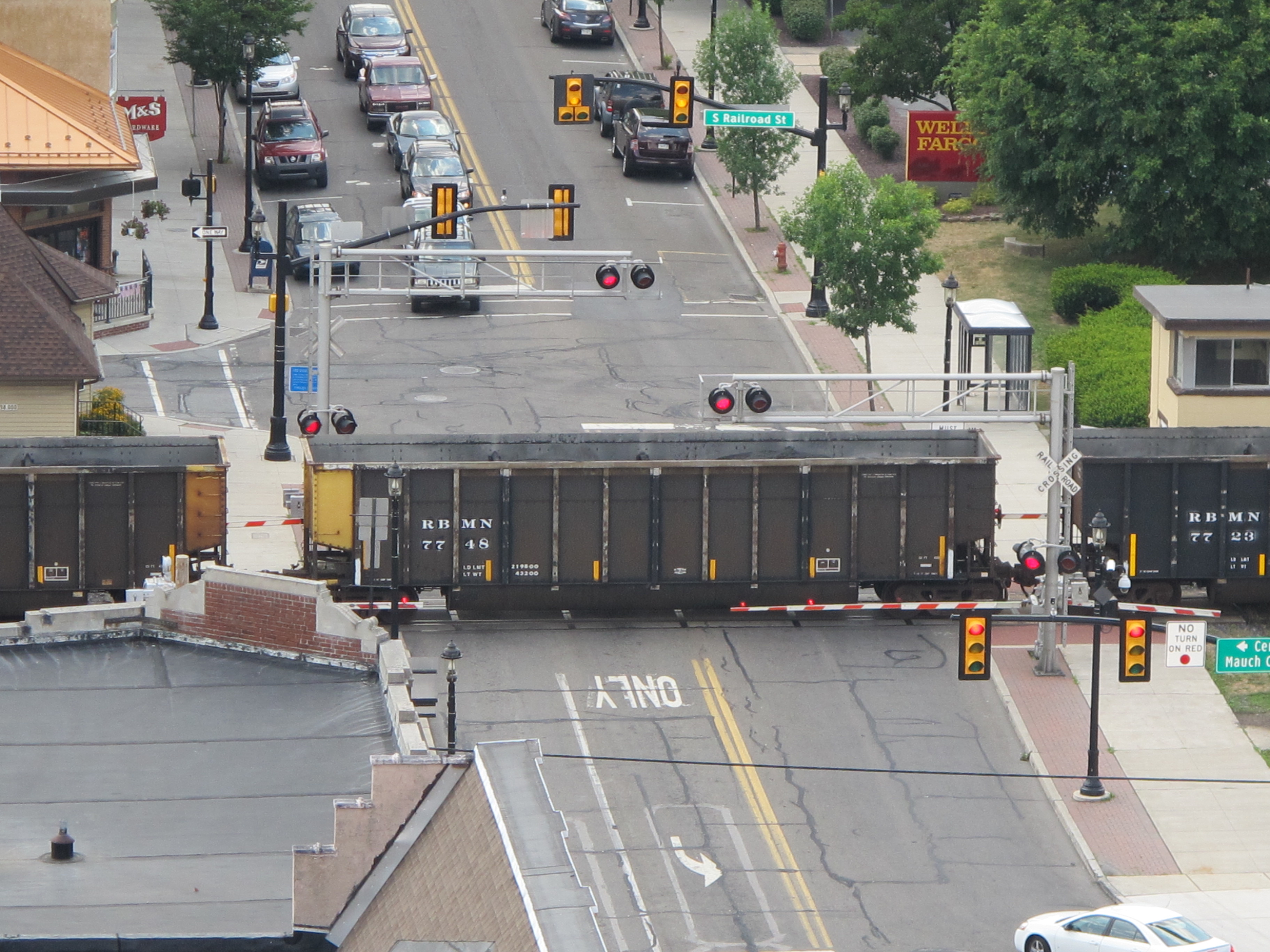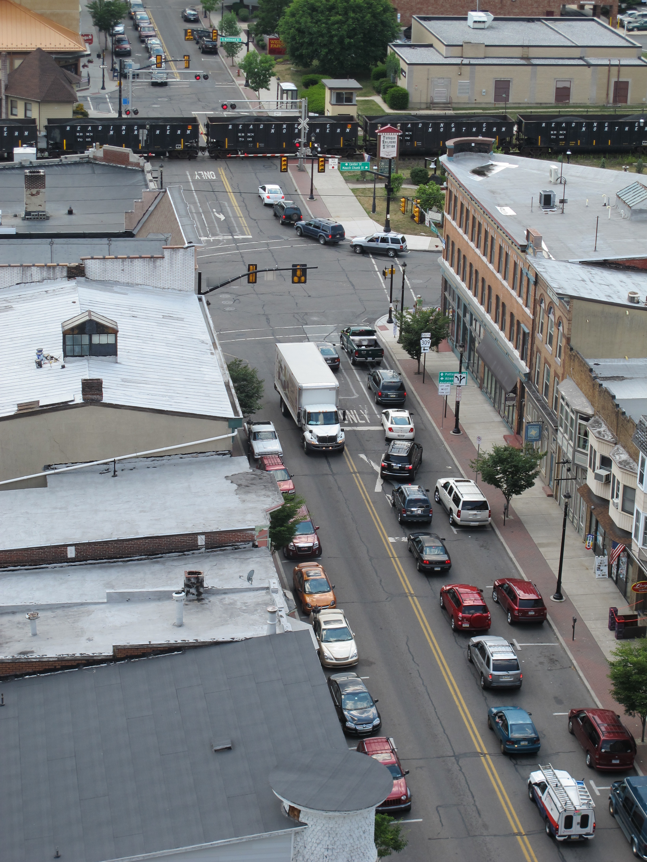 BELOW ARE TAMAQUAAREA.COM FILE PHOTOS (TAKEN JUNE 7, 2012). THEY SHOW HOW QUICK TRAFFIC BECOMES CONGESTED WHEN A LONG TRAIN TRAVERSES THROUGH THE BOROUGH.