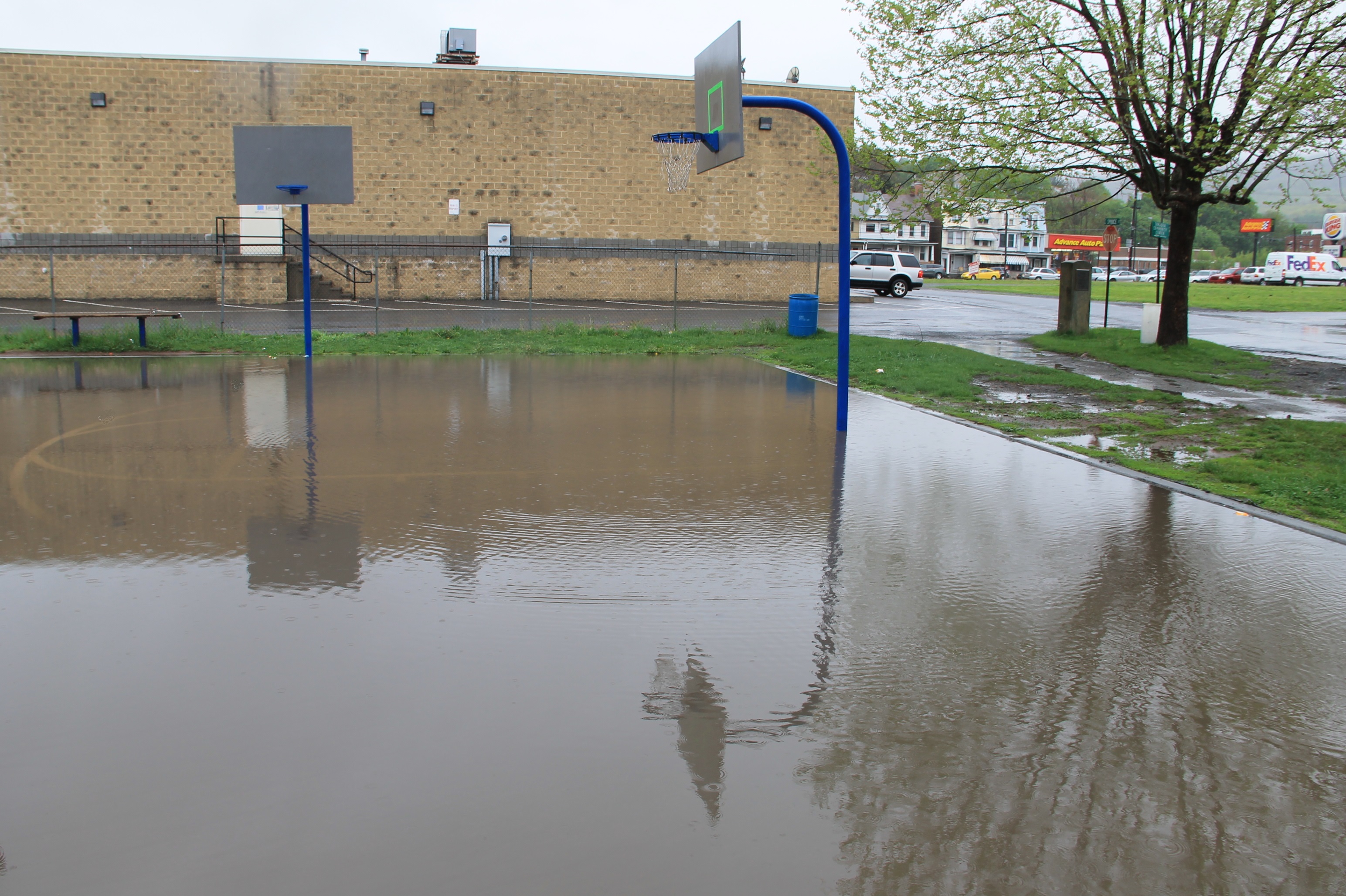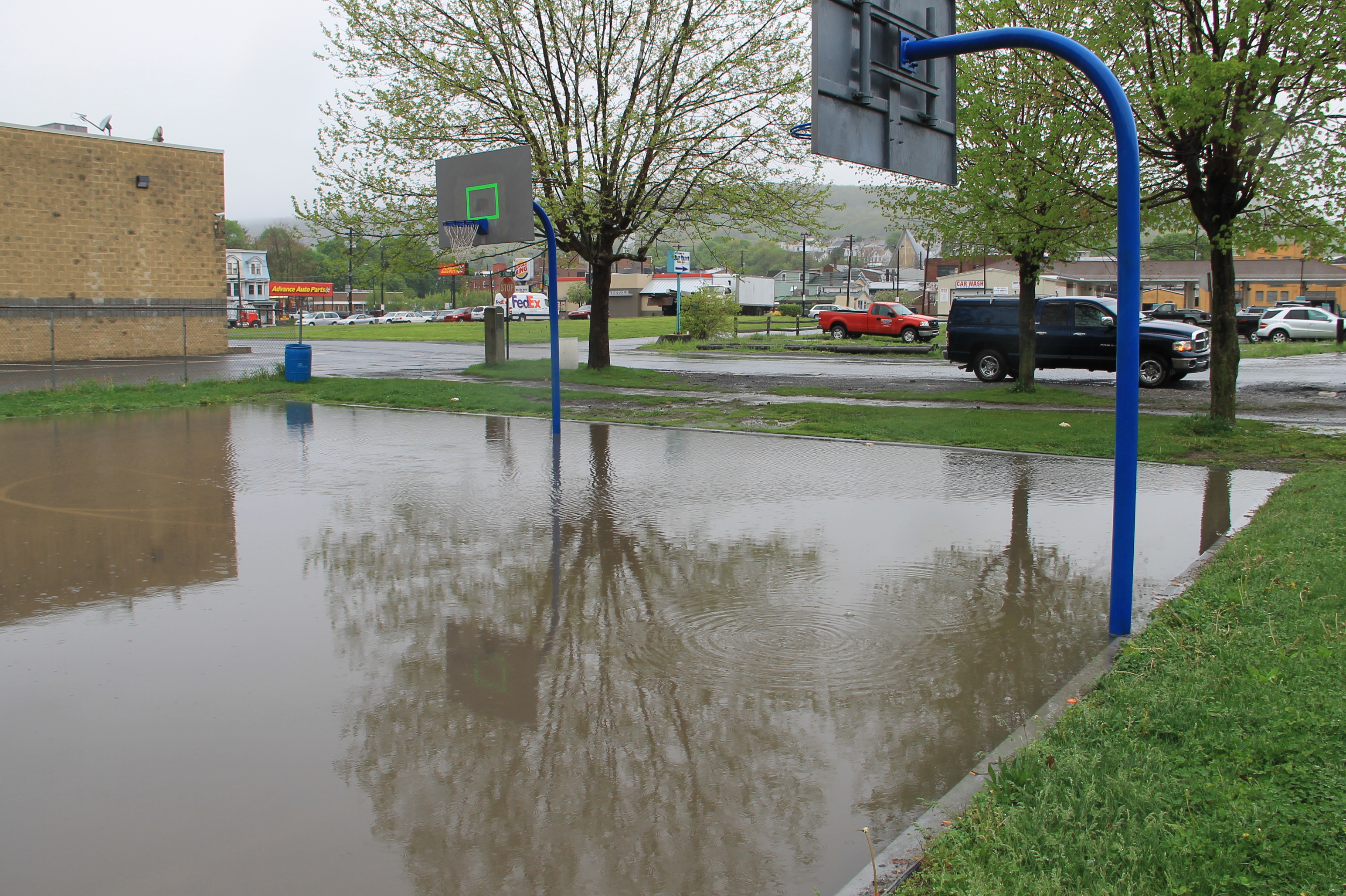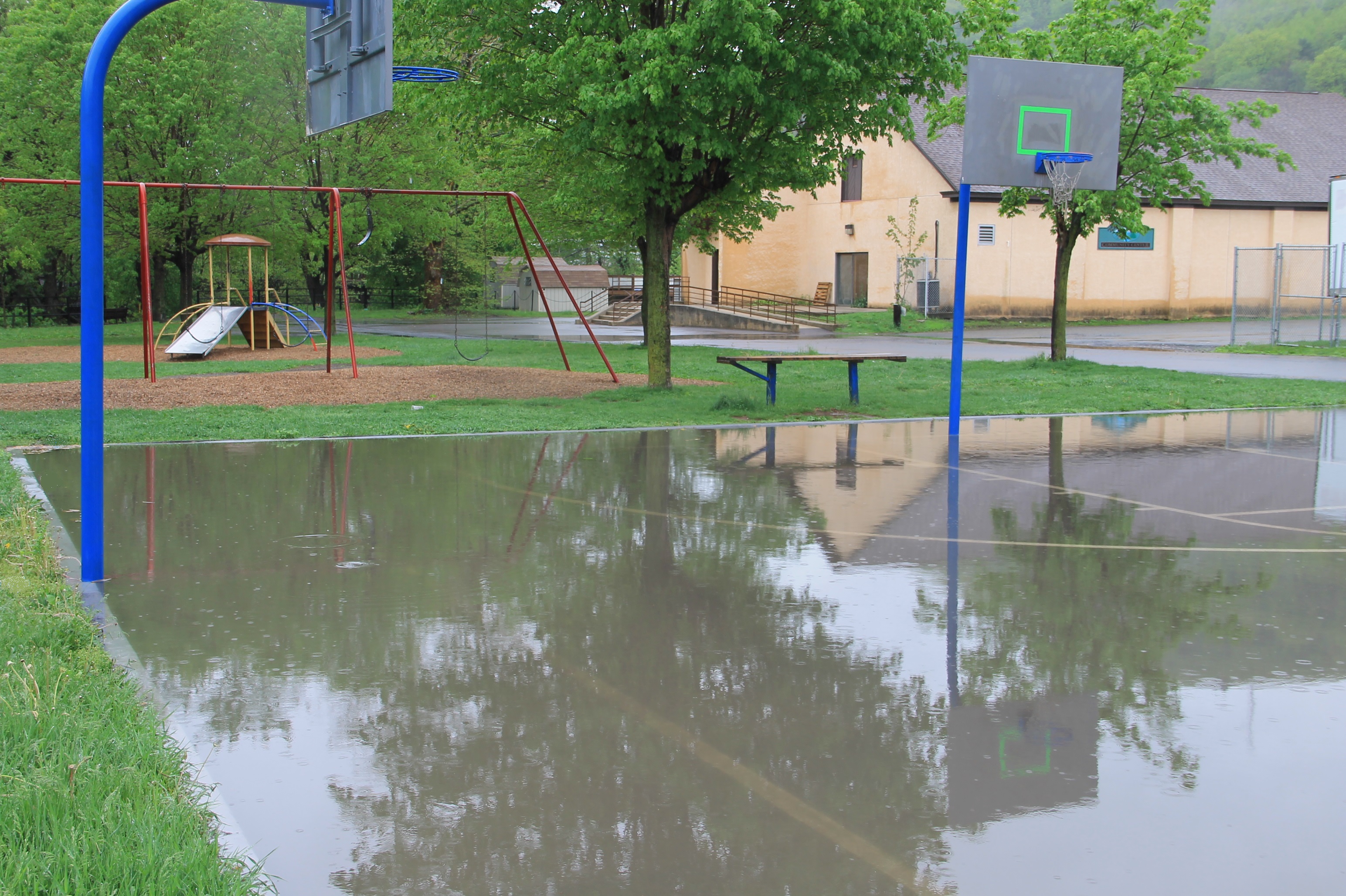 The basketball court at the Willing Skate Park in Tamaqua resembles a wading pool following today’s (May 16, 2014) heavy rainfall.
