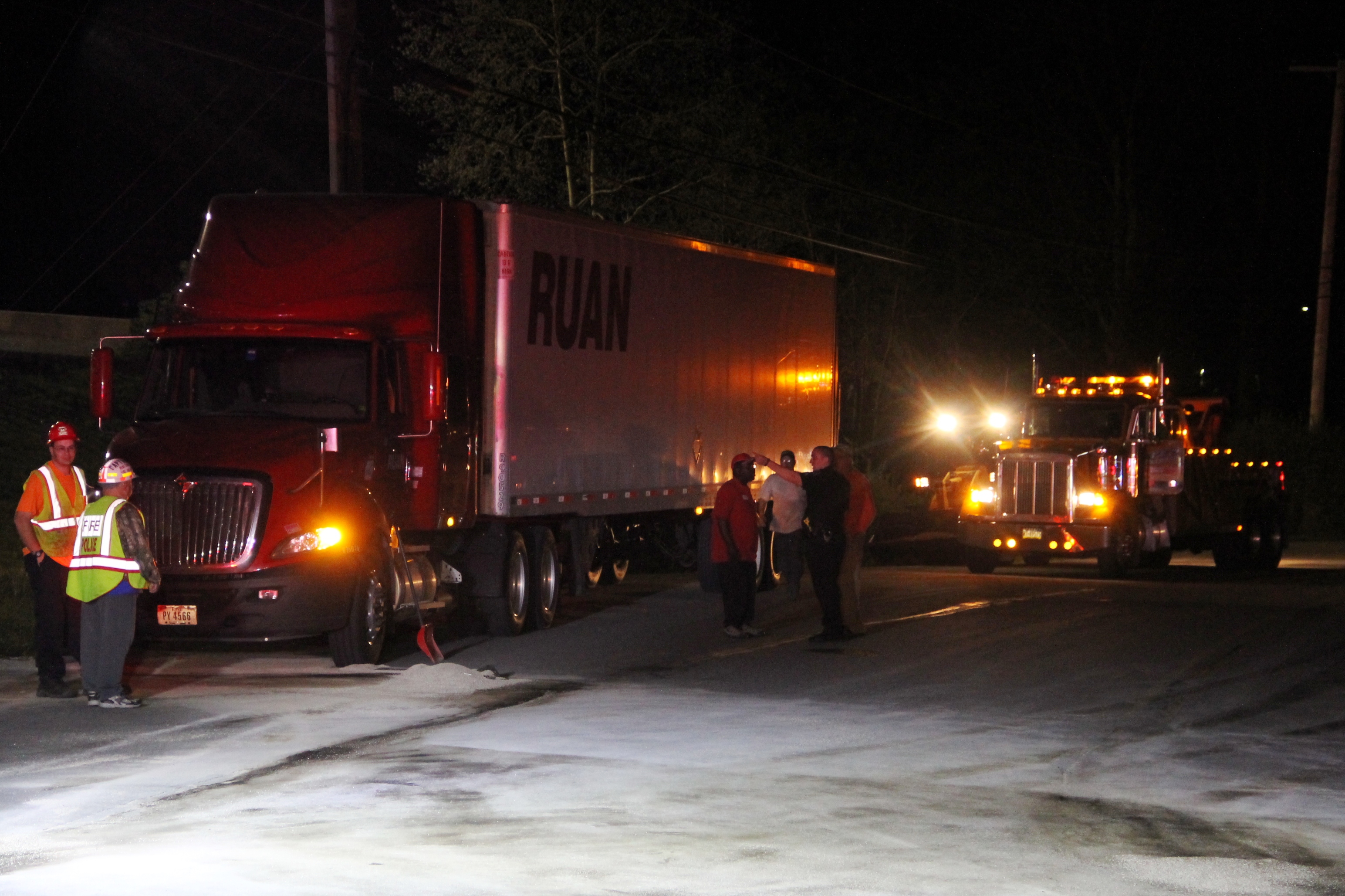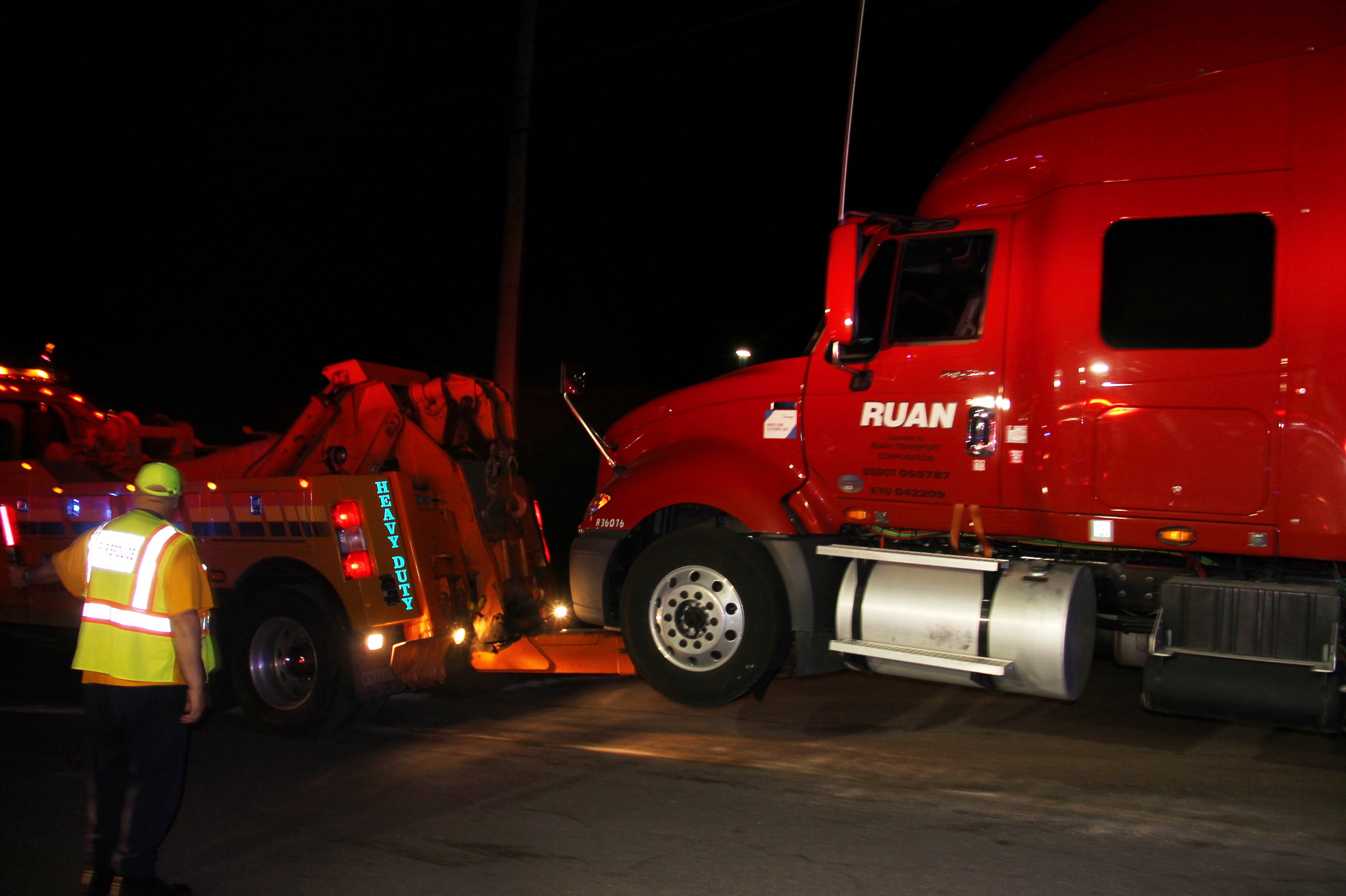 The tractor-trailer had to be towed from the scene. The last crews left around 10:45 PM.