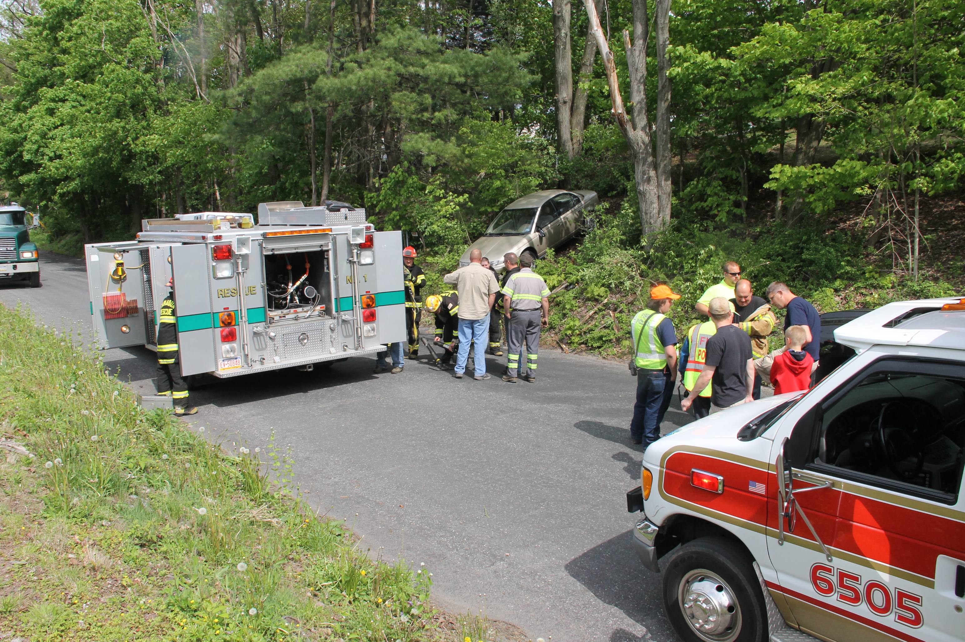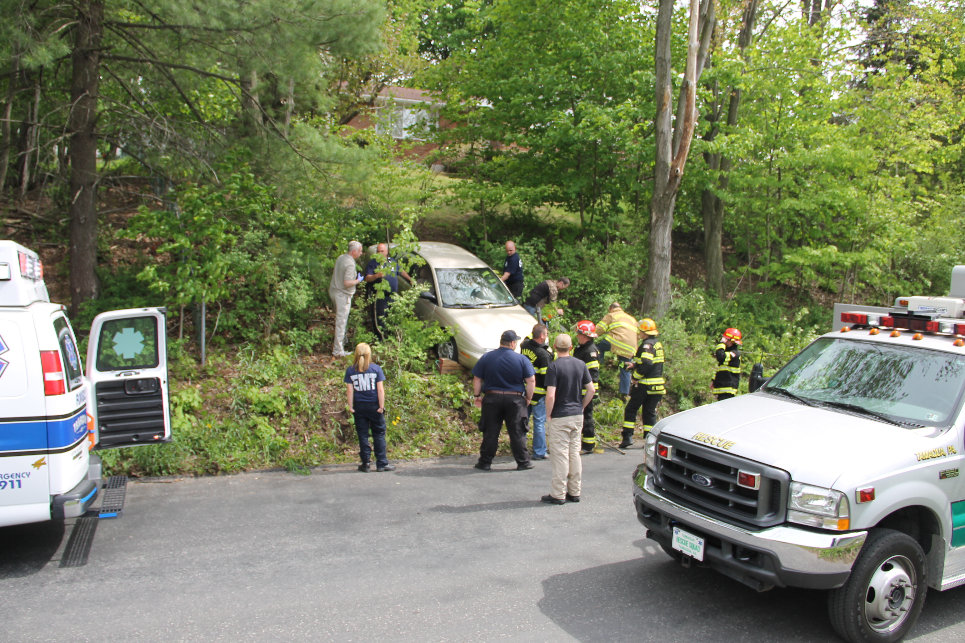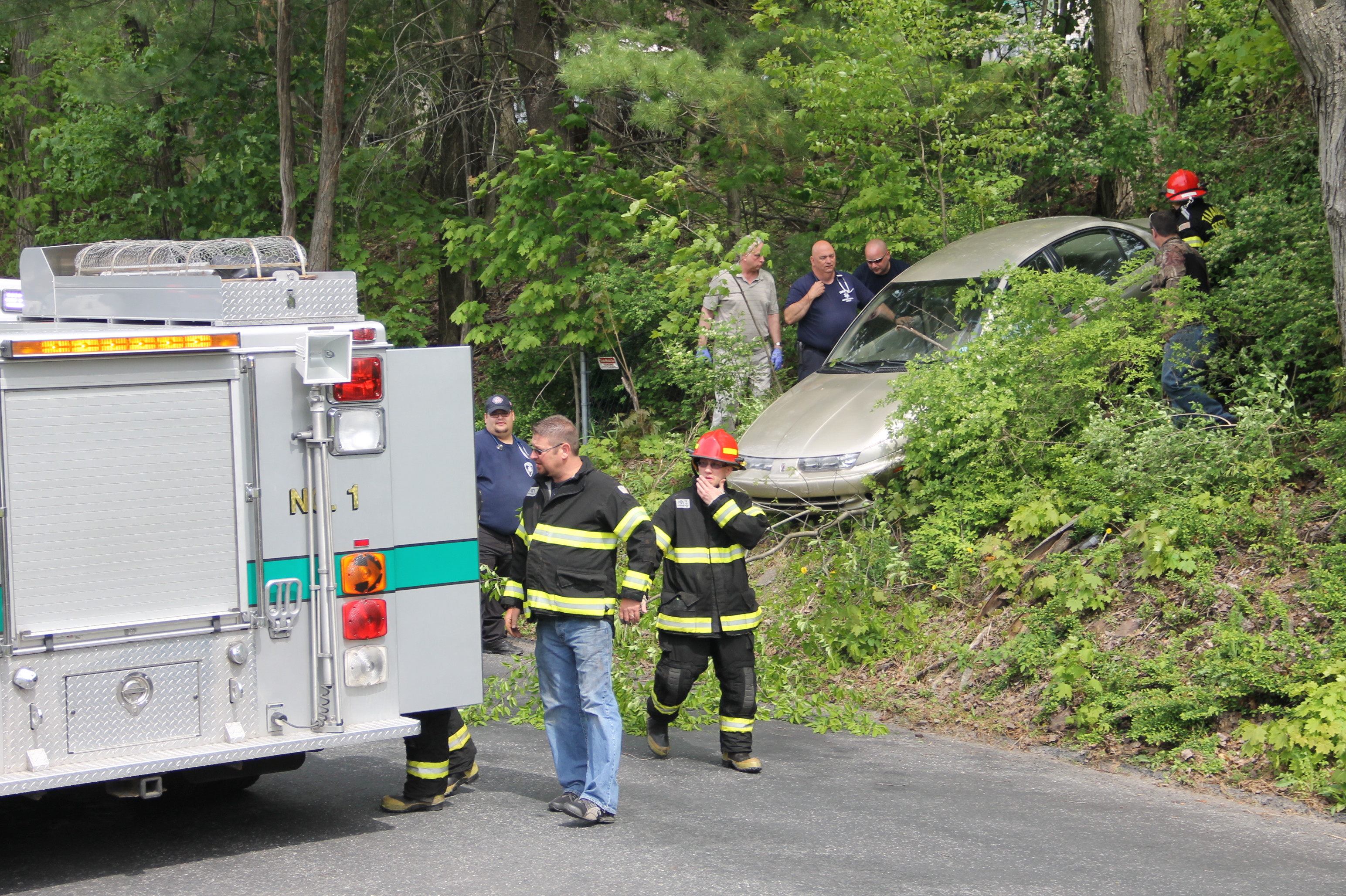 Emergency personnel were called to Dennison Street (below 9 Locust Street) around 3:12 PM for a report of a vehicle down an embankment.