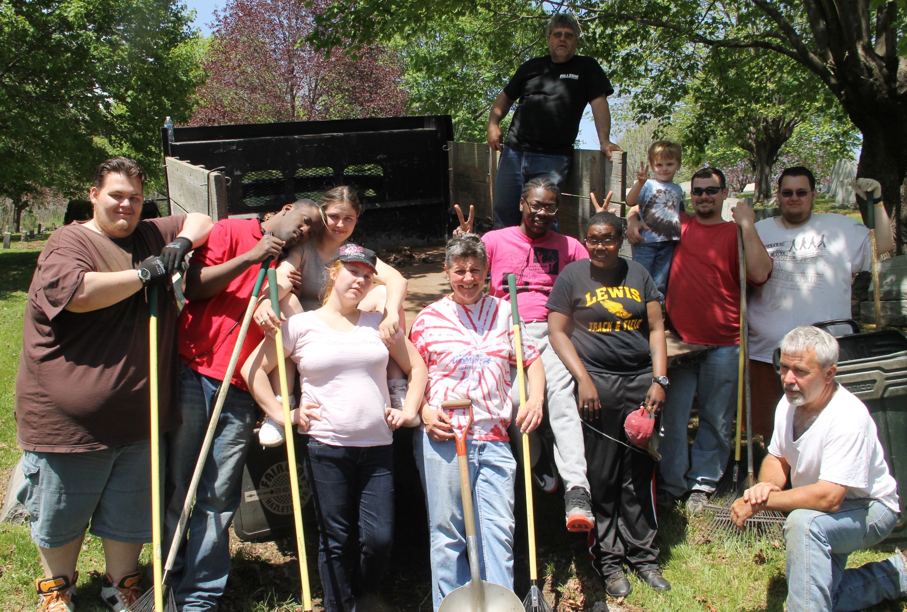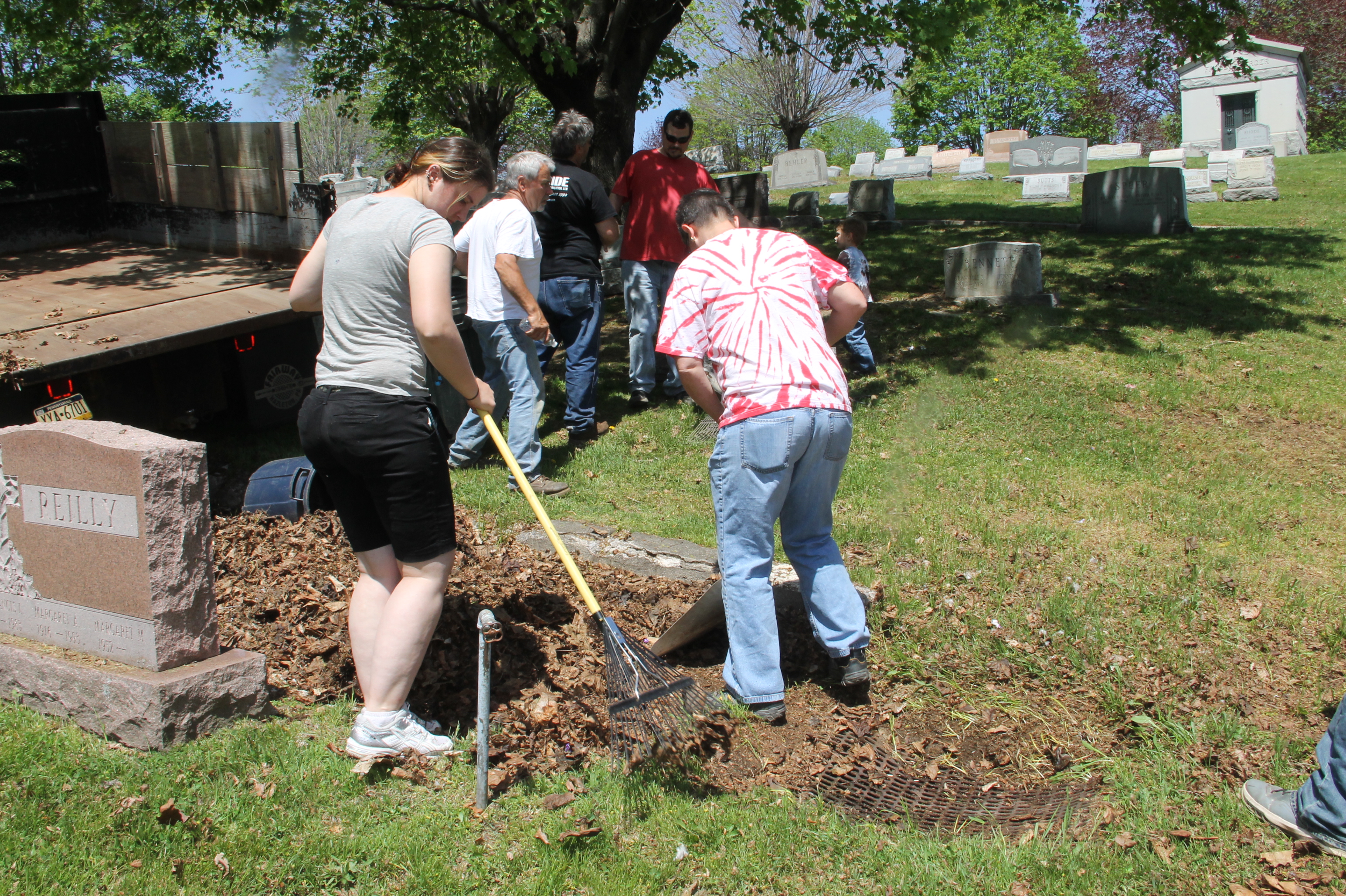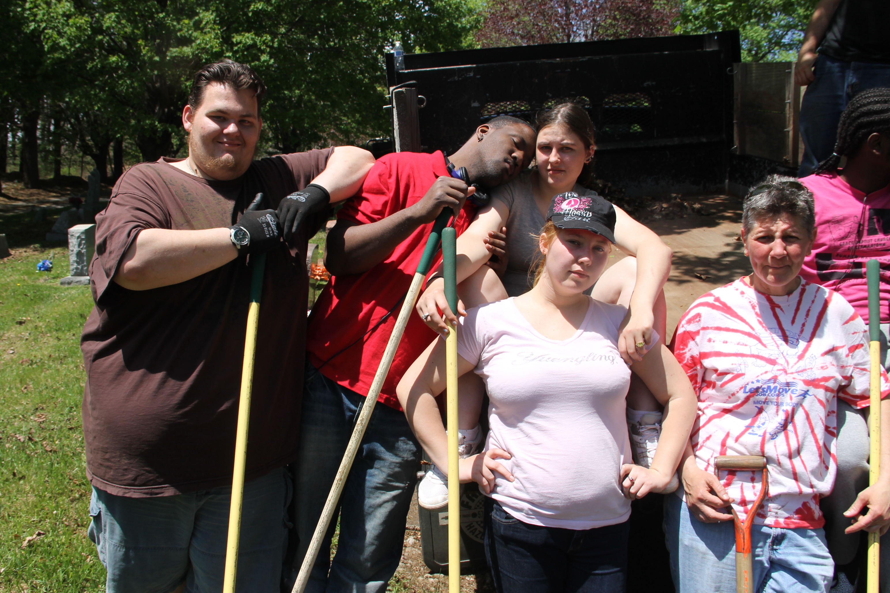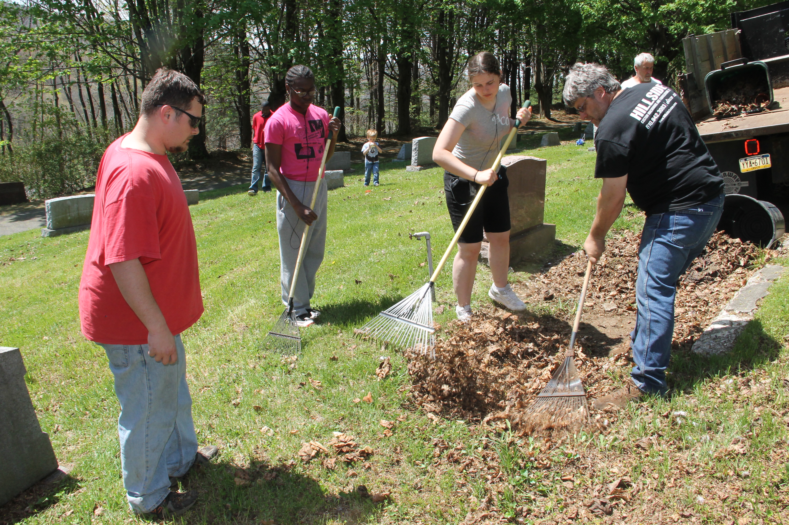 Volunteers with the Keystone Job Corps Center in Drums worked recently with members of the Odd Fellows Harmony Lodge No. 86 to pull weeds and clean parts of the Odd Fellows Cemetery in Tamaqua.