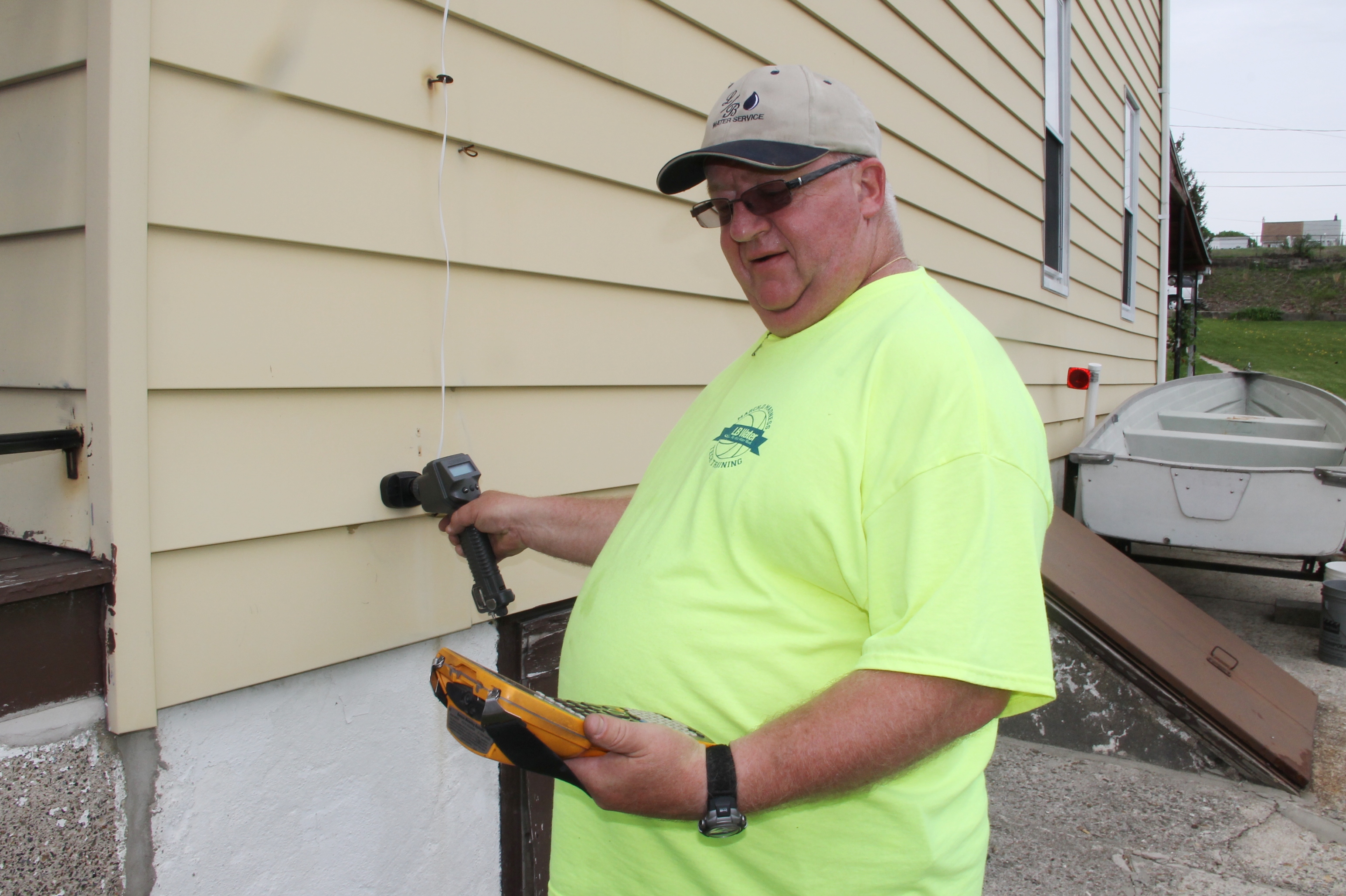 Pictured using a handheld reader to record water usage at homes in Dutch Hill is Tamaqua borough employee Bud Comisac.