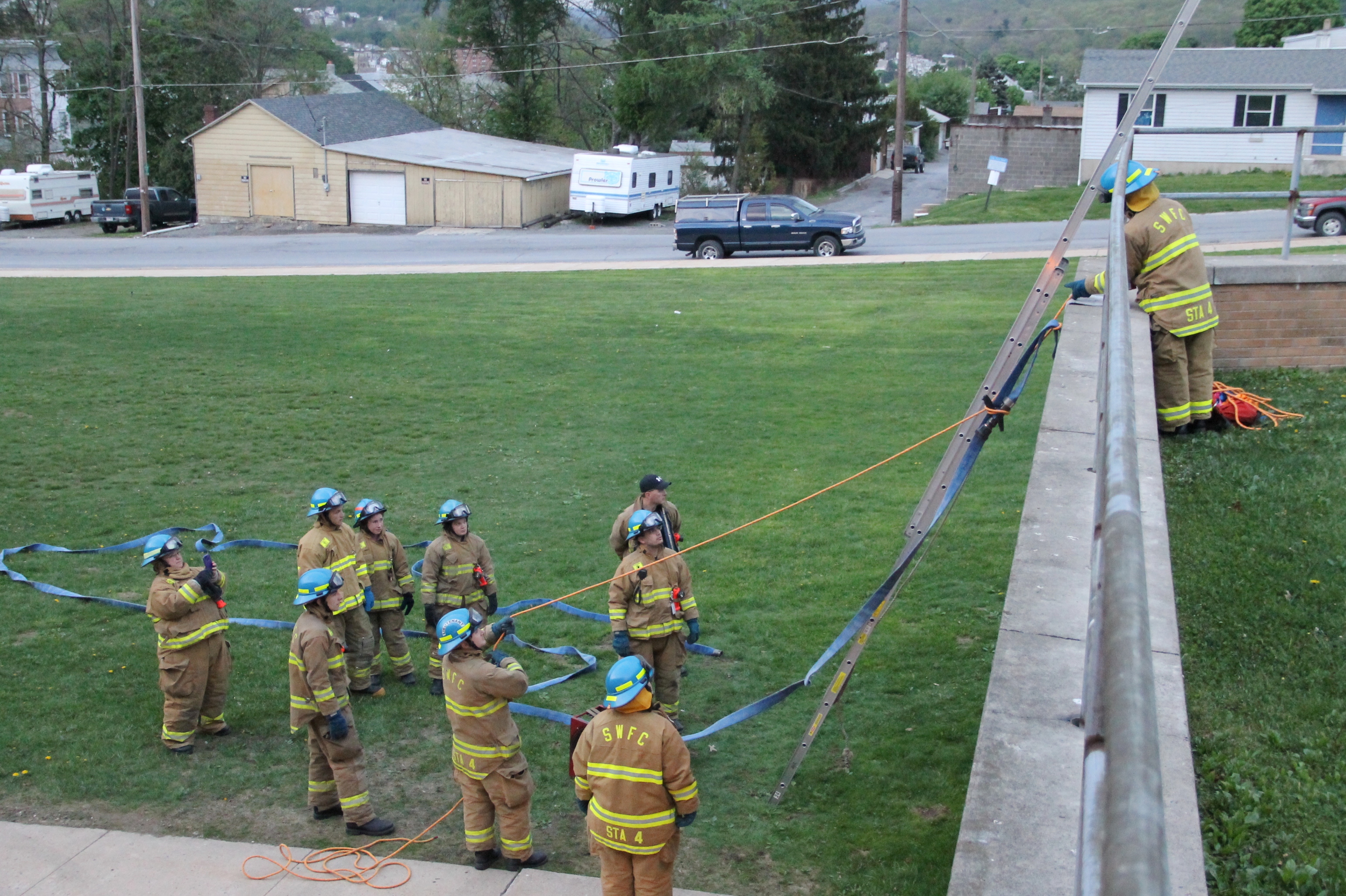 Members of the Tamaqua’s South Ward Fire Company spent time learning how to properly raise and lower equipment and supplies with ropes during an emergency situation. The training was held recently in the grassy lot of the Tamaqua Area High School.