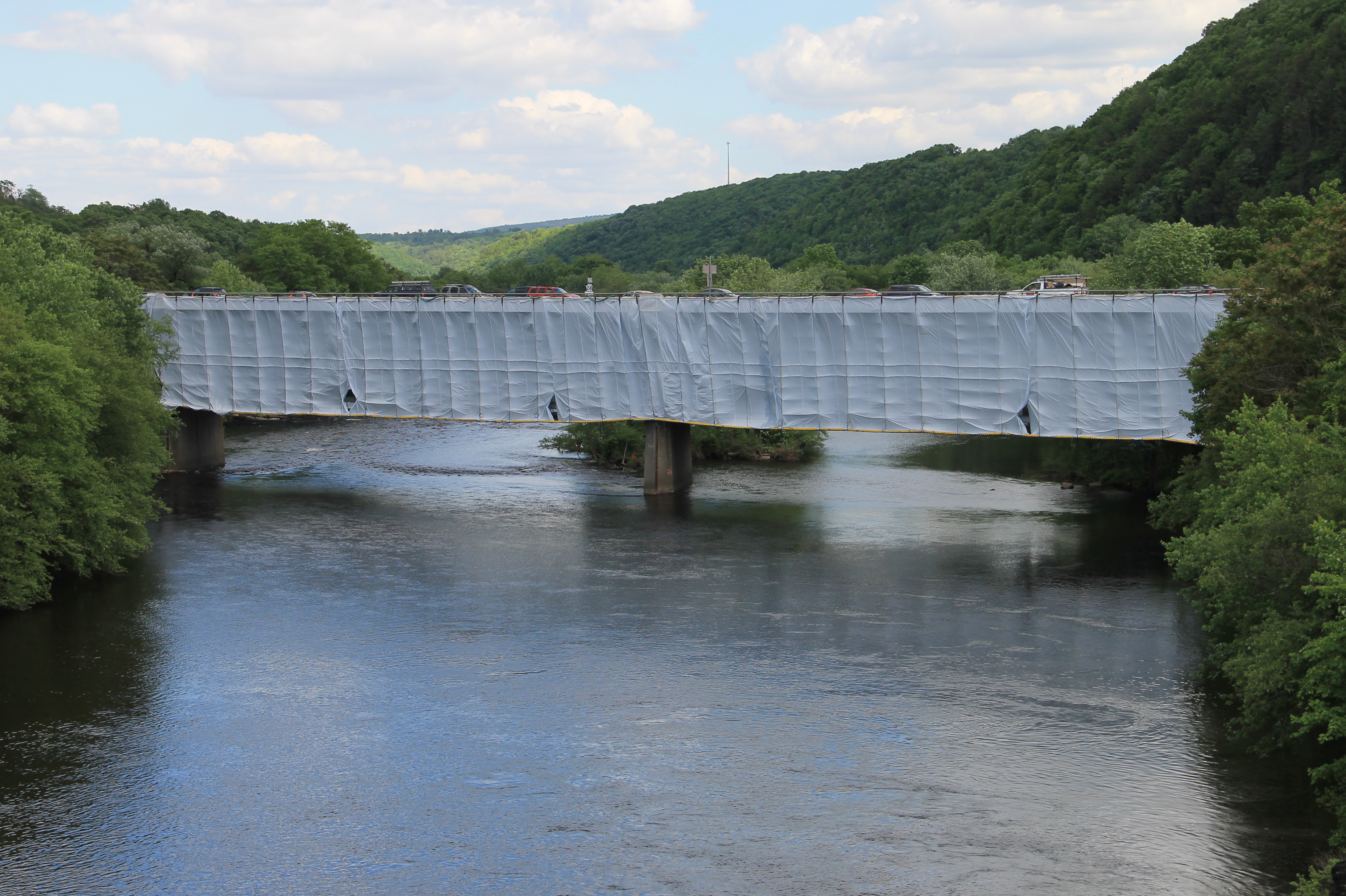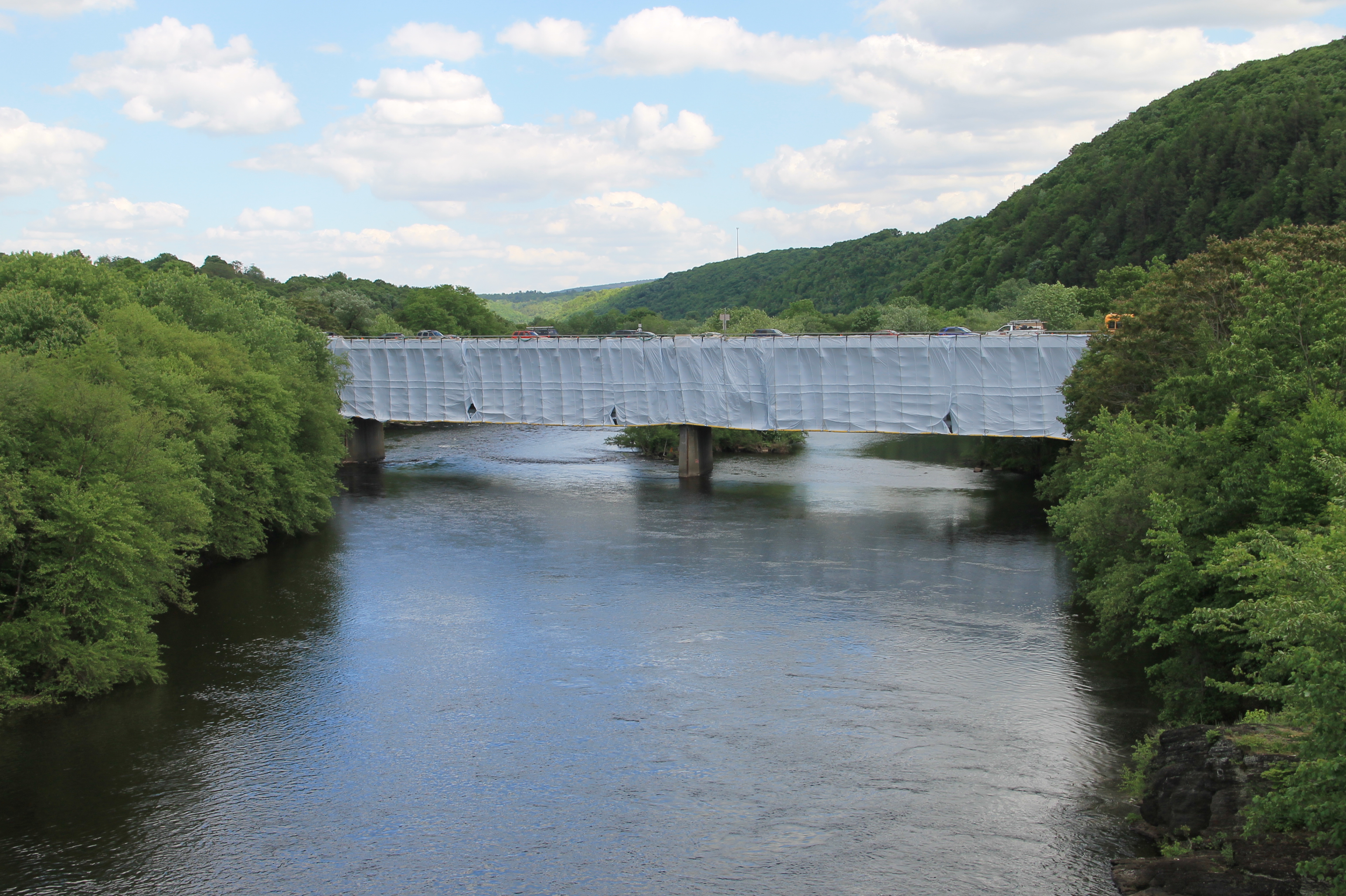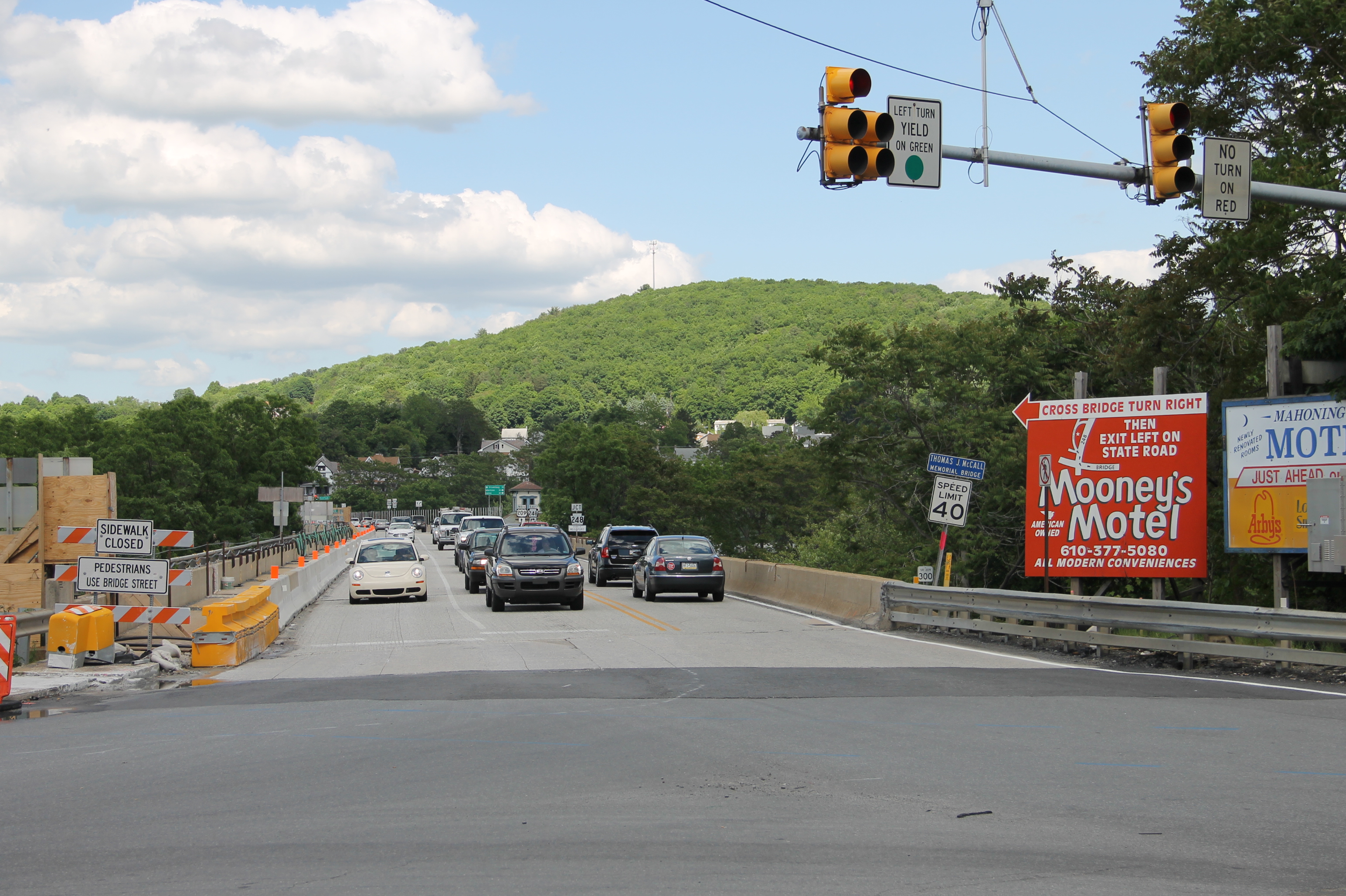 The 16-span, steel deck truss bridge was originally constructed in 1938 and reconstructed in 1981. It is 1,539 feet long and 42 feet wide. This section of US209 has an average daily traffic volume of 23,529 vehicles.