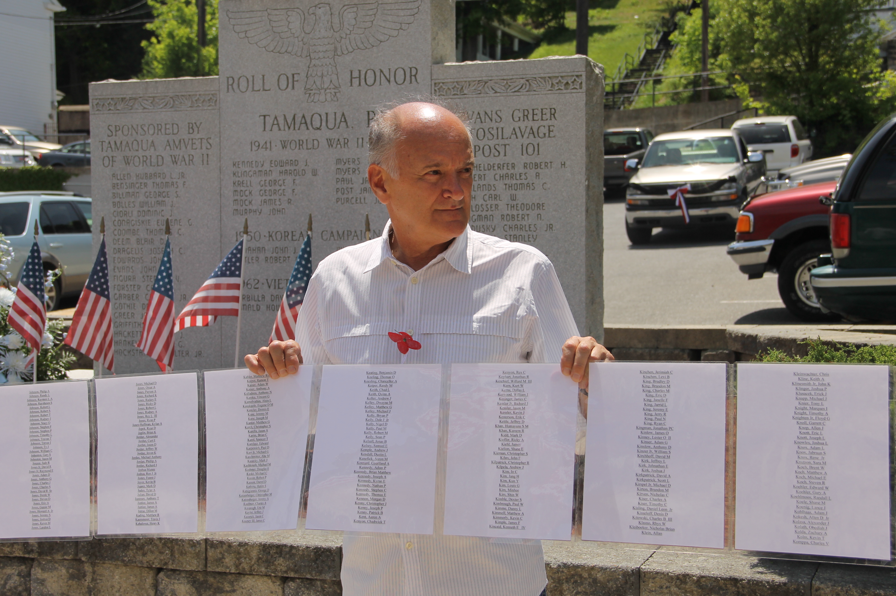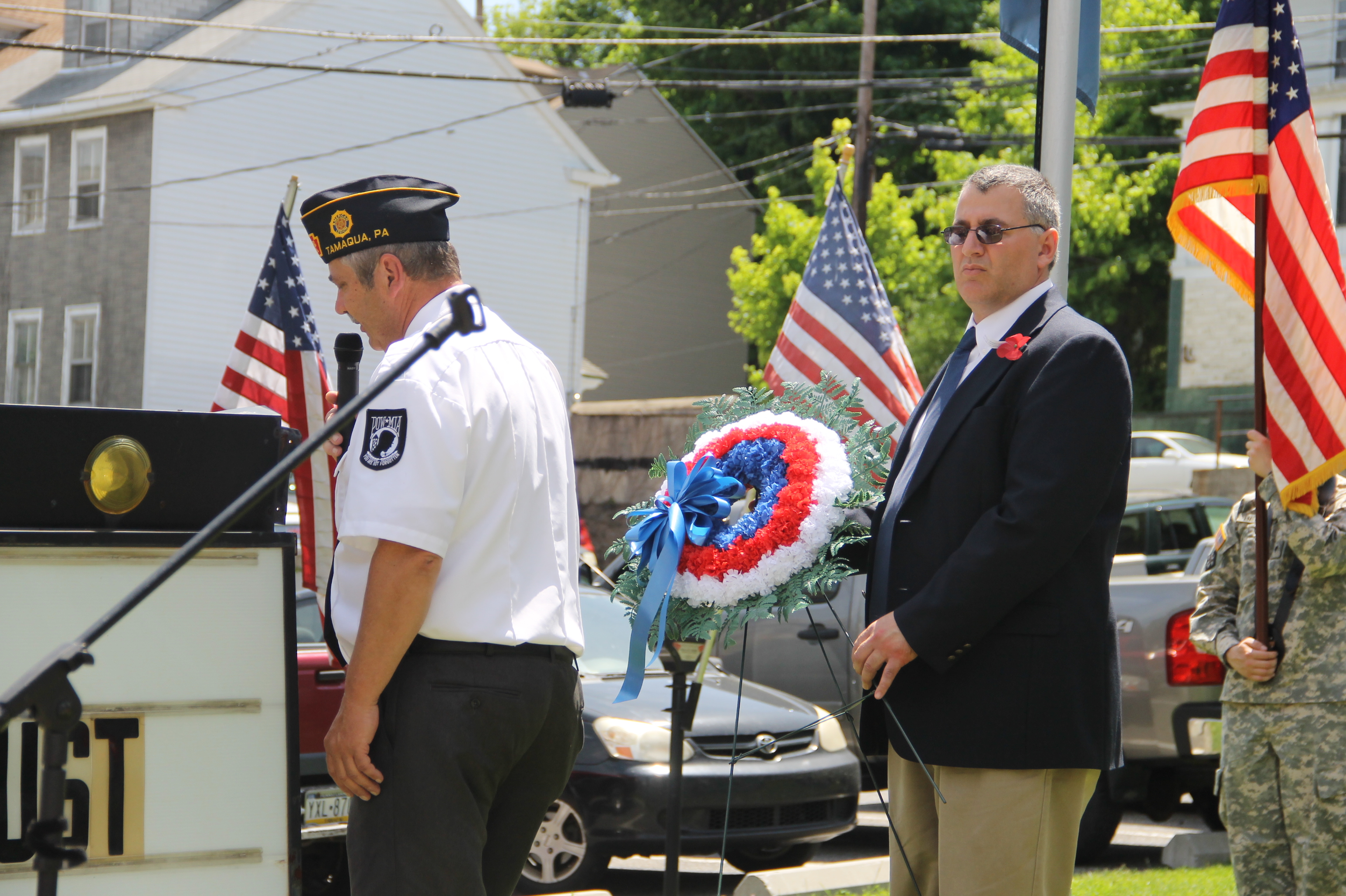 During the service, legion member Ed Smith presented a ceremonial wreath to Nancy Kabana in honor of her late husband Larry Kabana who passed away recently. Larry served as Tamaqua’s Post Commander upon his passing.