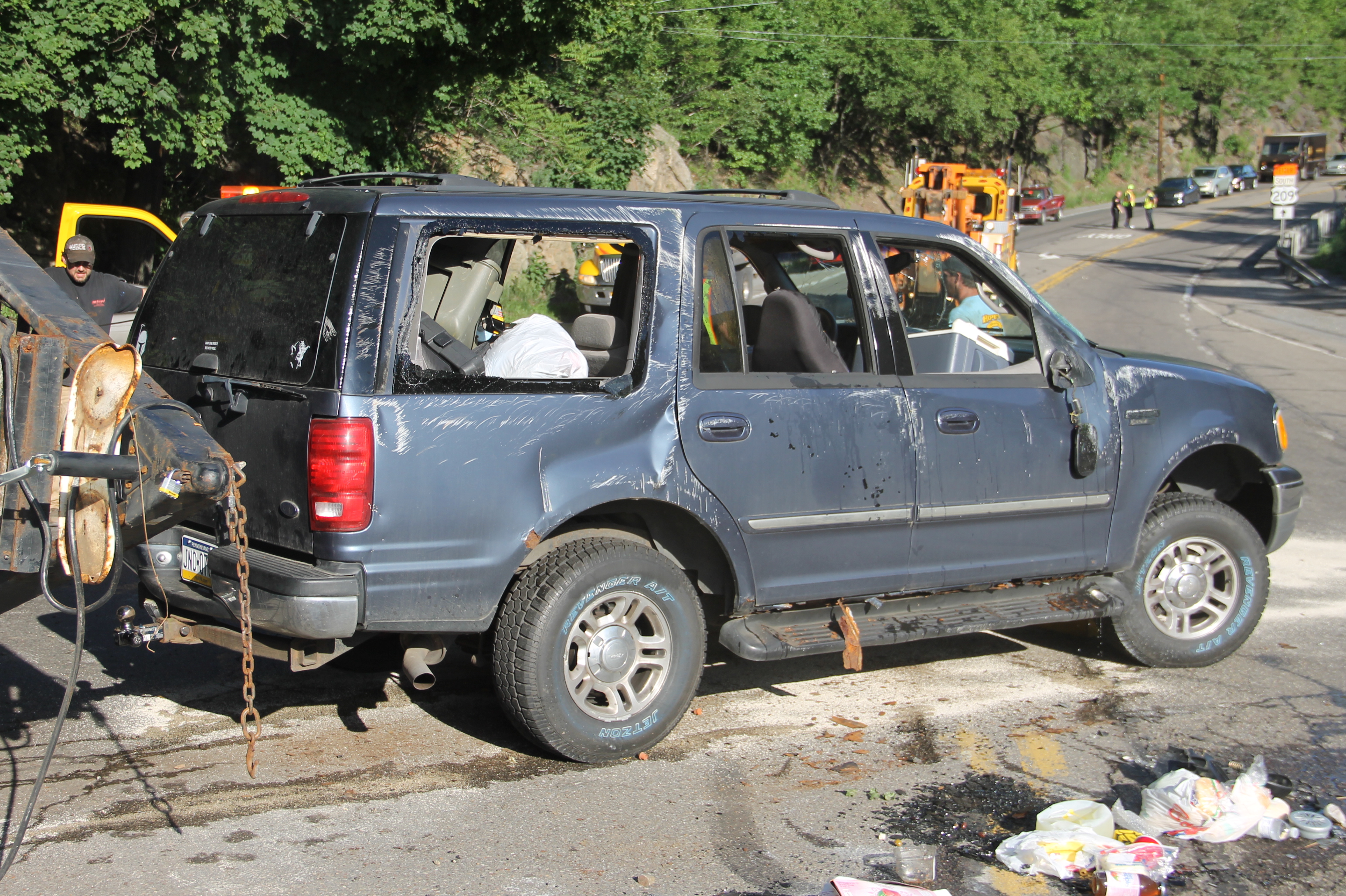 The family, consisting of two parents and an adult son, was able to get out of their overturned Ford Expedition with help from an unidentified passerby who offered a knife to help cut their seatbelts. Both the mother and son were taken to St. Luke’s Hospital – Miners Campus for precautionary treatment, while the father stayed to help police and Tamaqua Area Animal Rescue volunteers search and capture the family’s six missing cats – which remained missing after the accident.