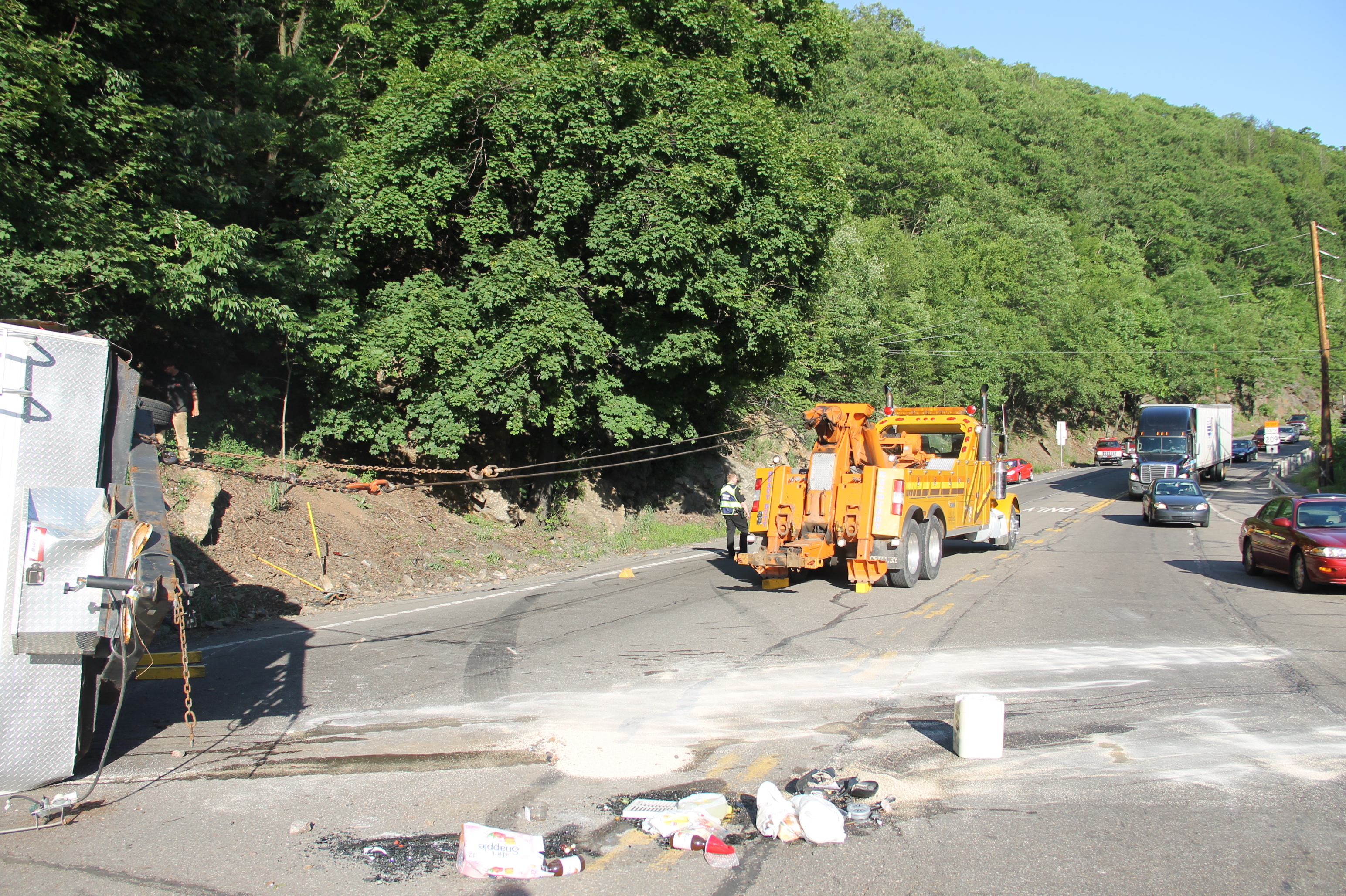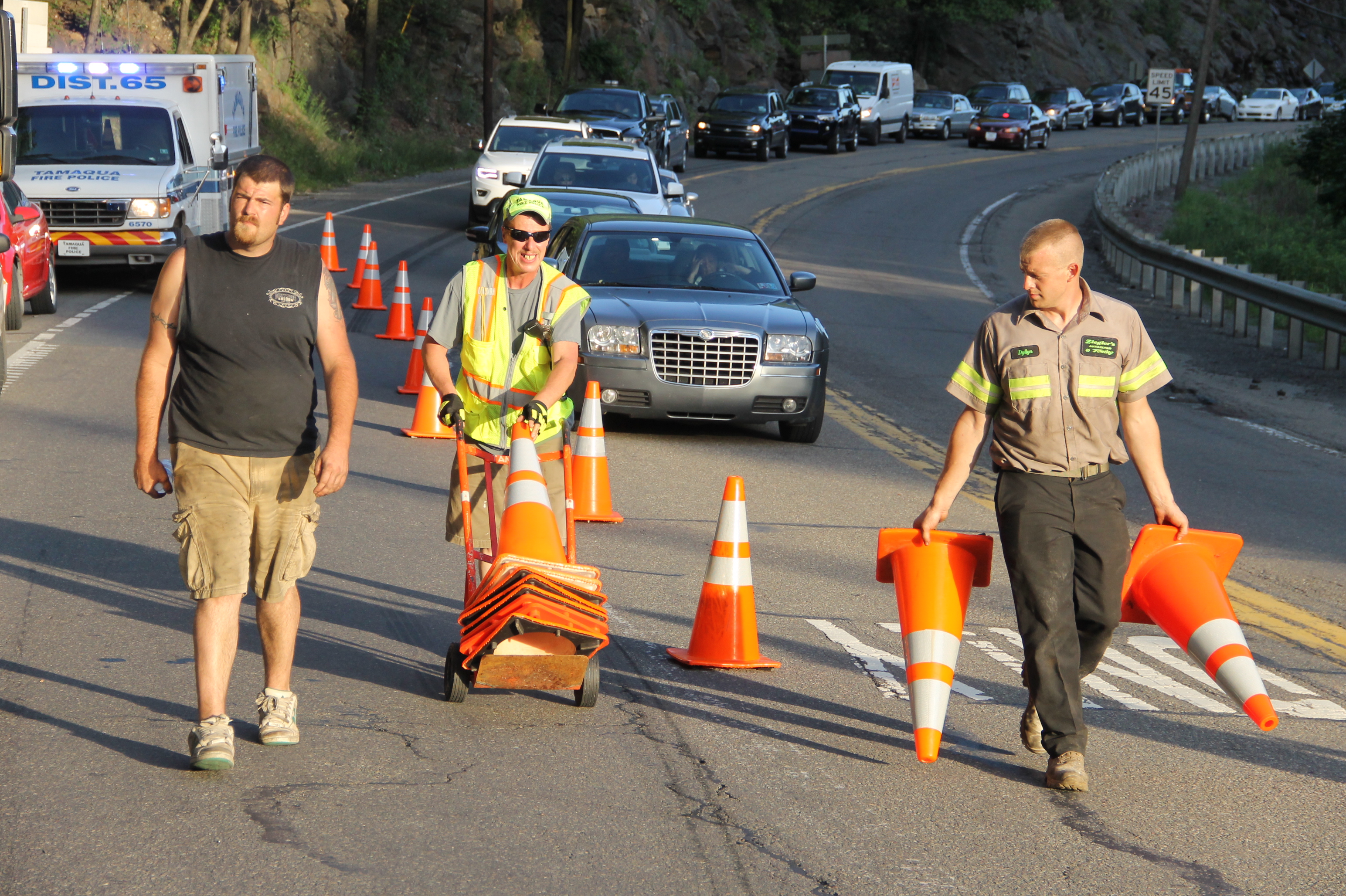 The incident resulted in traffic to be backed up in both directions of SR309 for a couple hours. Tamaqua Fire Police and Hometown Fire Police detoured vehicles around the scene while rescuers retrieved the cats and crews cleared the scene.
