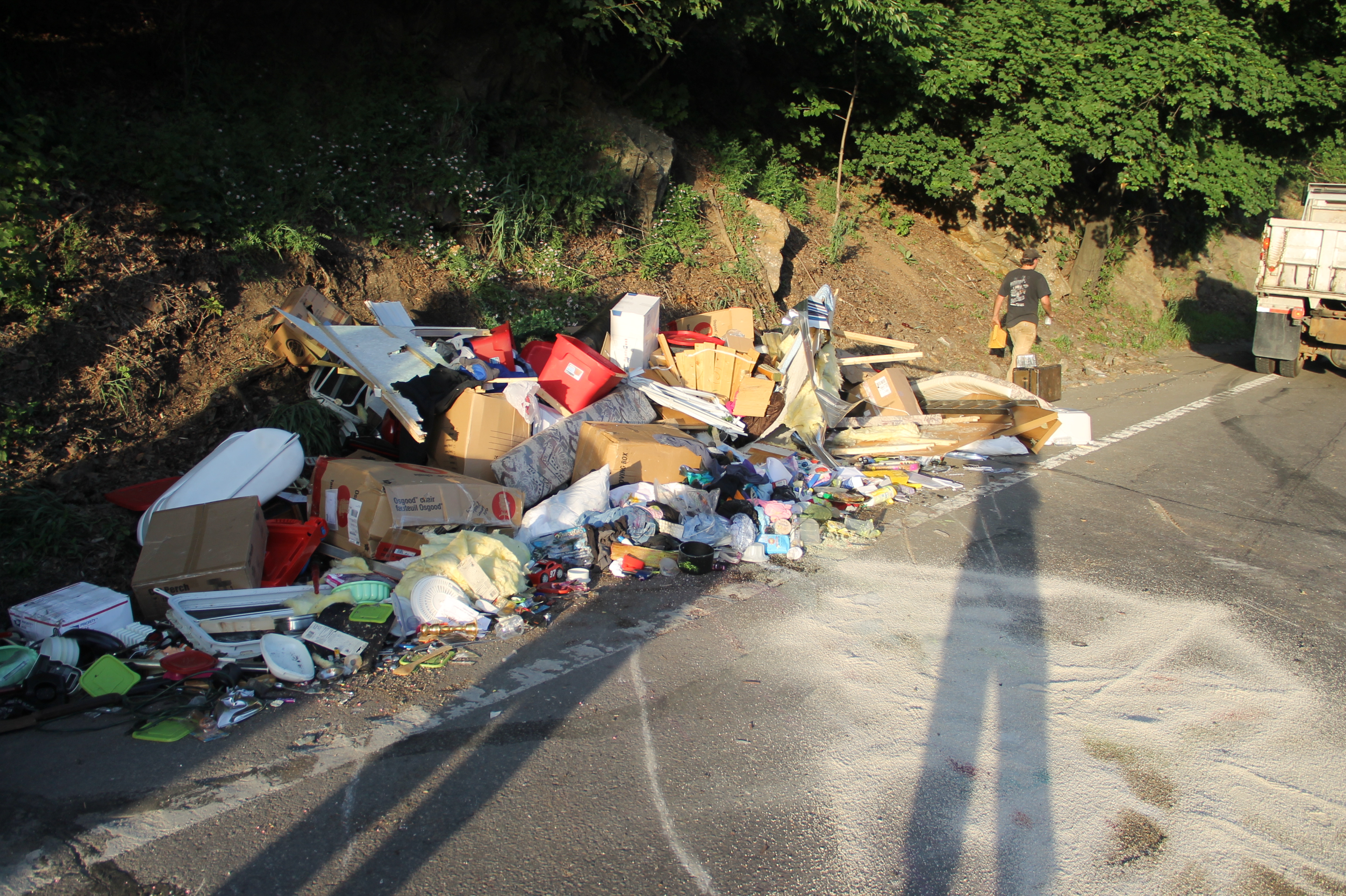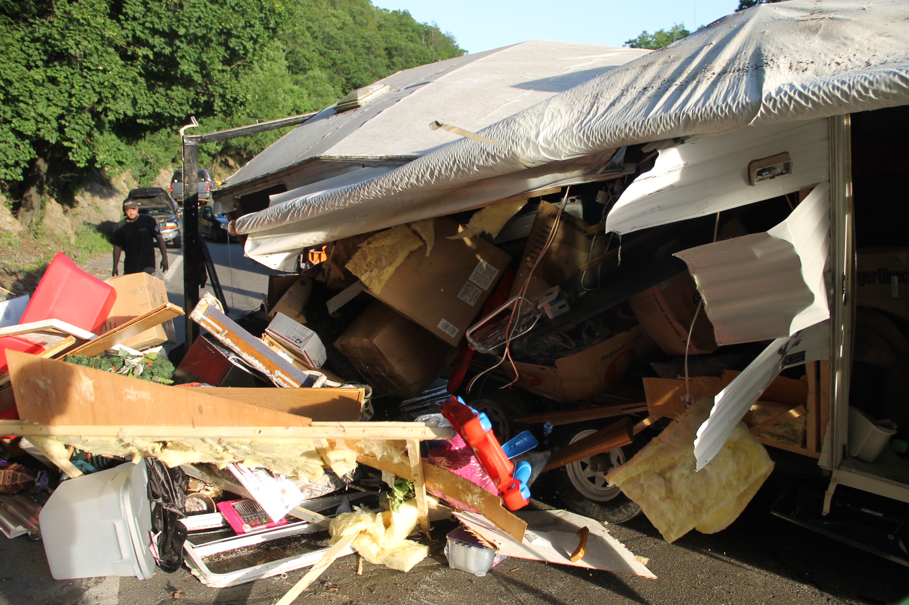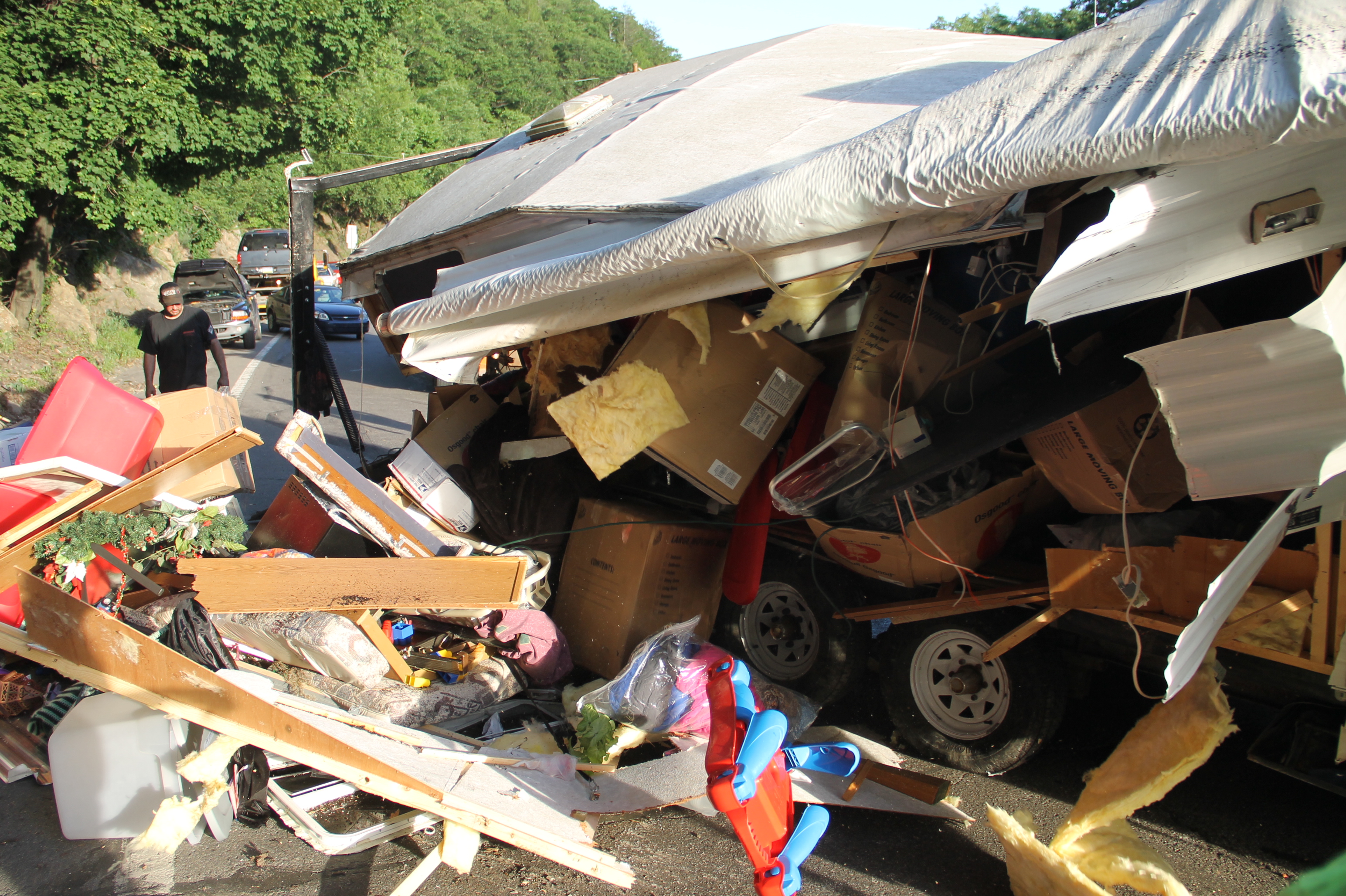 The father, who recently purchased the trailer, told police that they were in the process of moving to Texas, when their overloaded camper started to lean while traveling north up Hometown Hill. He added that, despite trying to compensate, he was unable to prevent it from overturning.