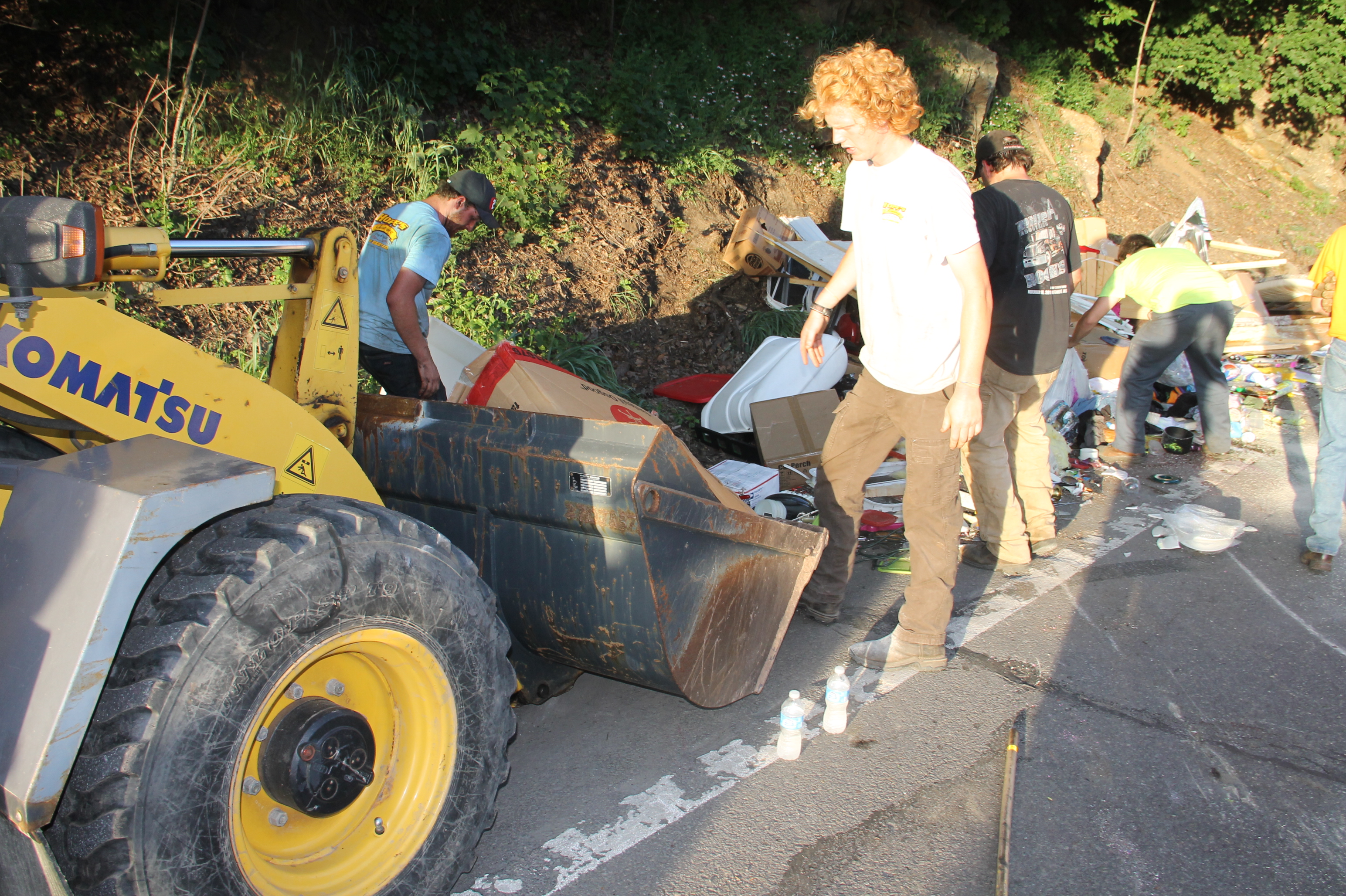 Crews with Hope’s Towing and Collision, Tamaqua, worked carefully to overturn the camper to allow for safe rescue of any cats that remained hidden in the overturned camper.
