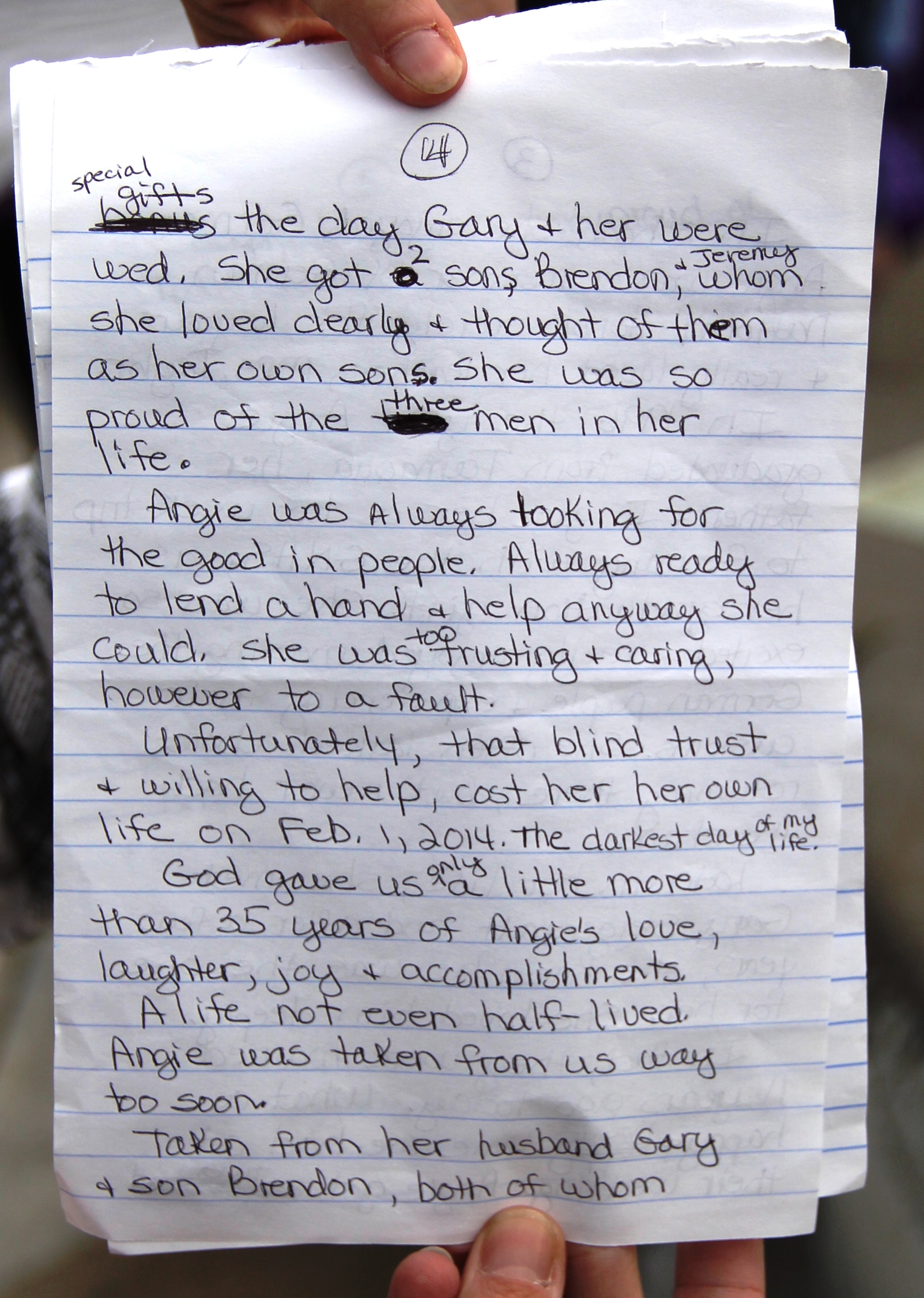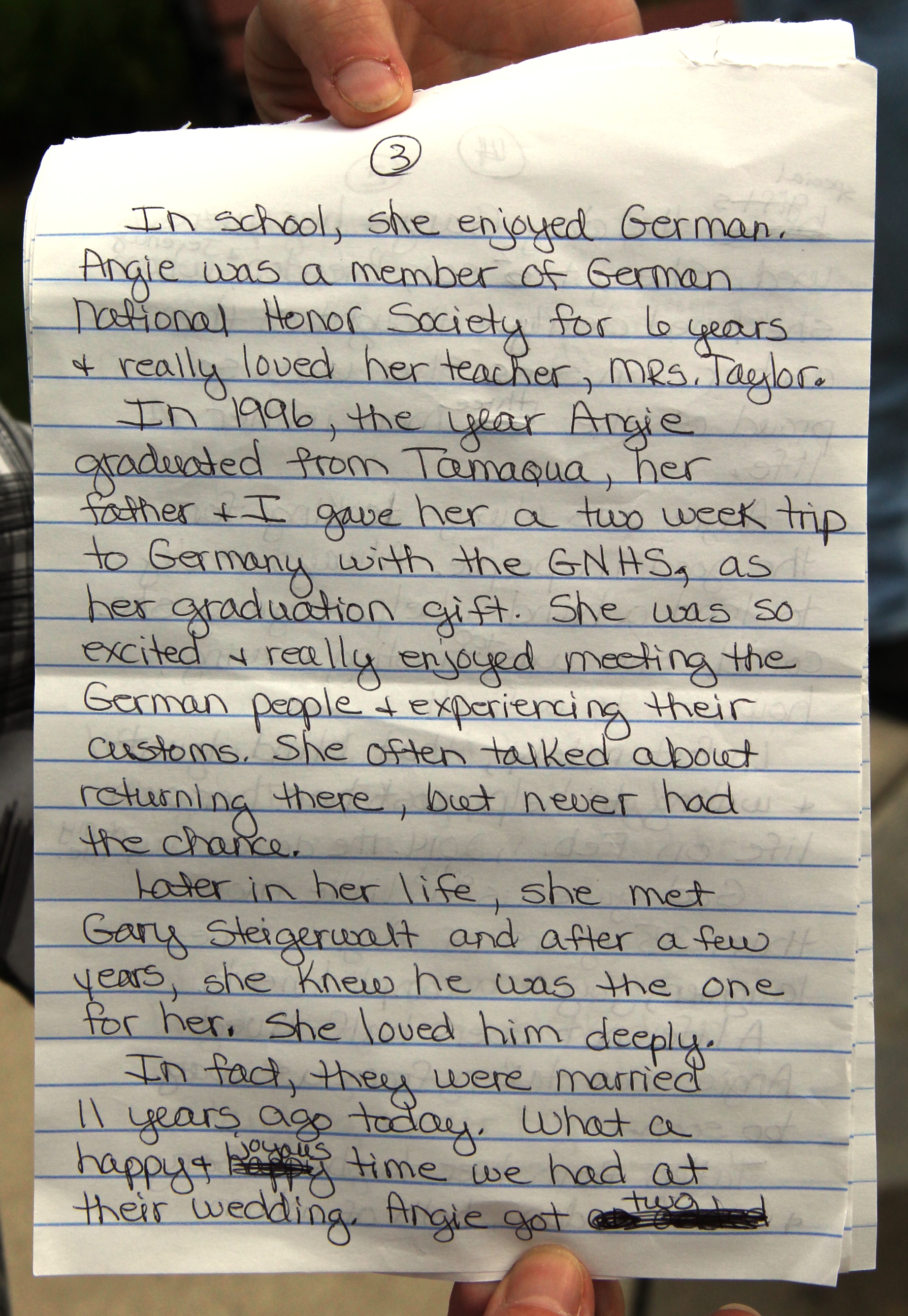 Click HERE to view a Times News story (dated March 1, 2014) by reporter Chris Parker, titled “Remembering Angela”.