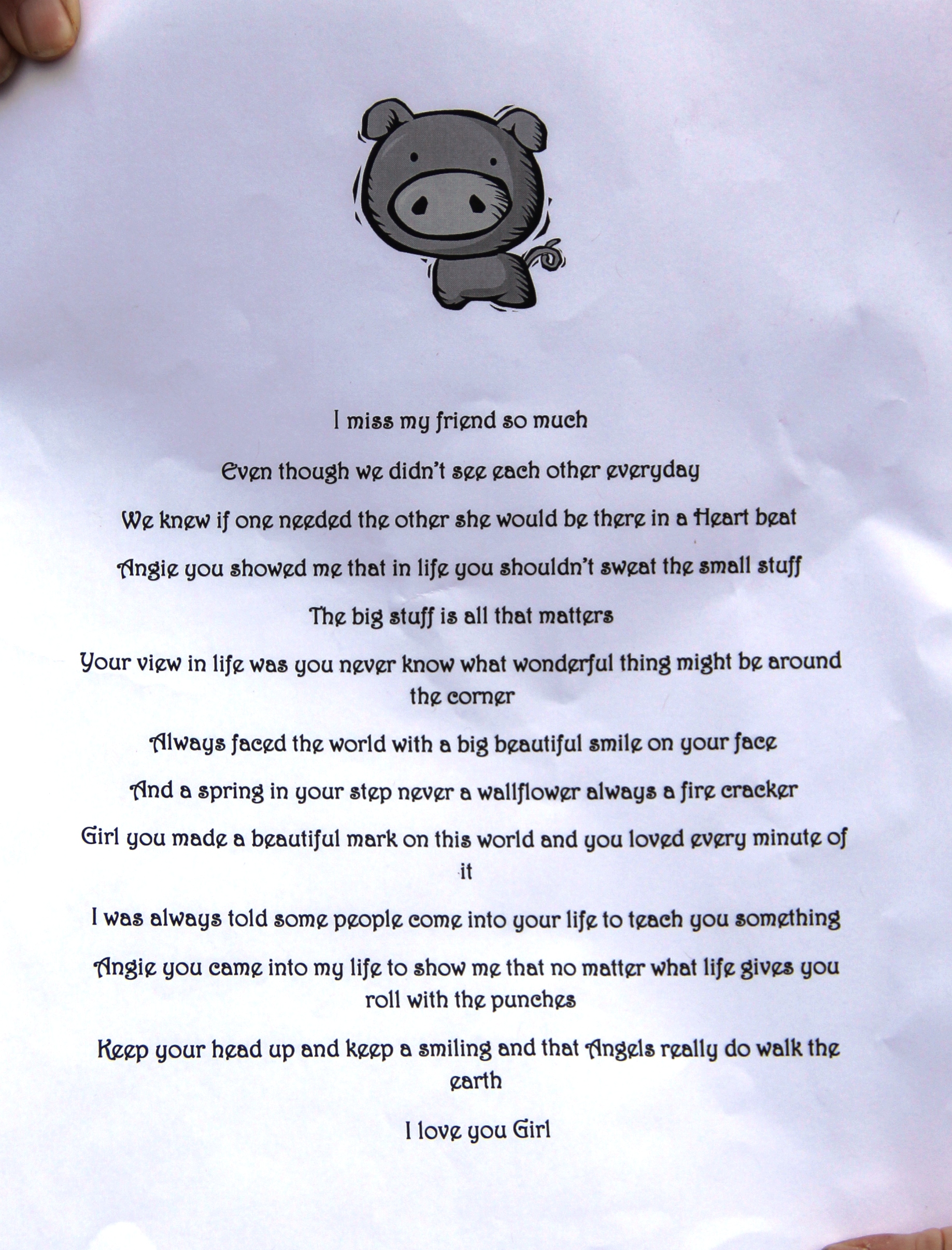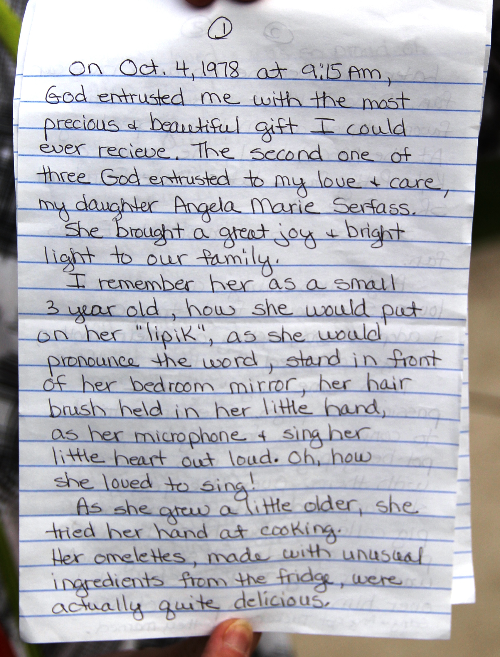 Angela’s mother Jean (Boltz) Serfass read a poem during the vigil.
