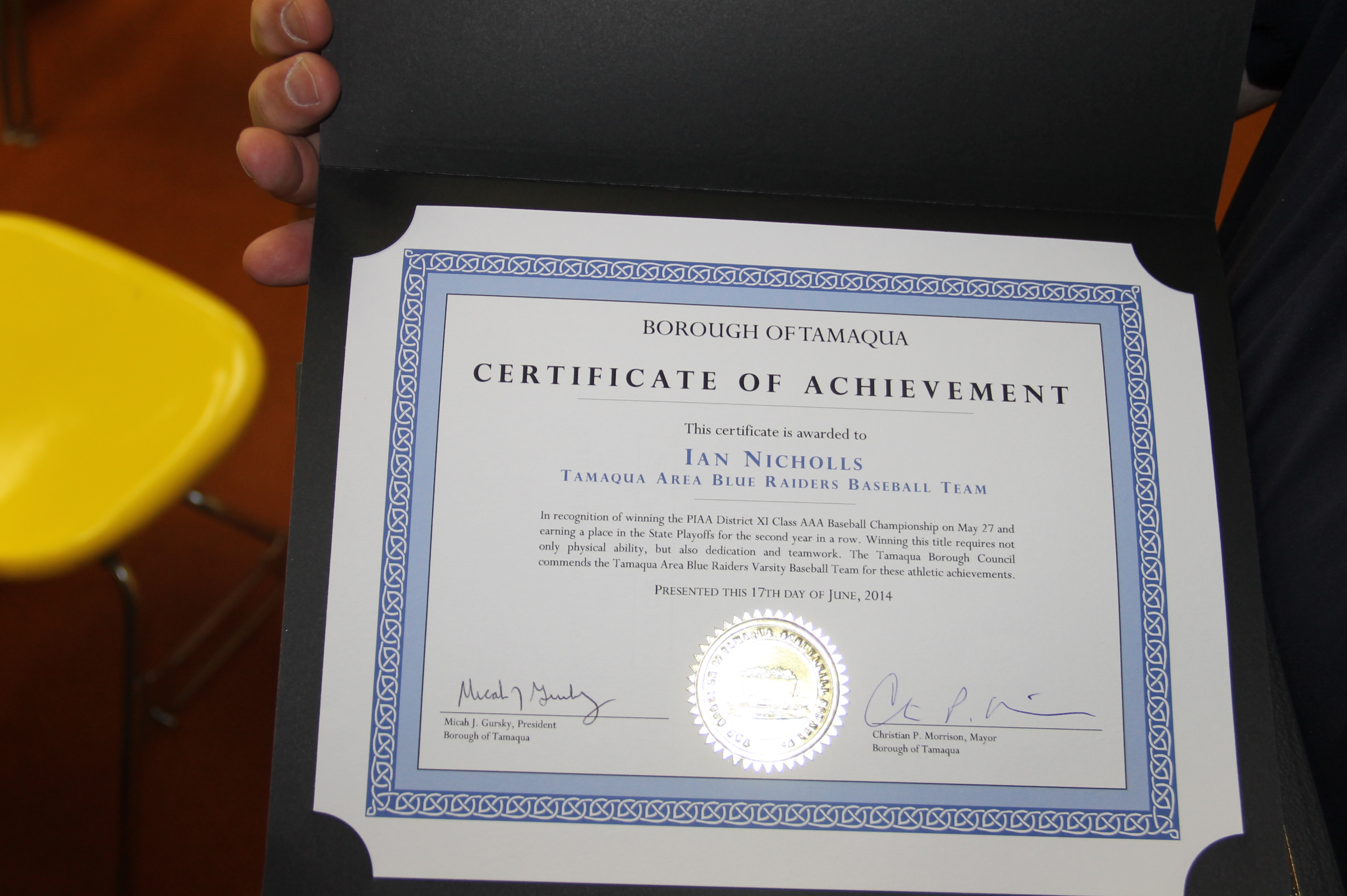 Dave Mace, Chairperson, Recreation and Youth Committee, started the meeting recognizing Tamaqua’s Spring District XI Champions. (see photos and video below)