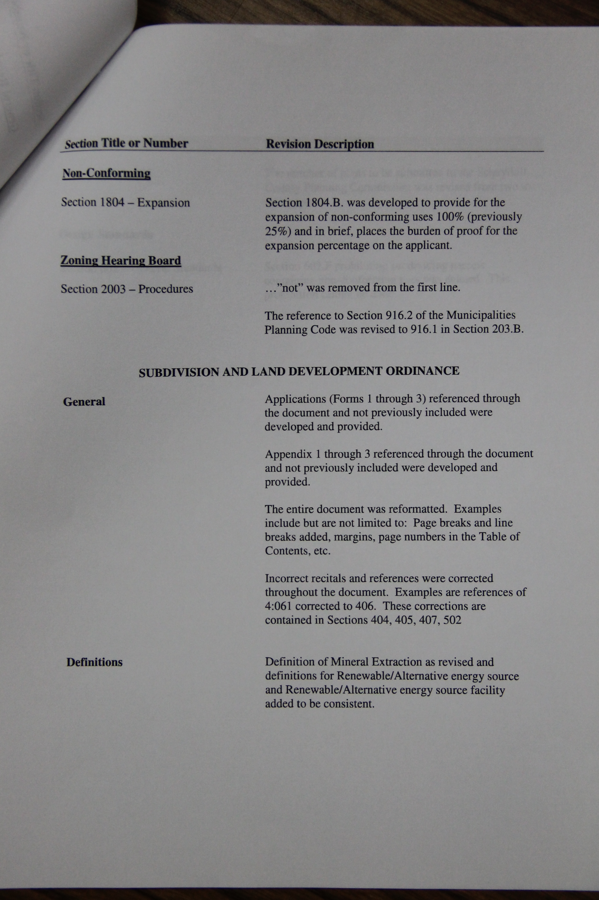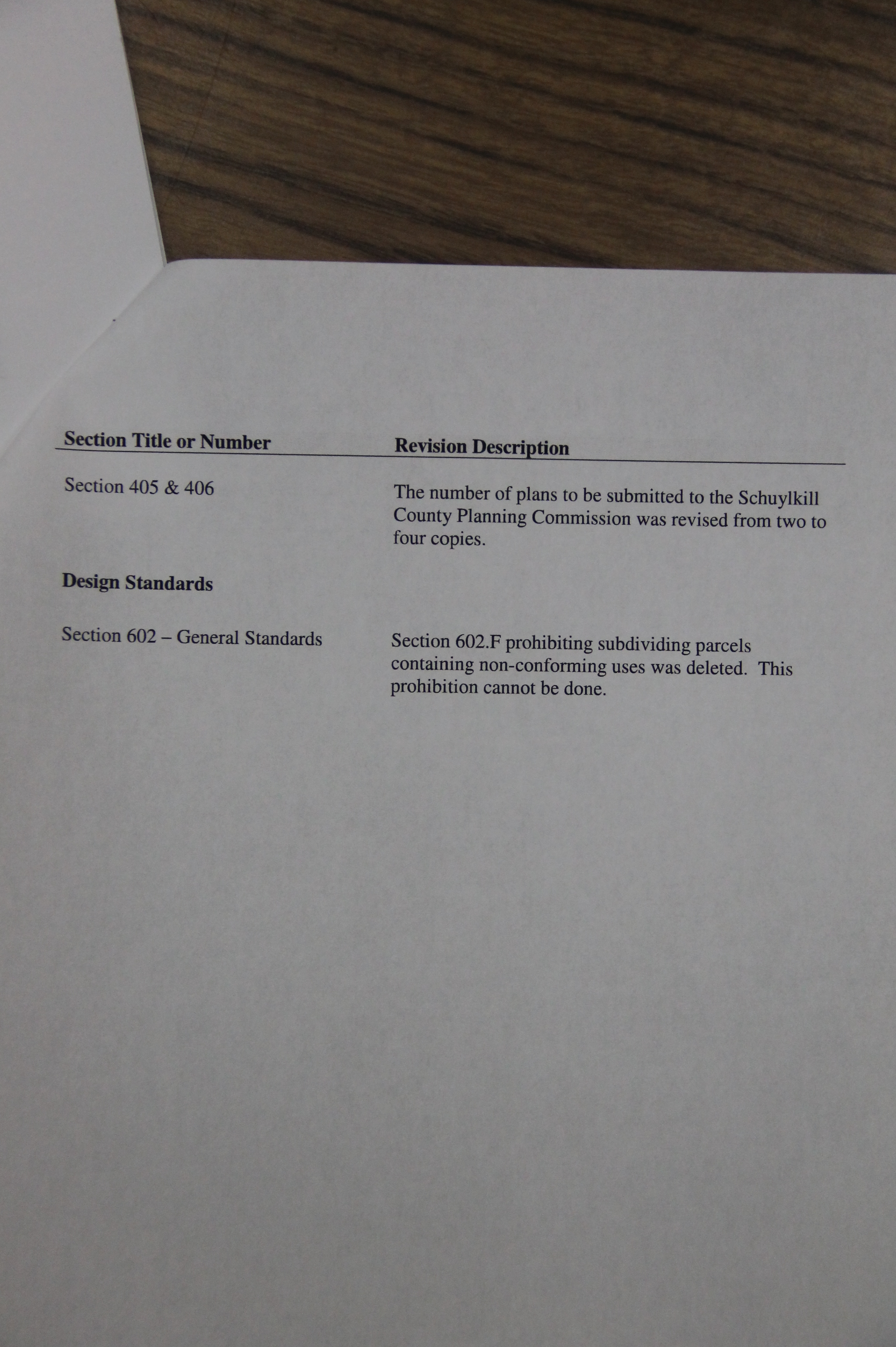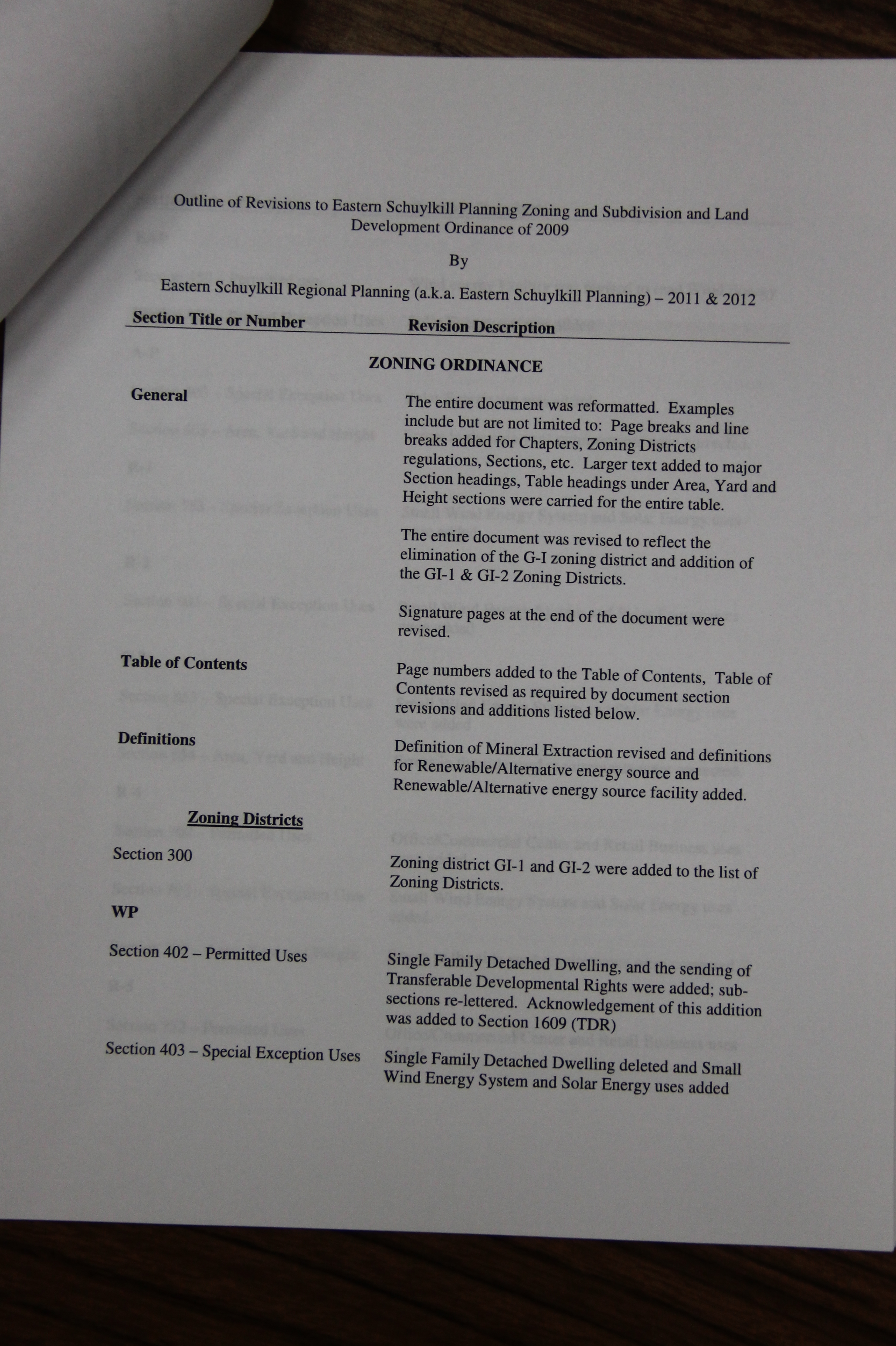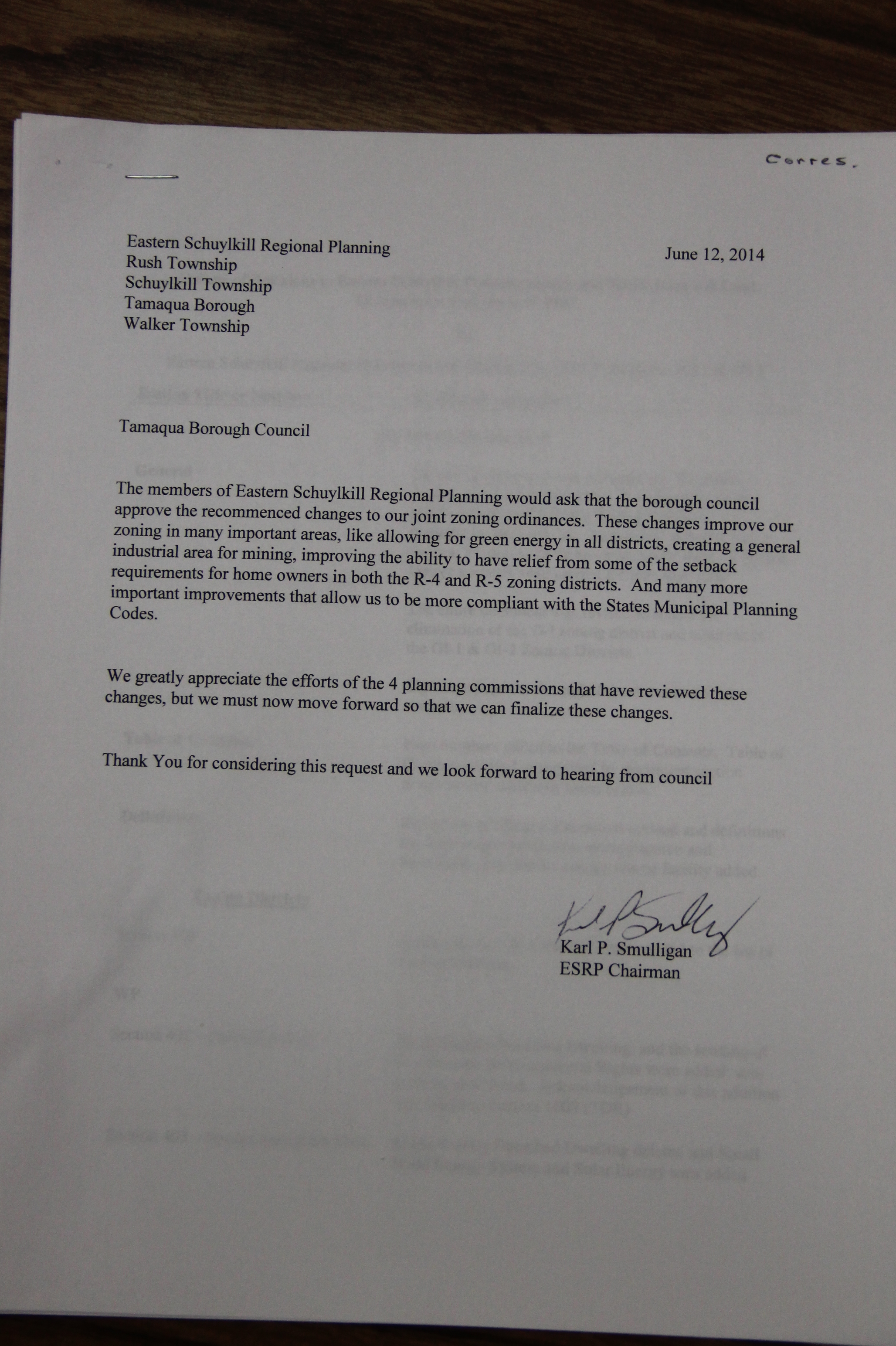 – Frank Kane, member, Tamaqua Zoning Board, stated the options of making variances more lenient for Tamaqua residents and businesses. Correspondence regarding ESRP discussed. (see photos and video)