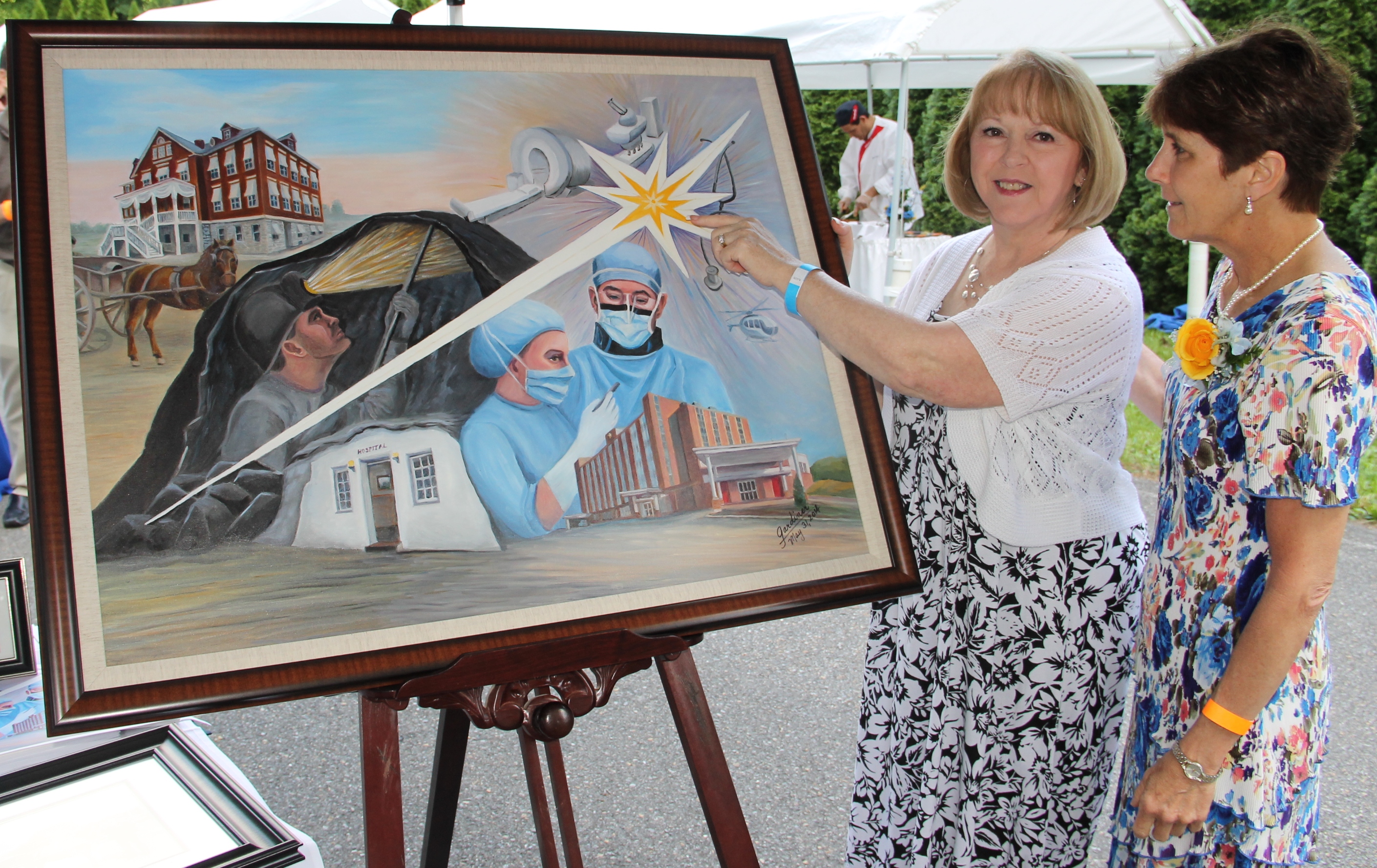 A special piece of artwork was displayed during the St. Luke’s Hospital – Miners Campus Black Diamond Garden Party held on Saturday, May 31, 2014 on the grounds of the Harry Packer and Asa Packer Mansions in Jim Thorpe.