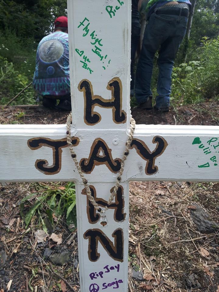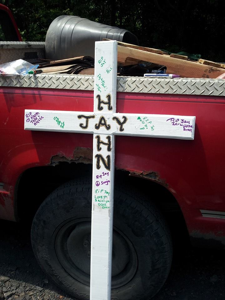 Another post by Ritter reads, “Today was one of the saddest days ever going to the site and seeing where he was left to die, I just keep asking myself WHY? I don`t understand it and I have no answers, I`m heartsick looking at his brother Harry and his Aunt Alice Hahn and jay`s cousin, and all the rest of his family and friends. I have so many pics from today the cross his brother had made for him was beautiful and we all signed it, I`m so sorry to anyone that had been waiting all day for me to approve things on here because I was gone for most of the day and then had to come home and take care of my kids! I look at my son and daughter and can`t imagine what Jay`s mom must be going through, you go through so much raising a child and watching them grow through the years and then you let them go out into the world so some so called friend can take there life with no remorse! Jay please watch over all of us and know that we love you and wont ever forget you! RIP.”