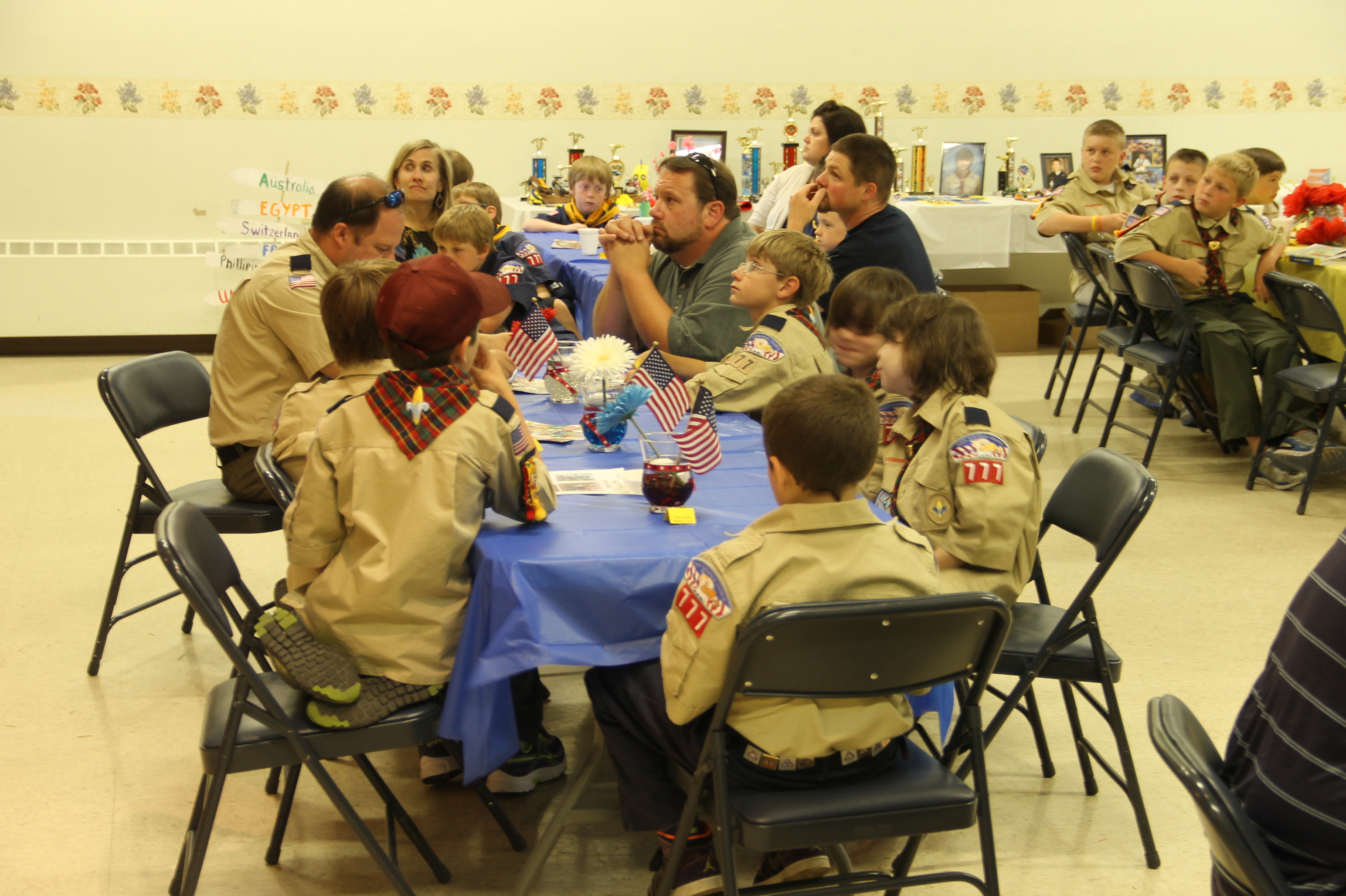 The banquet can be like a regular pack meeting, with songs, skits, stunts, and awards. Or it can be something different and a little more special. Your pack may decide to bring in an entertainer such as a magician or a storyteller. Or you could have a video or slide show of what the pack did over the past year.