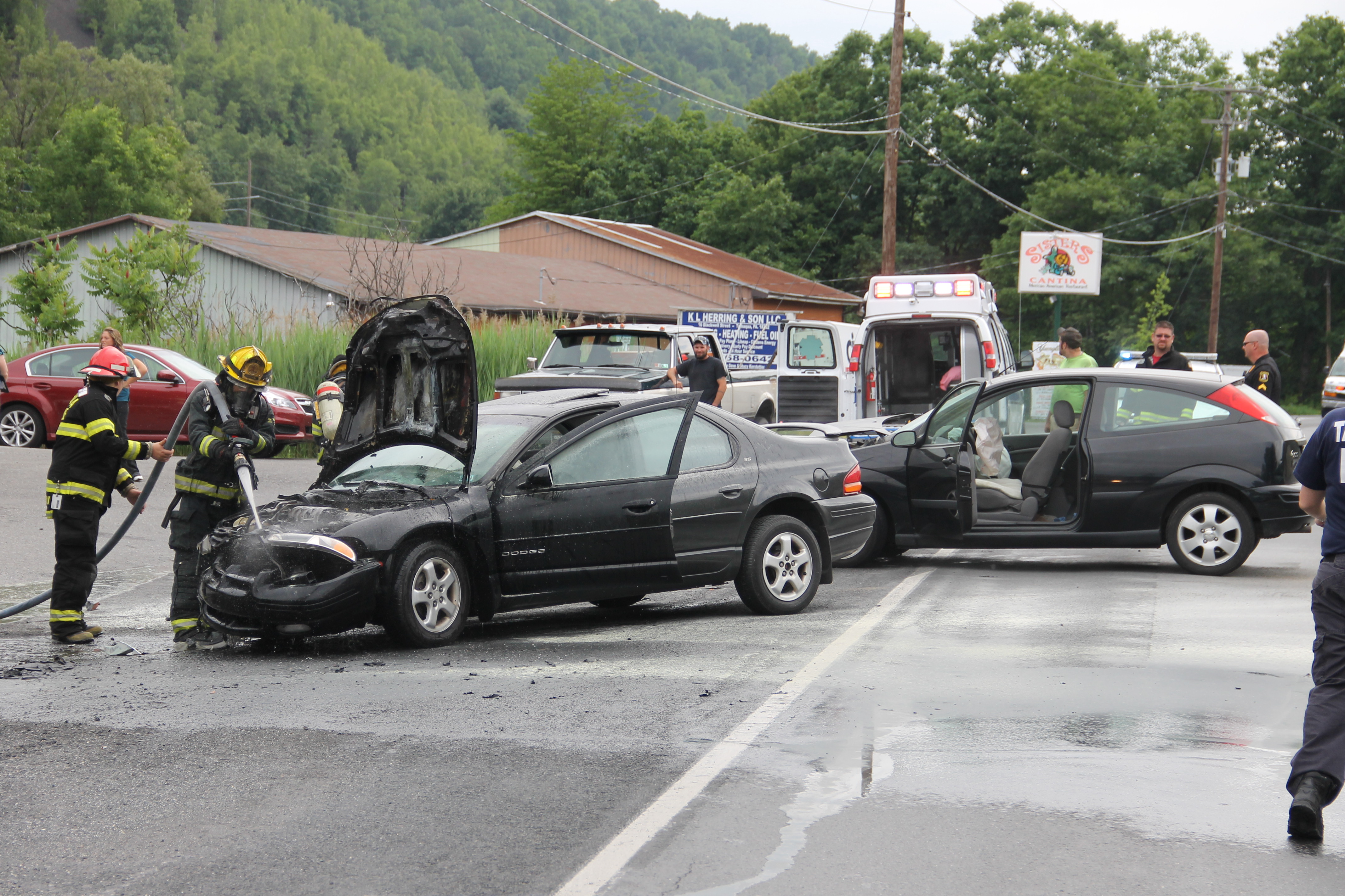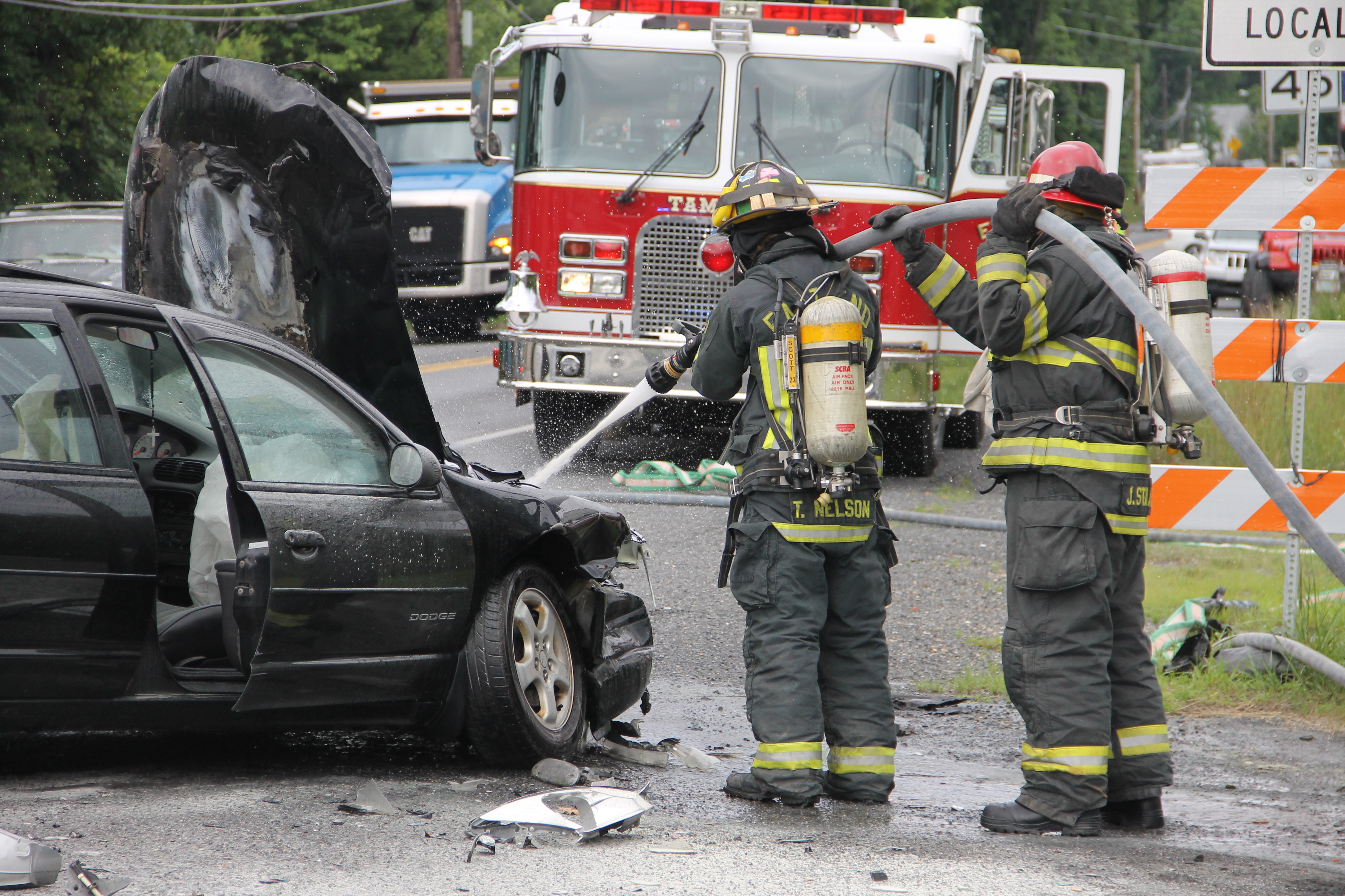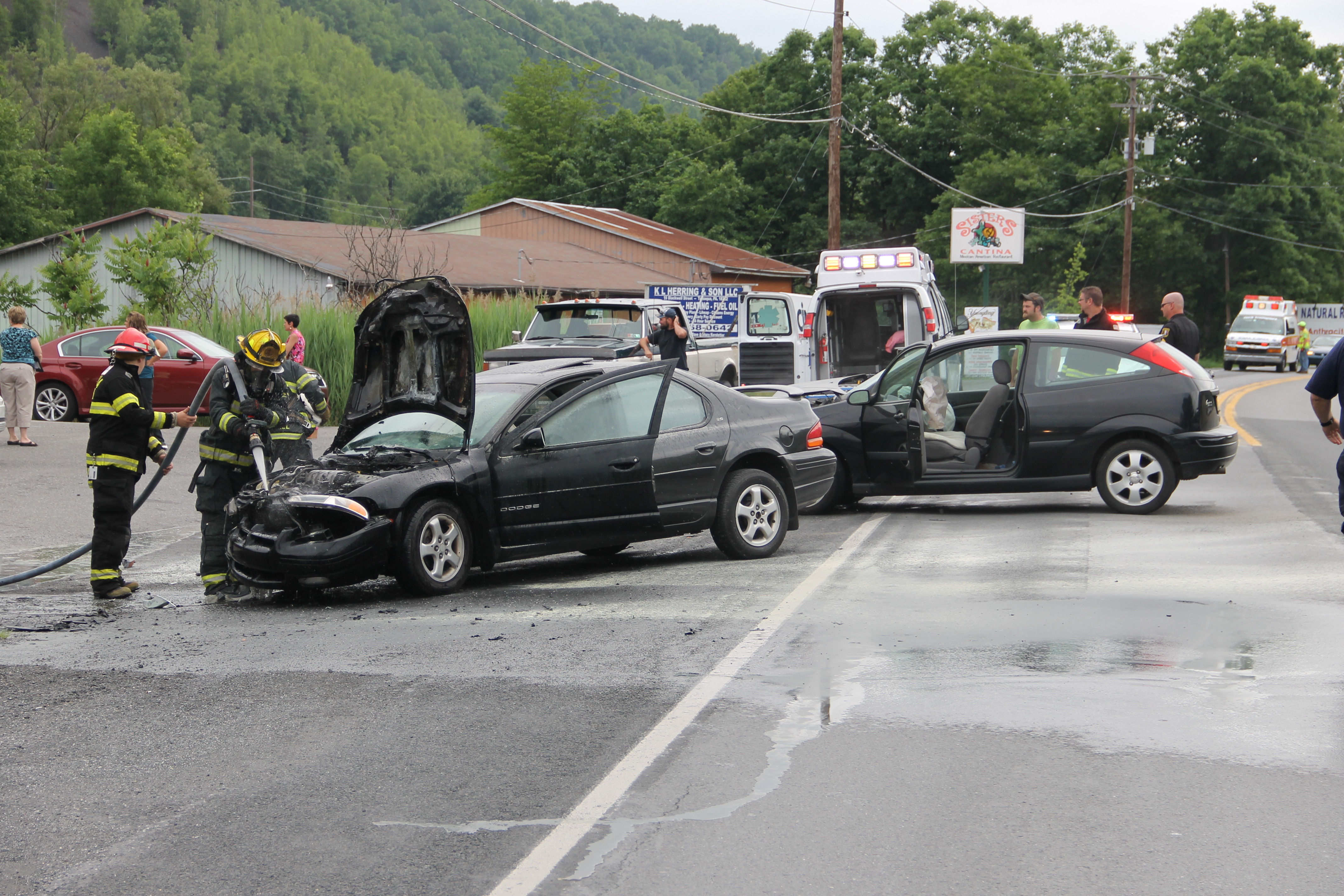Two drivers were taken to the hospital last Monday (June 30, 2014) for unknown injuries following a two-vehicle accident along East Broad Street (US209). Emergency personnel were dispatched to the area in front of 1299 East Broad Street (St. Luke’s Internal Medicine office) around 10 AM for a report of a two-vehicle accident with one vehicle on fire.