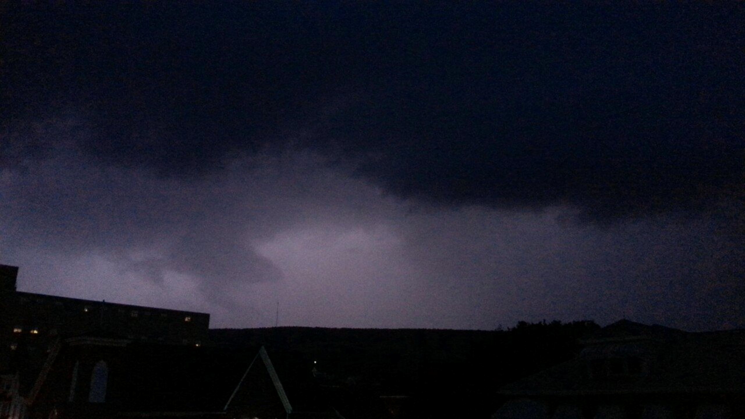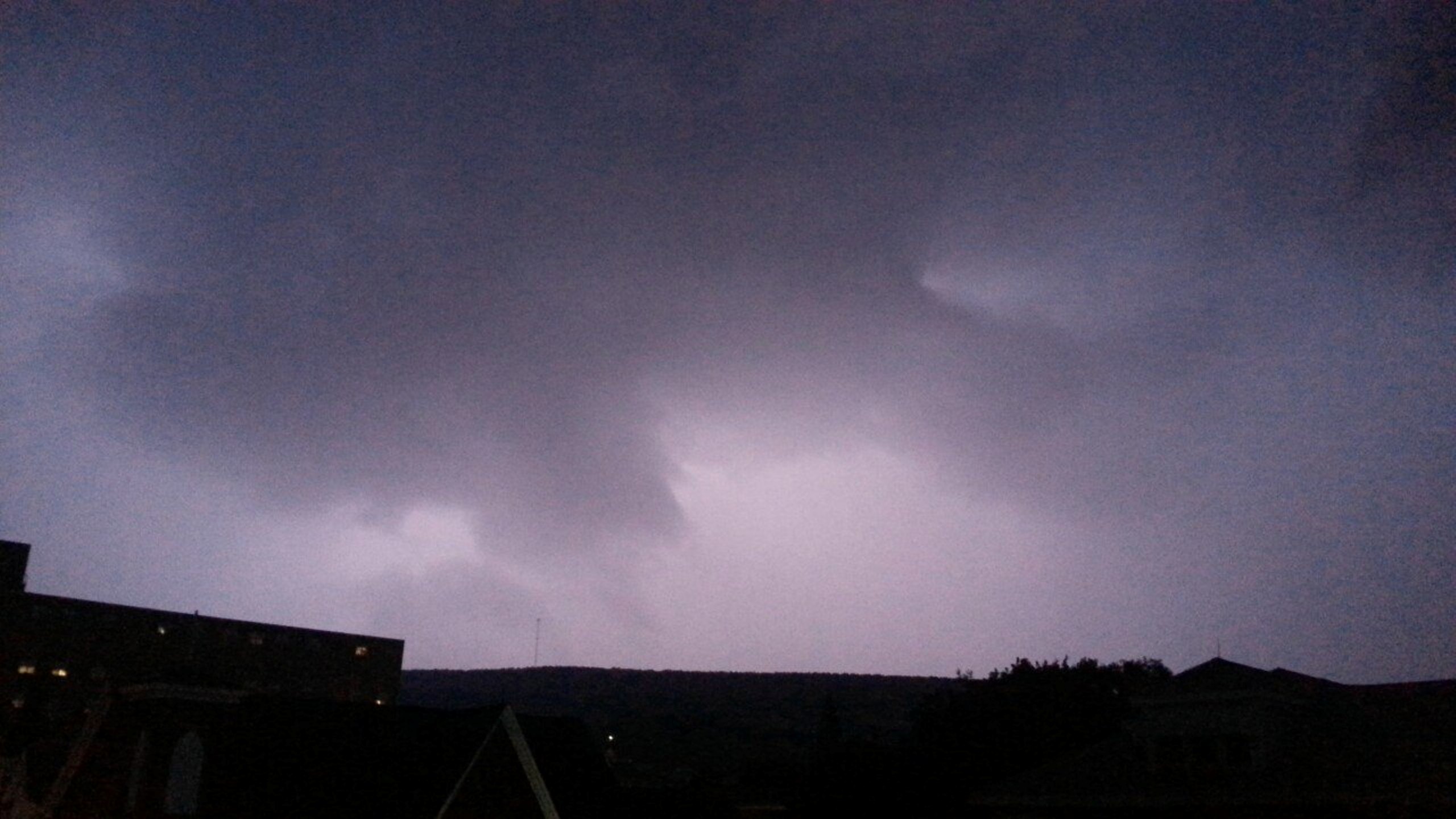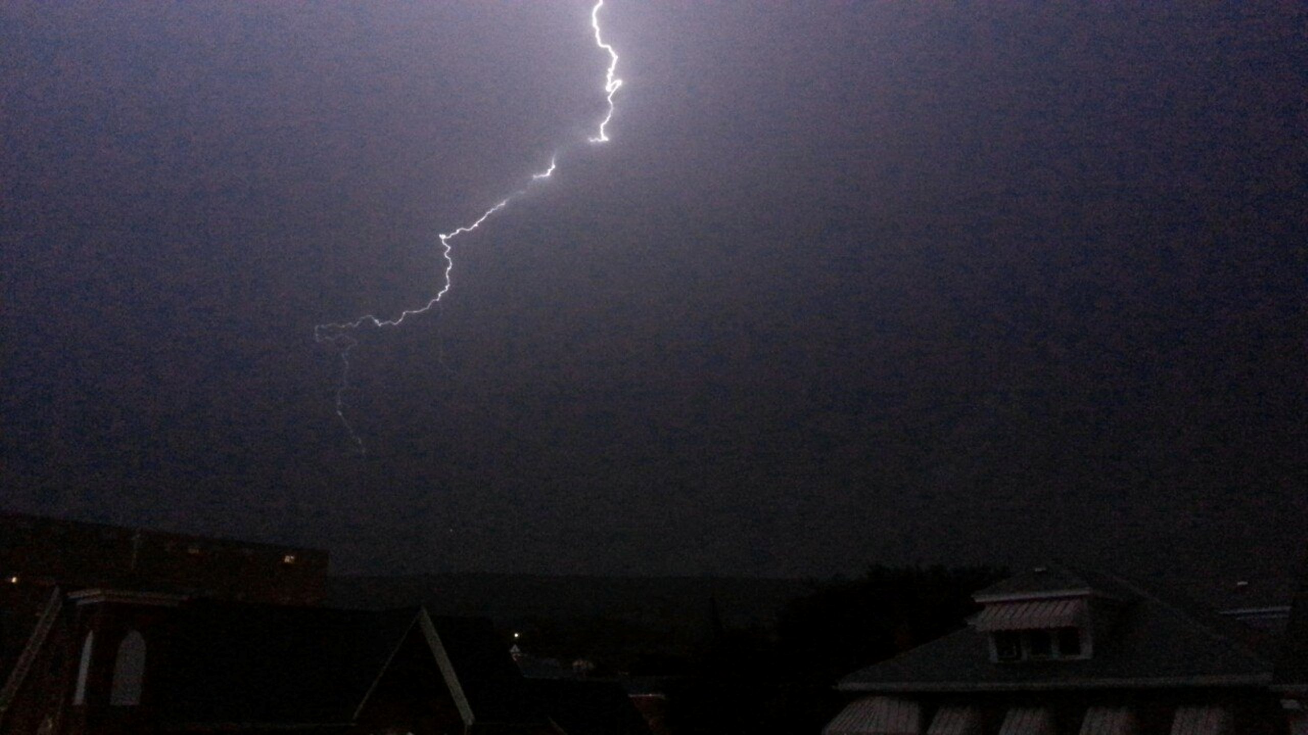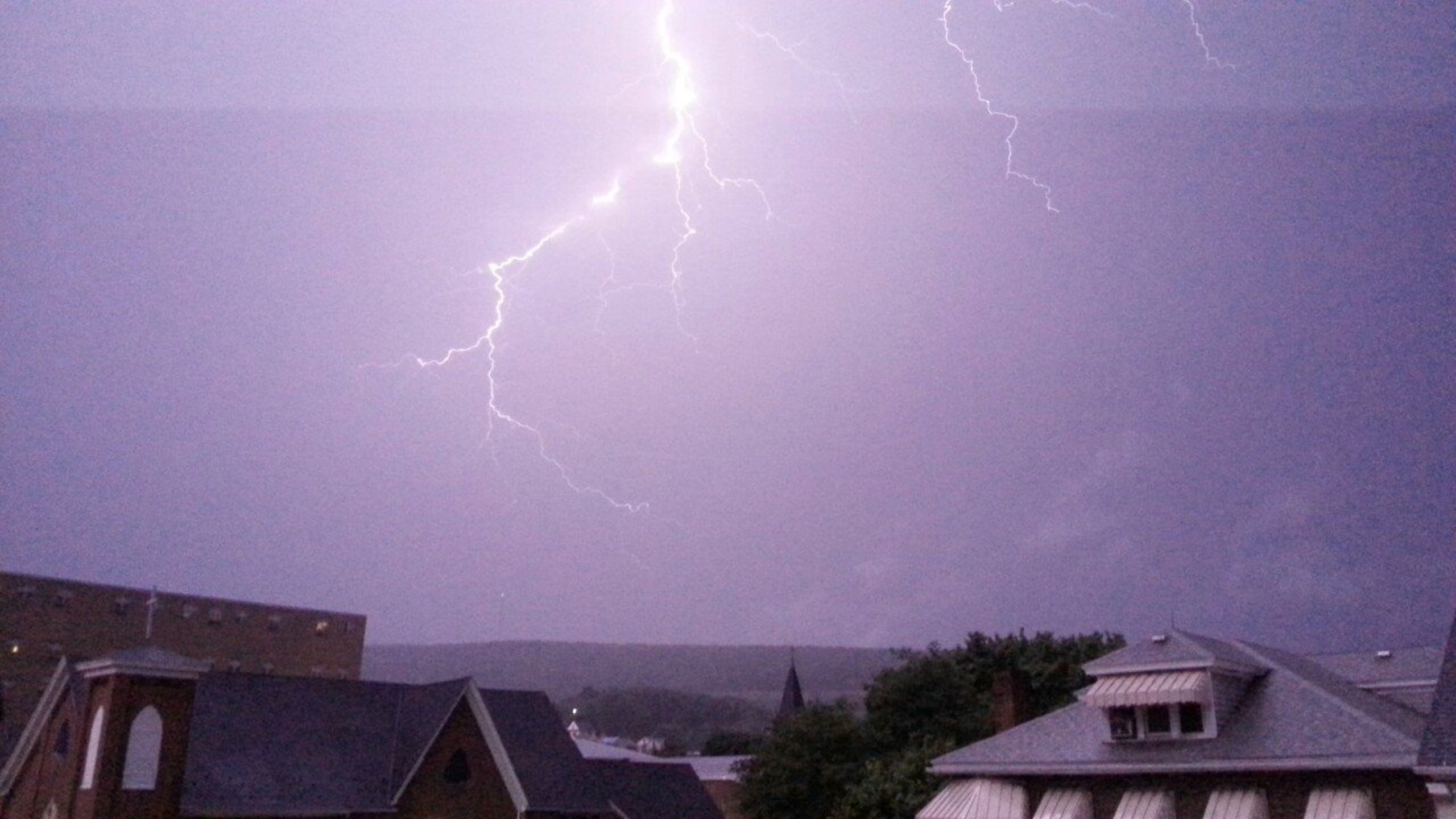 Pictured are photos of lightning above Tamaqua taken later today (Sunday, July 13, 2014) by Justin Stephens. He stated that he snapped the photos via a “Lightening Camera” application he downloaded on his Samsung Galaxy Note 2 cell phone.
