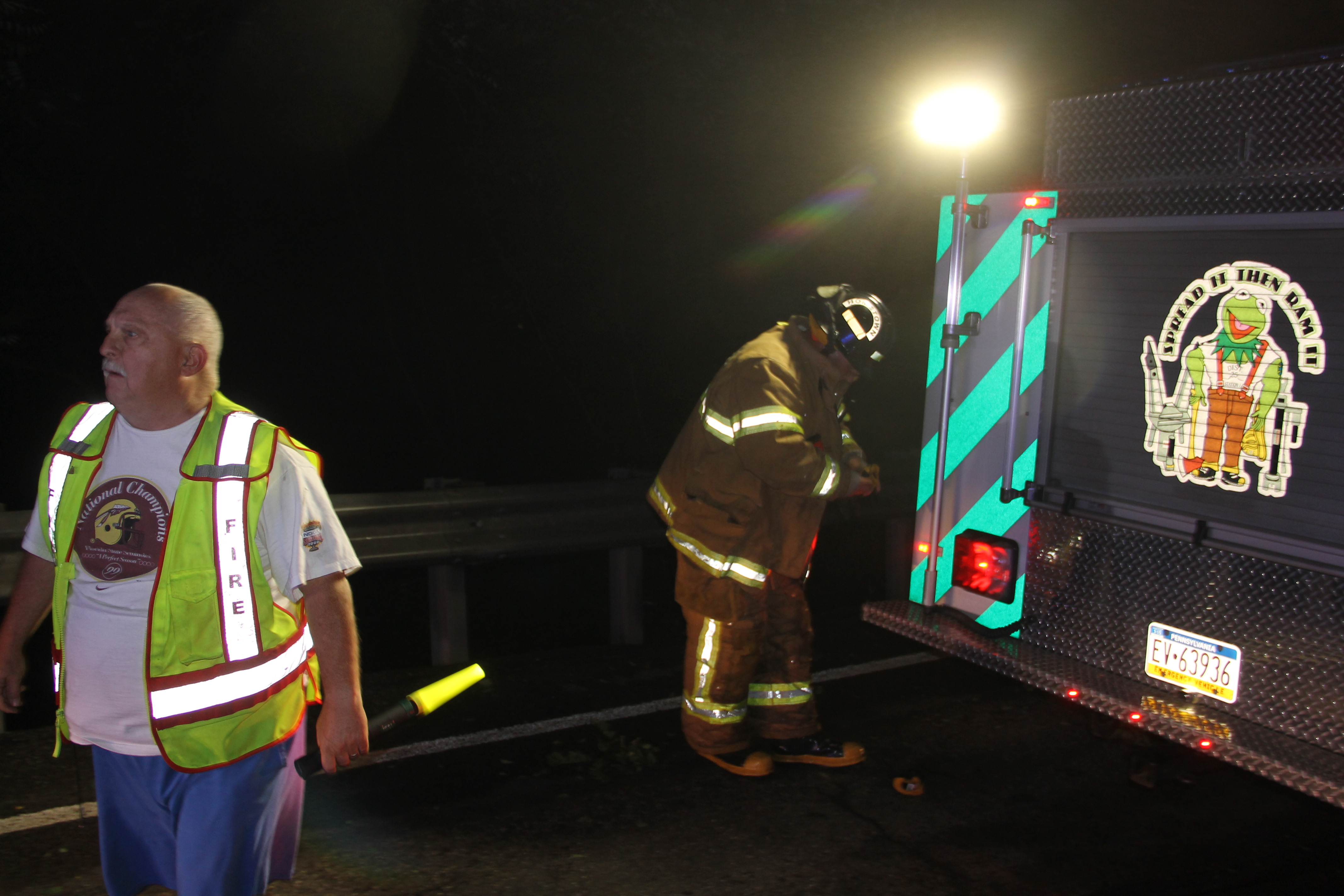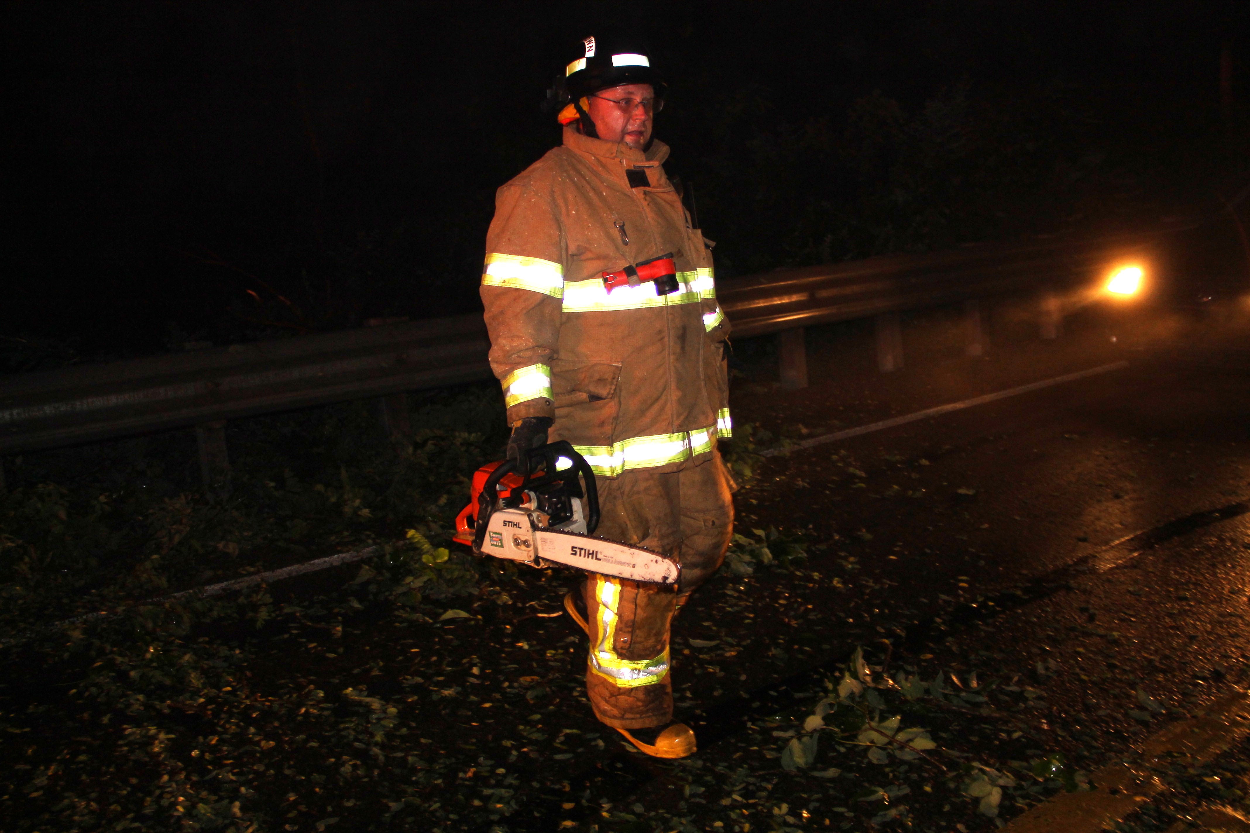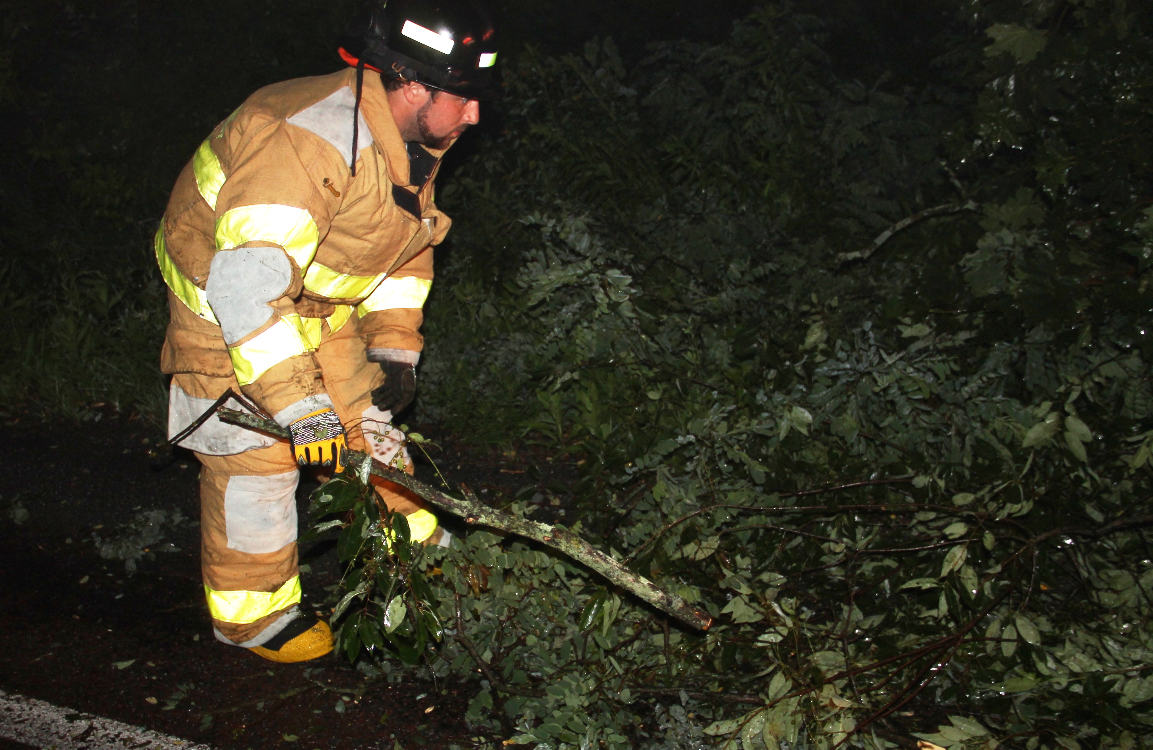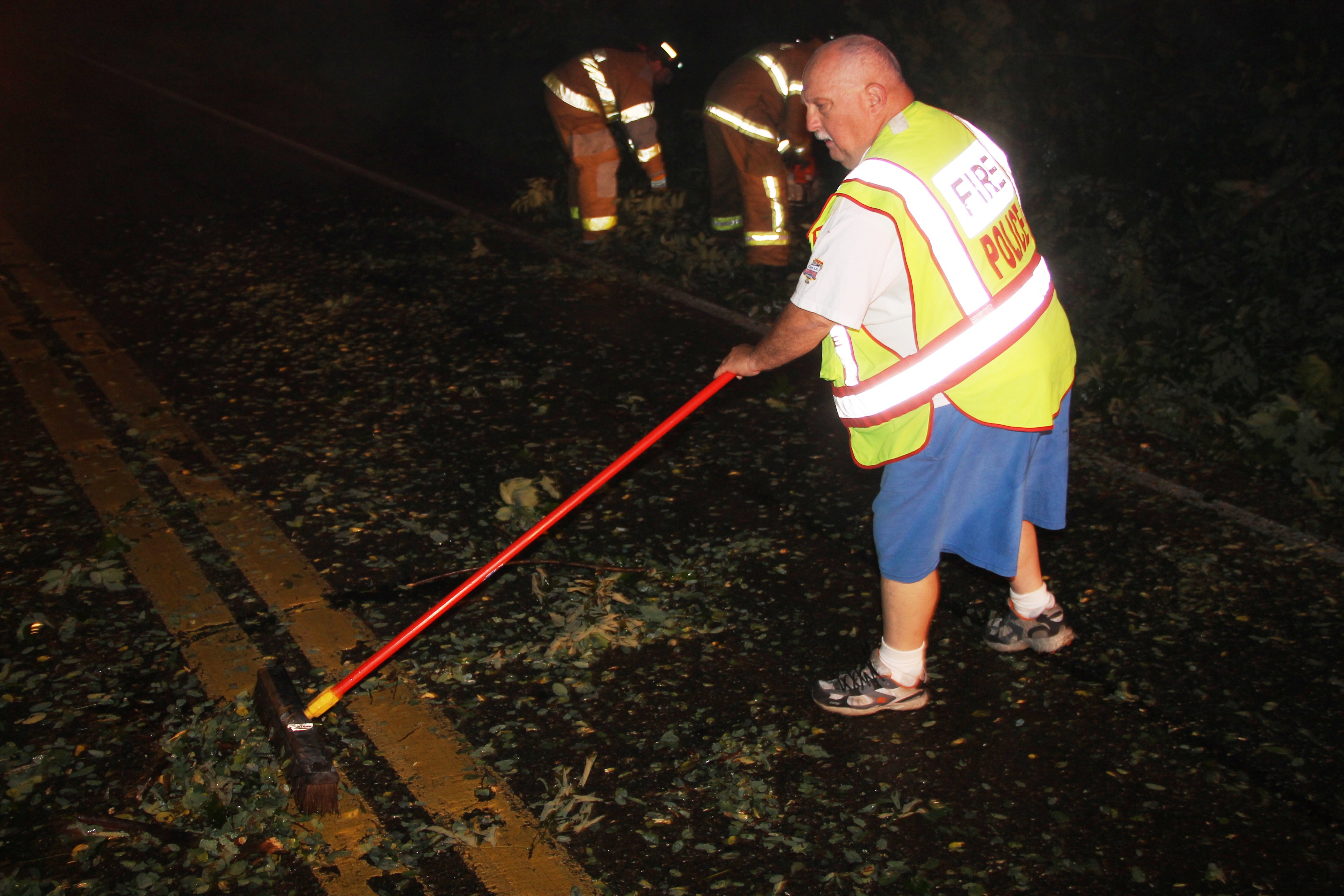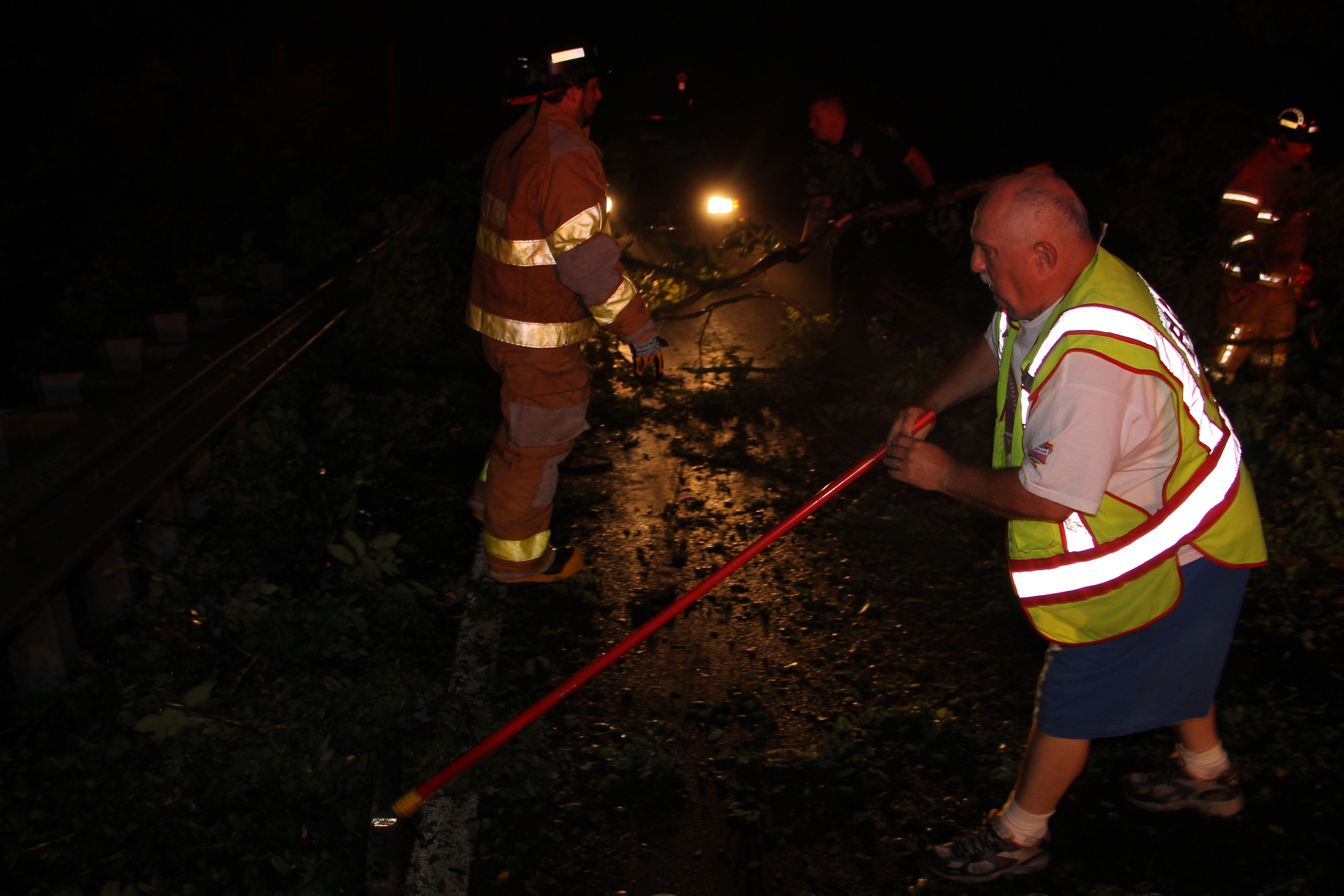 Officials (to include firefighters, fire police volunteers and Rush Township patrolman Jeff Tanner) spent about 20 minutes cutting and removing the large tree from the road. Road was reopened a short time later.