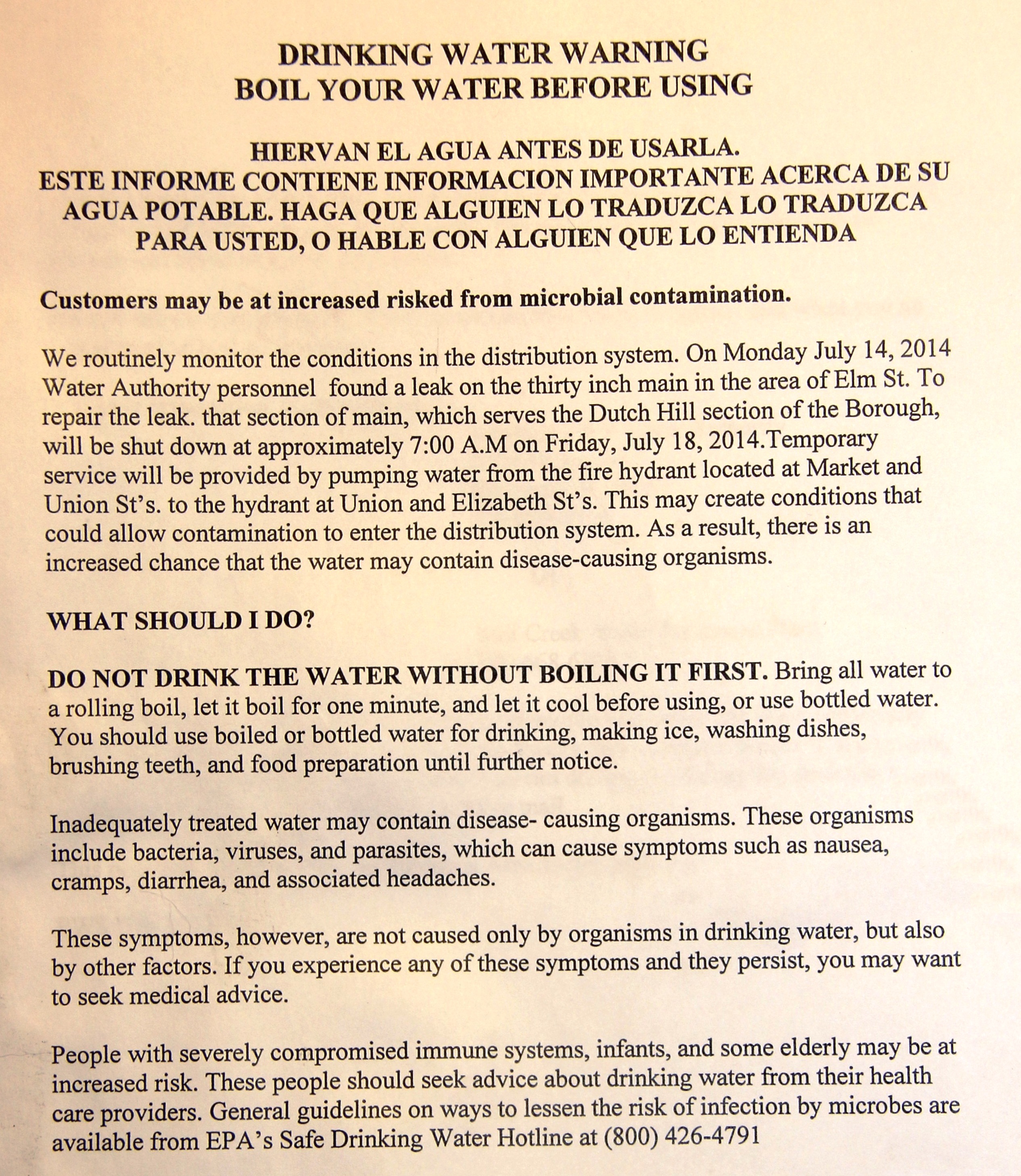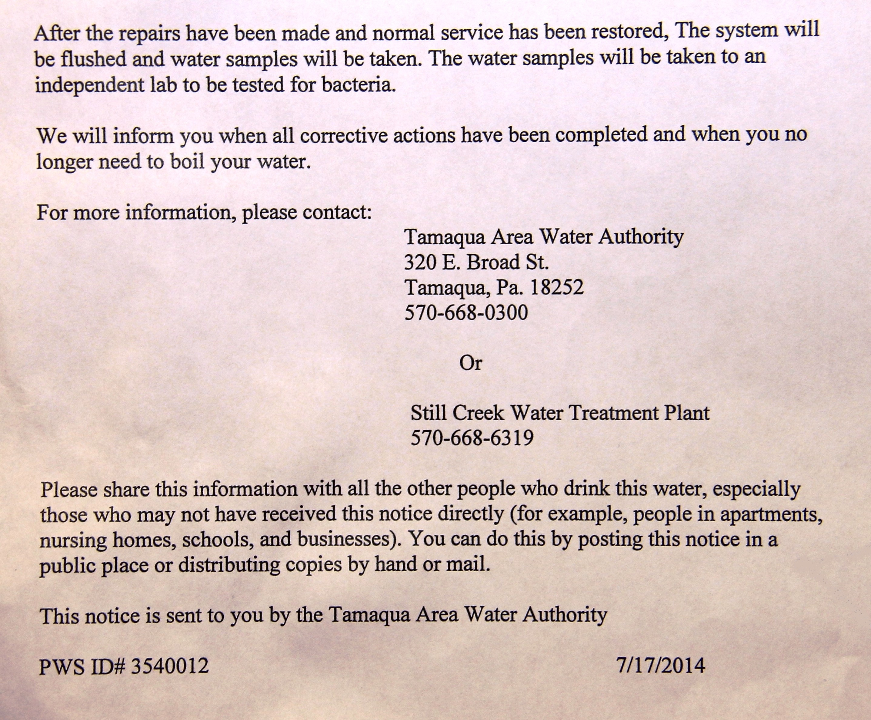 Water Boil Advisory, Dutch Hill, Tamaqua, 7-17-2014 (1) Water Boil Advisory, Dutch Hill, Tamaqua, 7-17-2014 (2)