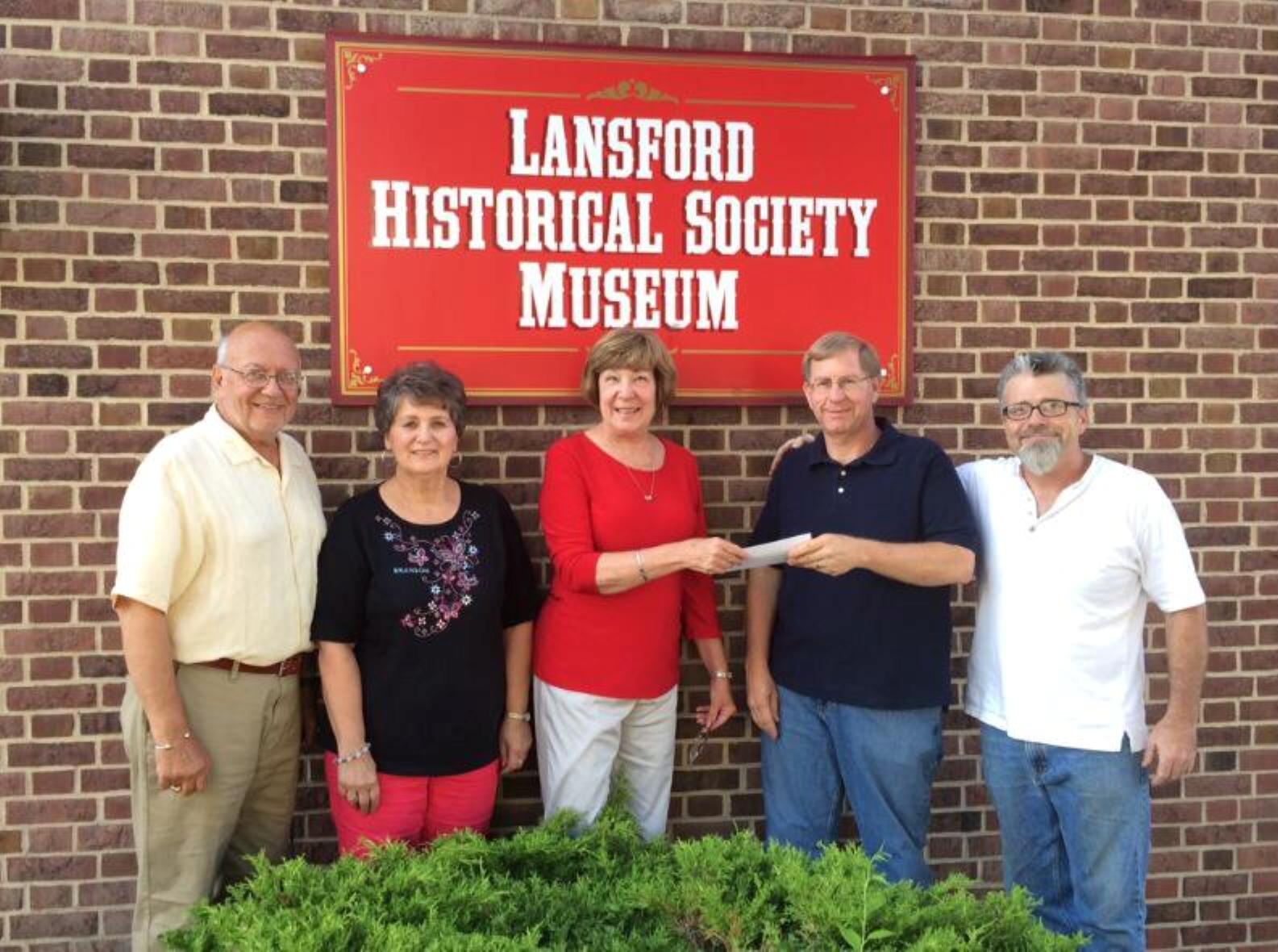 Members of Lansford’s High School Alumni made a donation to the Lansford Historical Society Museum yesterday (Thursday, July 17, 2014). Pictured from left are Mike Lukac, Geri King, Susan Lukac, Bill Harleman, and Bob Perrin.
