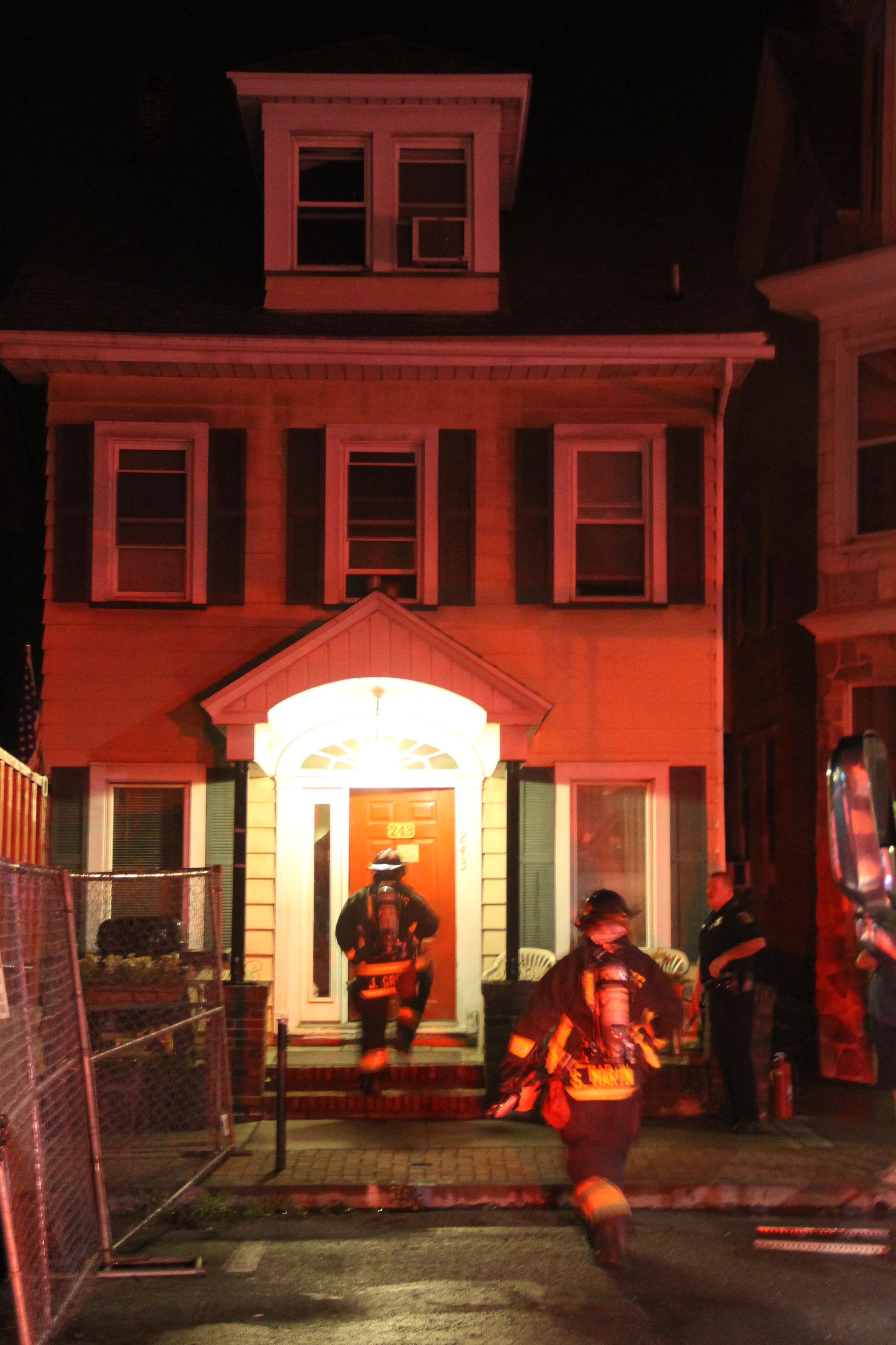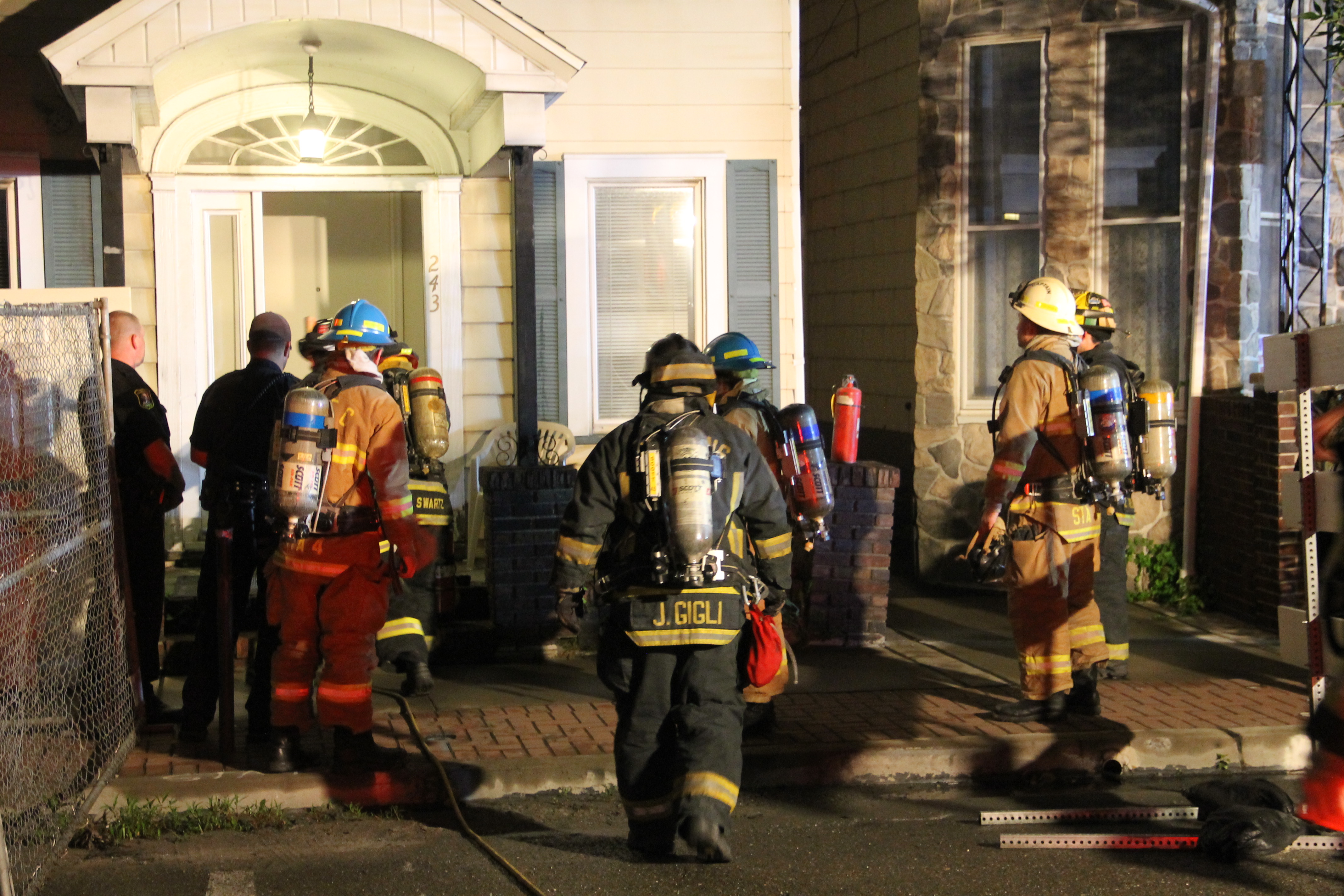 Emergency personnel were dispatched at 1:37 AM today to 243 East Broad Street for a report of a structure fire. A neighbor said she could see heavy smoke coming from the second floor of the row home (which is located just east of the US209 bridge work).