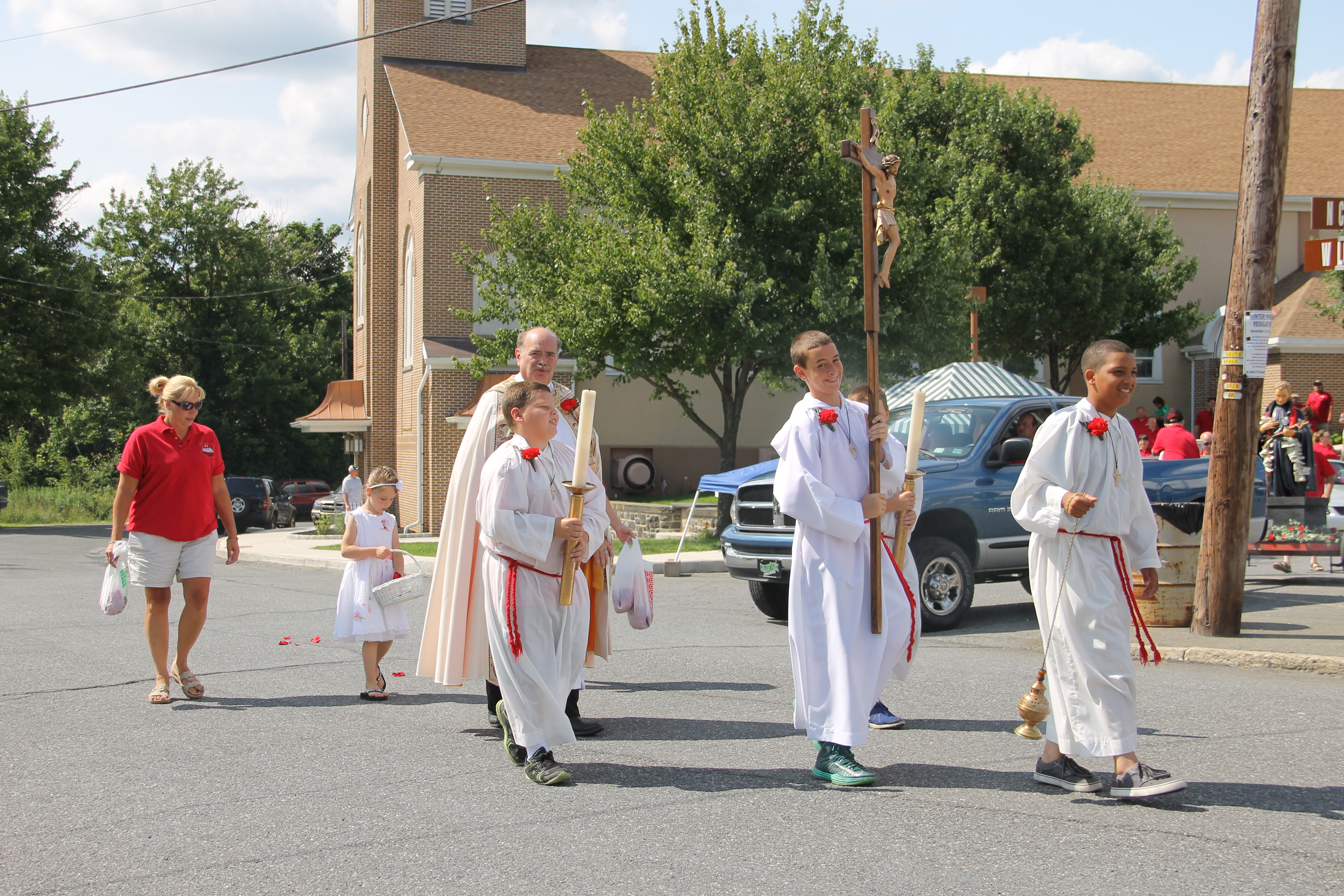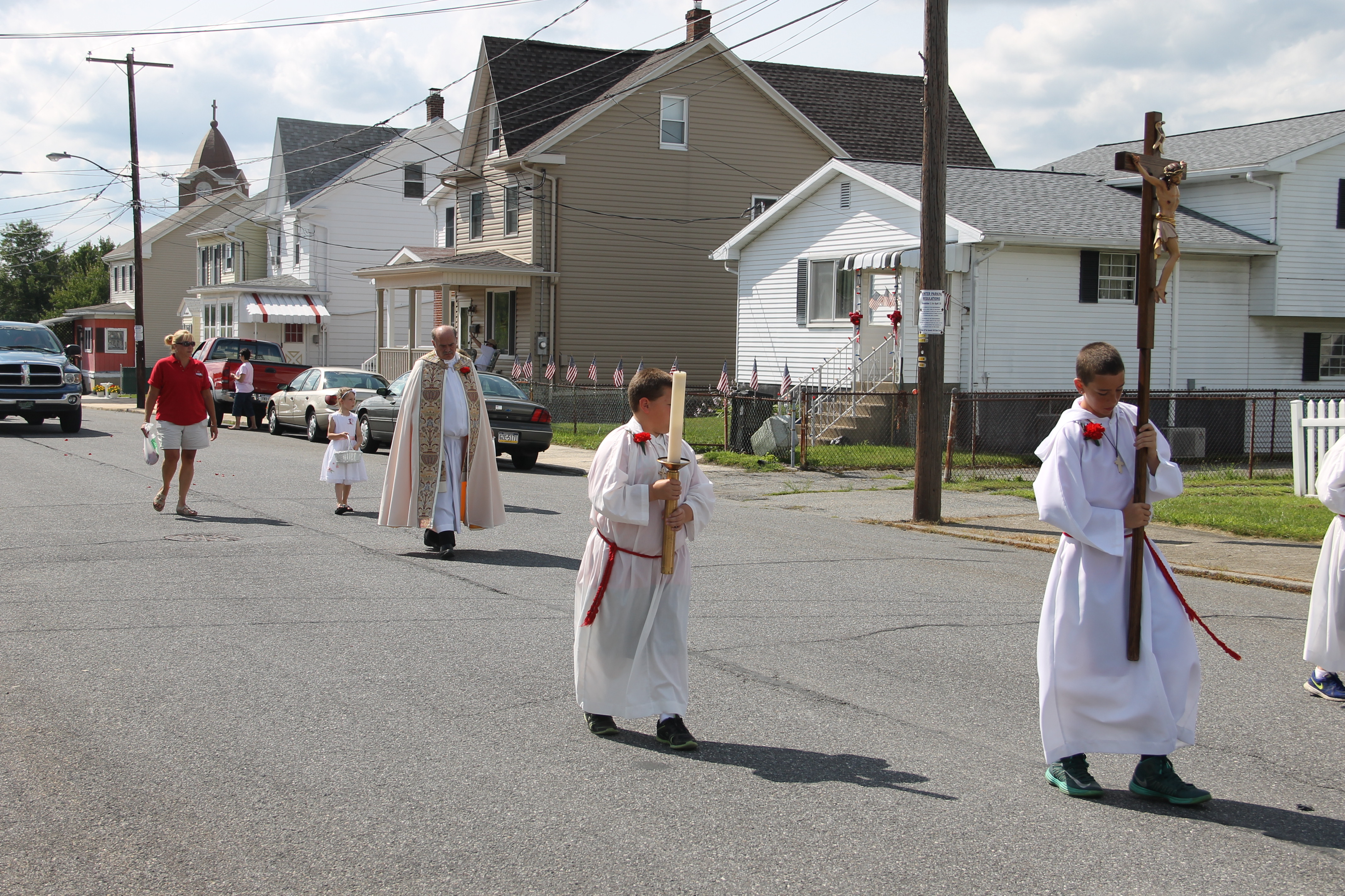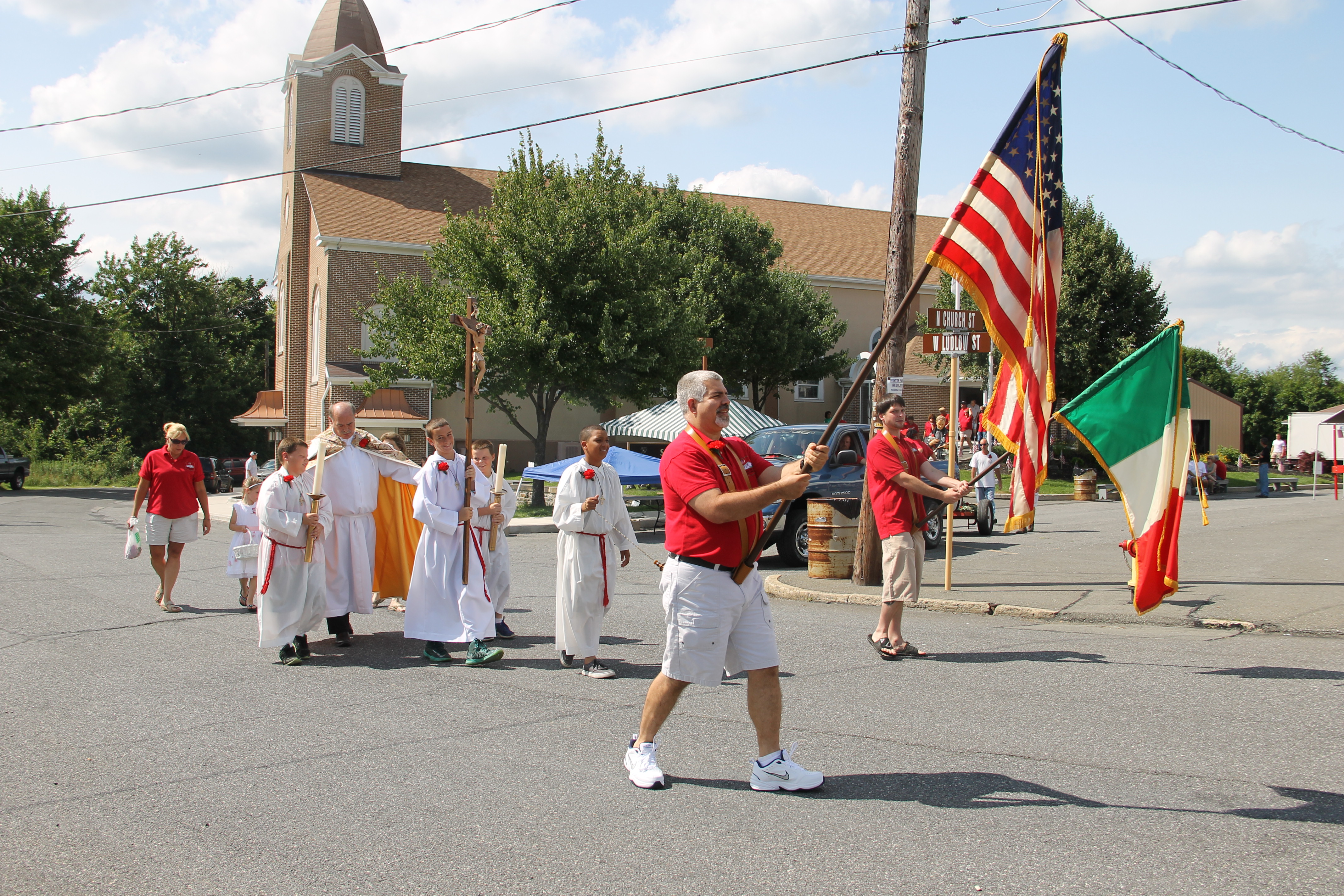 St. Gabriel’s Italian Club and St. Joseph’s Parish in Summit Hill held their annual Gabriel of Our Lady of Sorrows Procession through the western section of the borough yesterday (Sunday, July 20, 2014). The procession was held on the third day of the church’s 80th Annual Parish Festival.