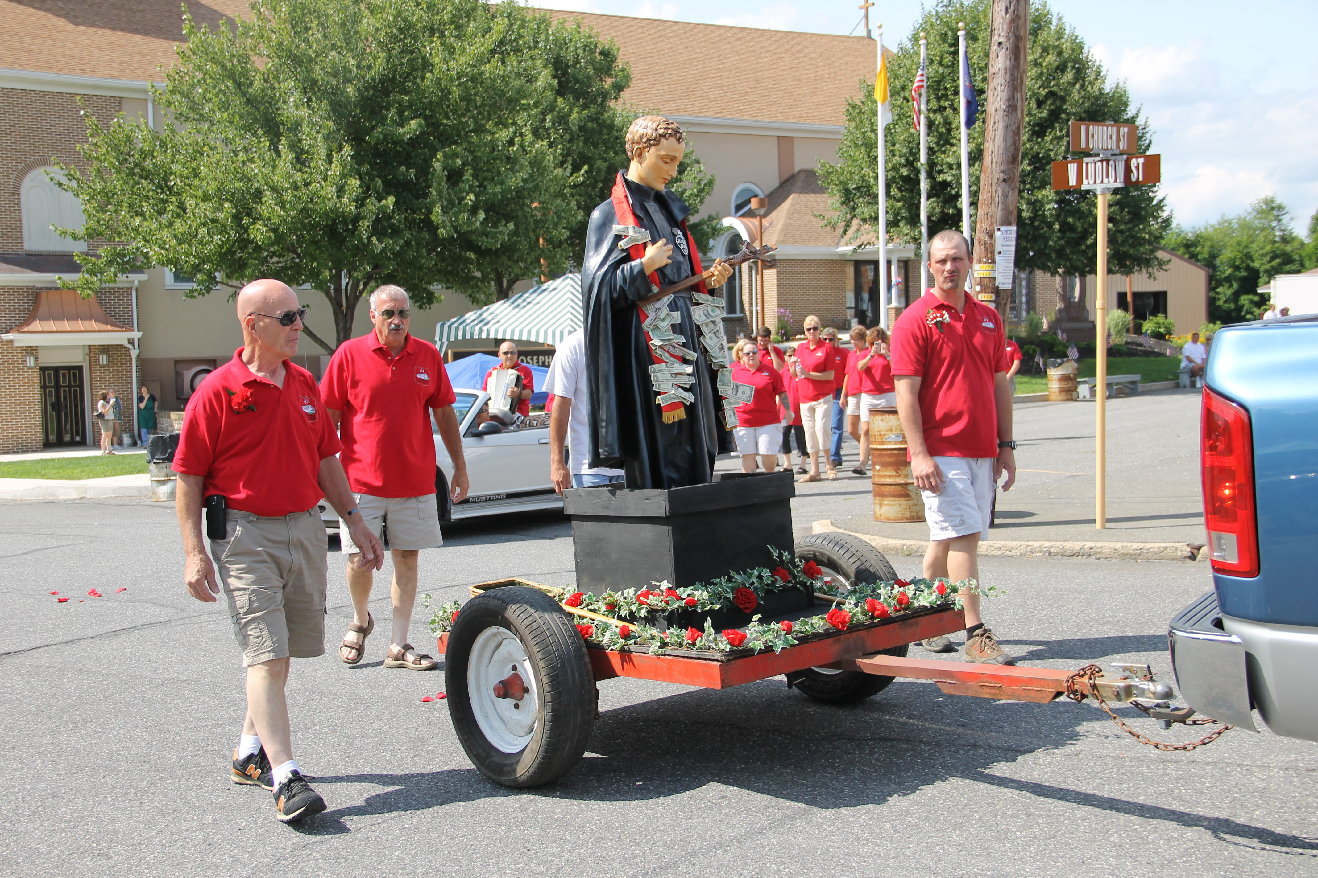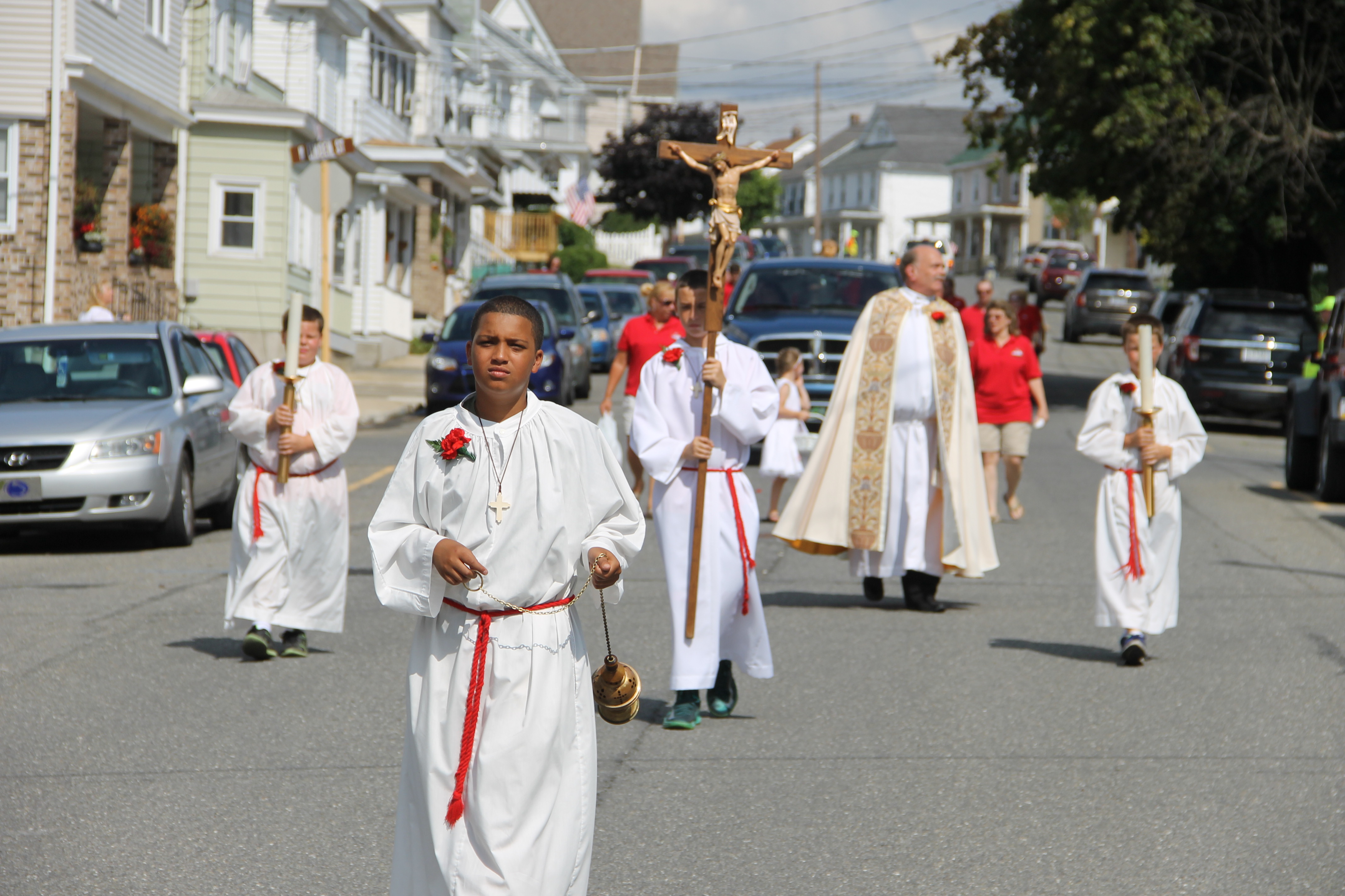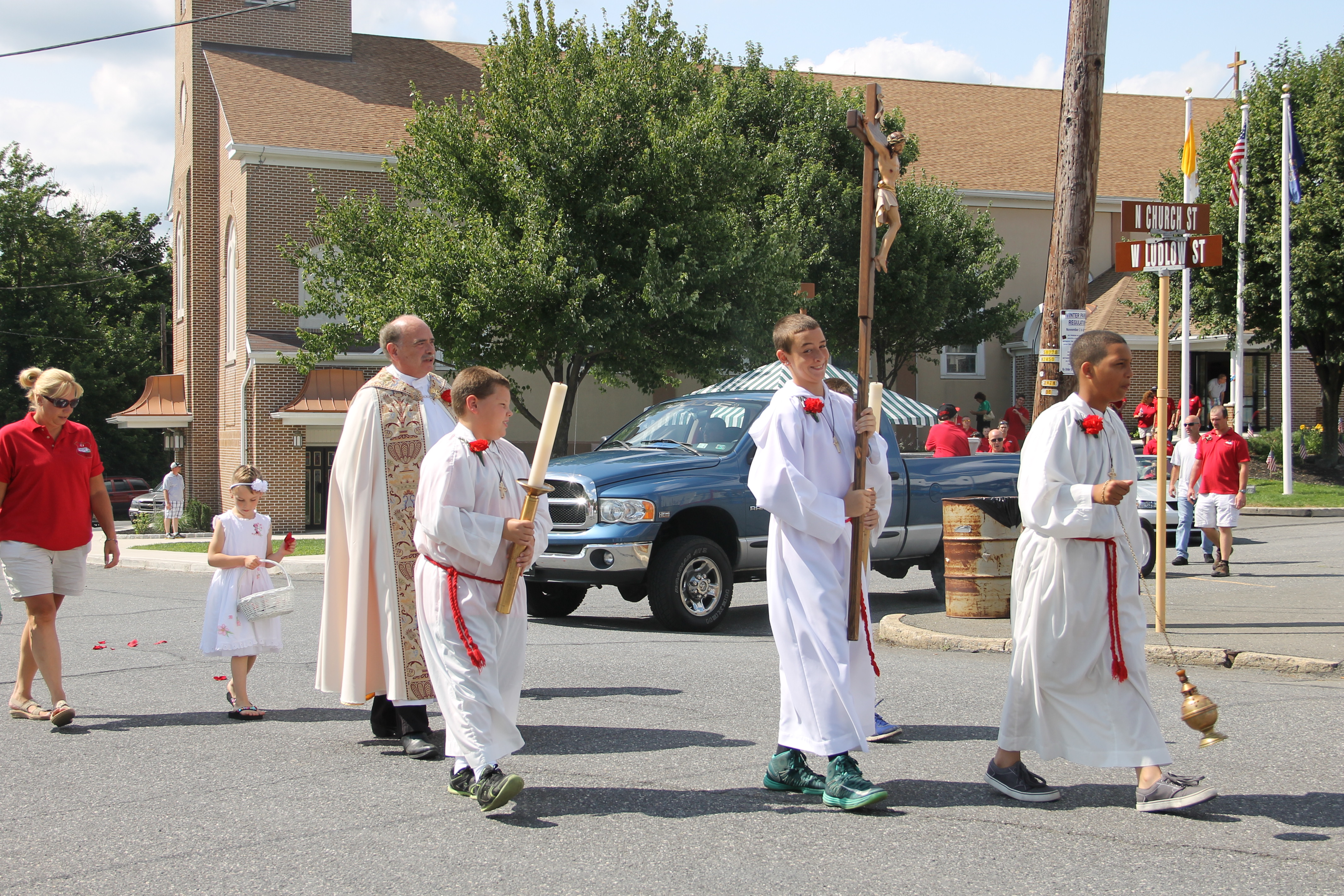 St. Gabriel’s Italian Club and St. Joseph’s Parish in Summit Hill held their annual Gabriel of Our Lady of Sorrows Procession through the western section of the borough yesterday (Sunday, July 20, 2014). The procession was held on the third day of the church’s 80th Annual Parish Festival.