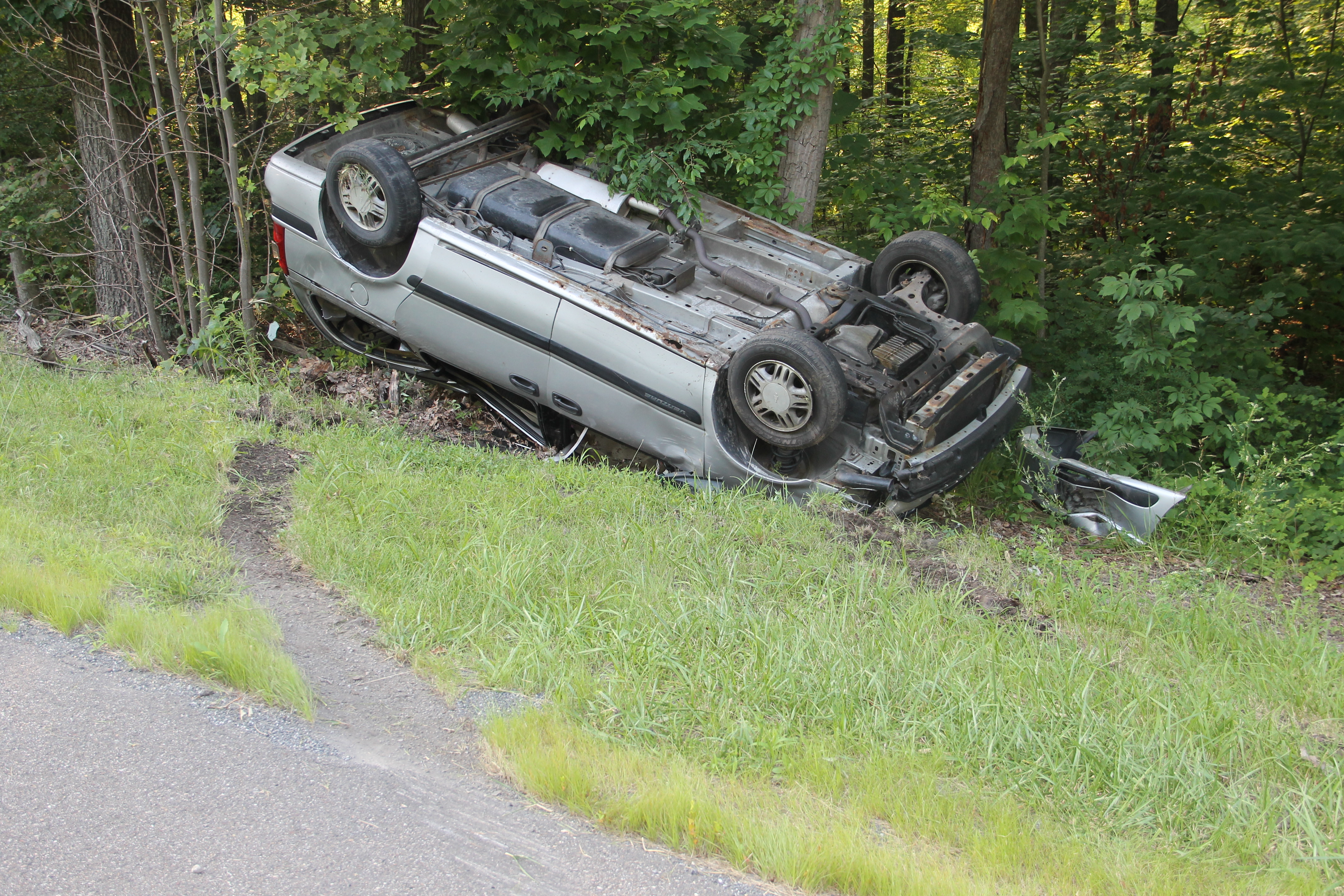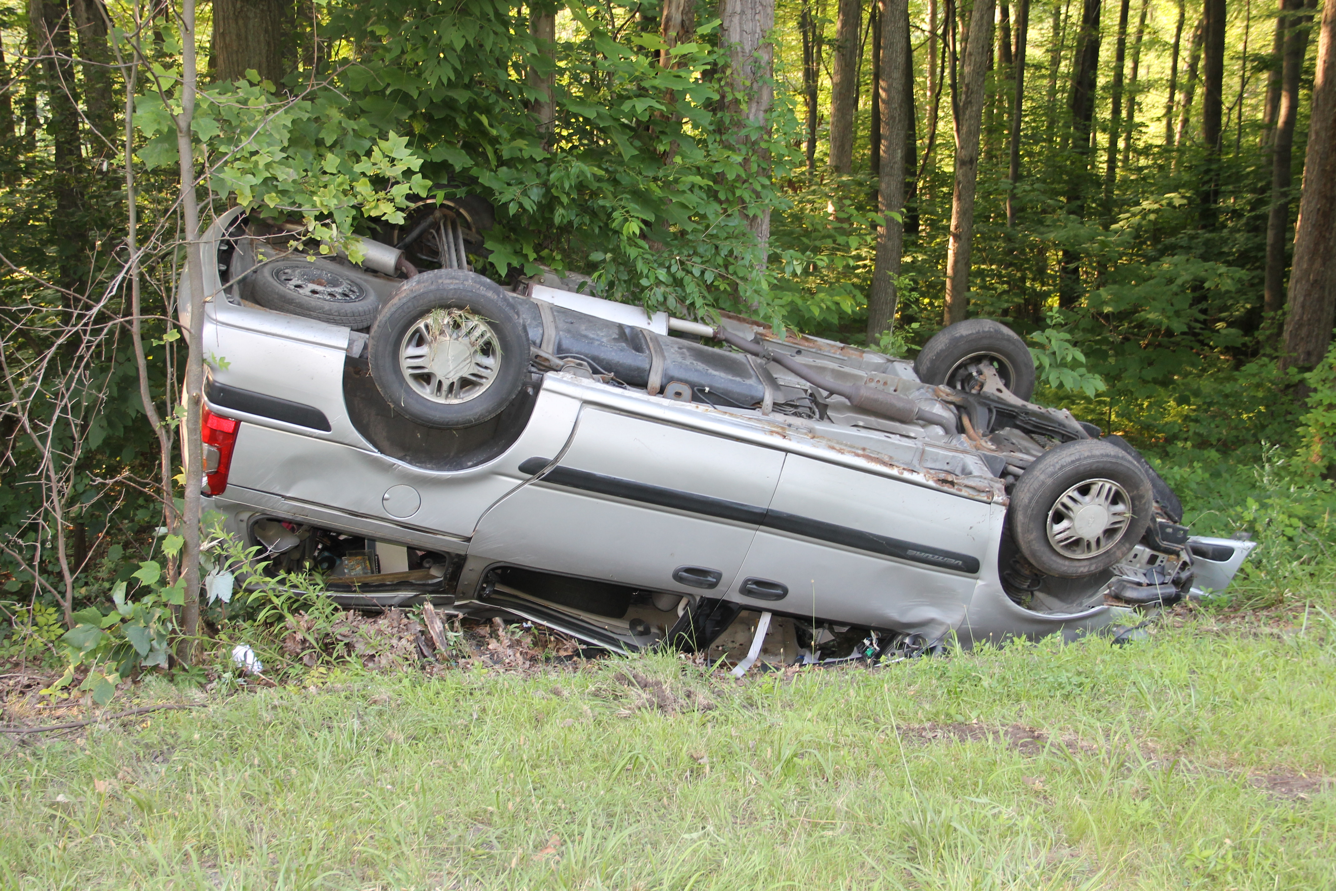 The incident occurred just east of the Ye Old Hauto Road intersection. The vehicle was traveling west when it overturned.