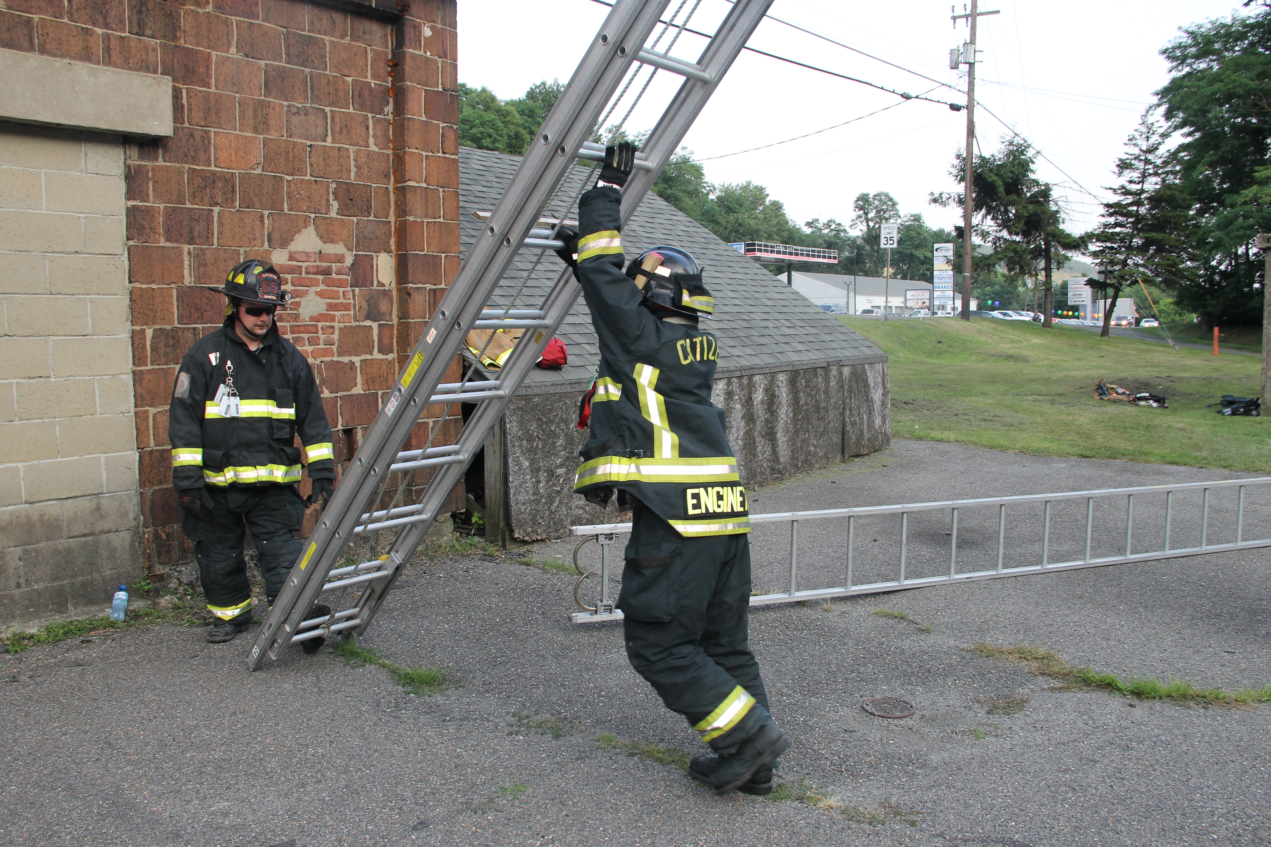 Firefighters from a number of area fire departments took part yesterday (Tuesday, July 22, 2014) in the ladder training section of the Pennsylvania Essentials of Fire Fighting 1 (Basic Module) course taught at the Tamaqua Fire Department Training Grounds (along SR309 north of the borough).