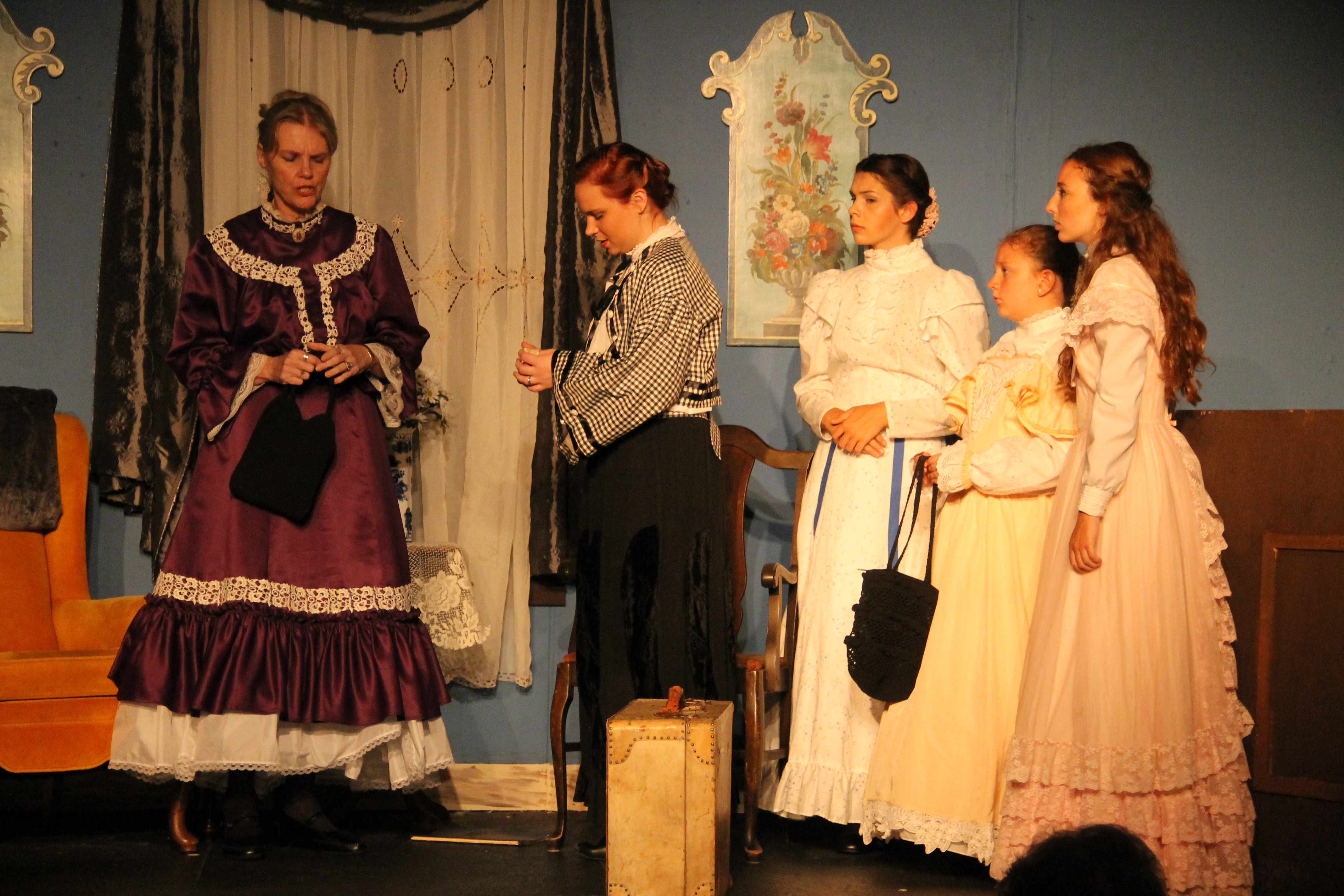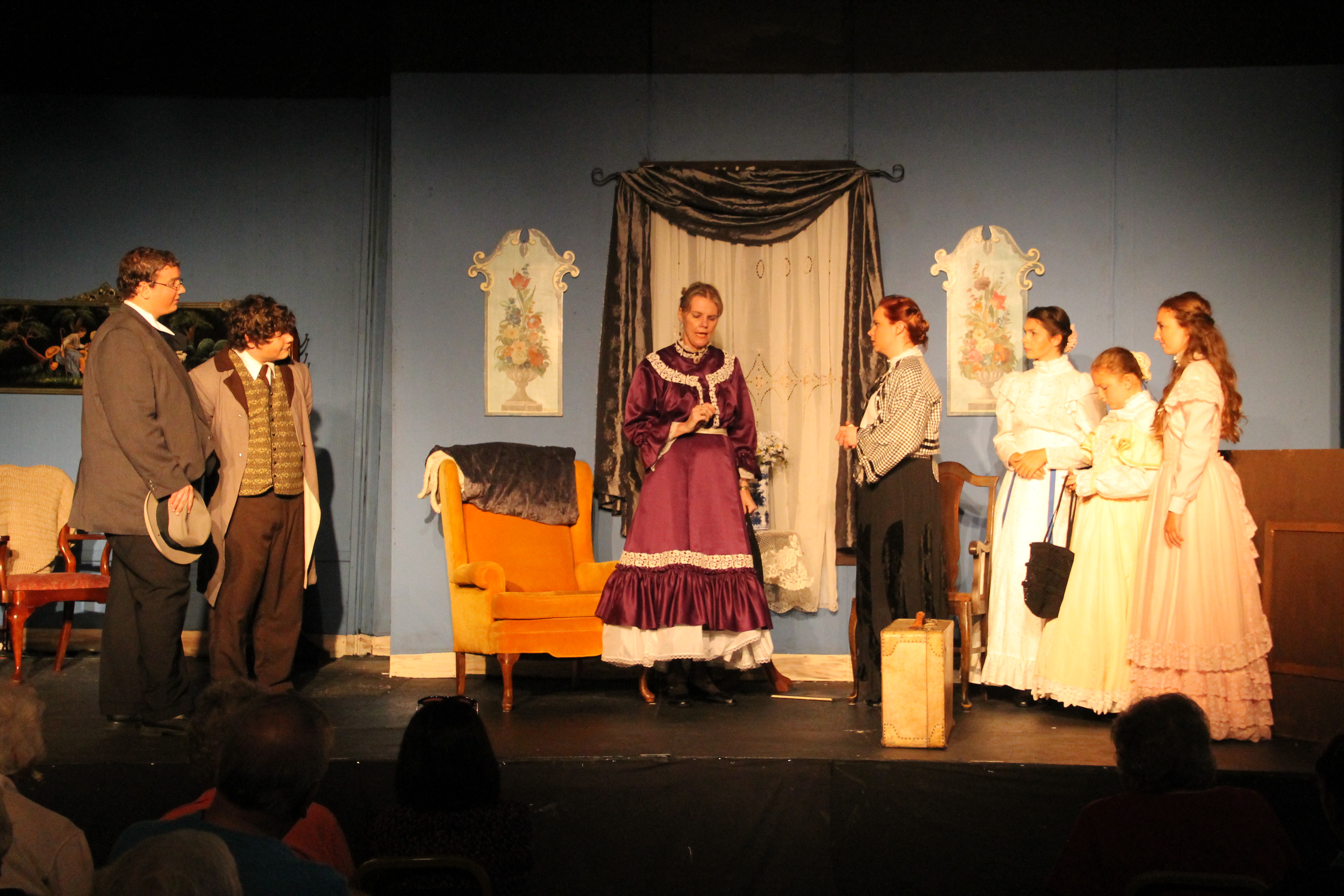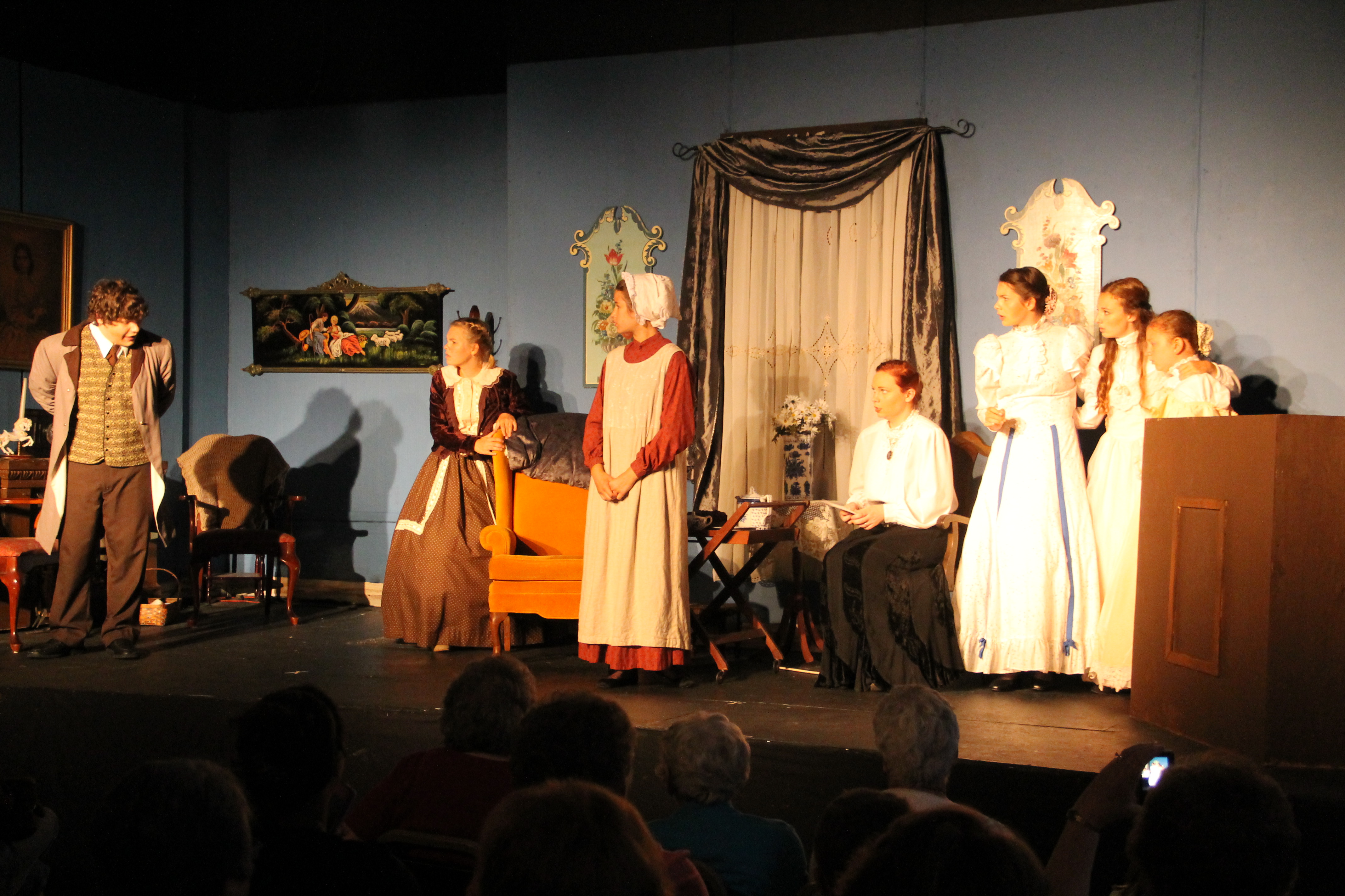 Involved were Lucille Fala-Brennan (playhouse founder), Alexa Giuvreau (Hannah), Olivia Stettler (Beth March), Alison McCord (Sallie Gardener), Alexis Bradbury (Annie Moffat), Stephanie Mau (Josephine ‘Jo’ March), and Susan Mau (Mrs. Gardener). Back row from left are Lily McDonald (Amy March), Michael McCord (Mr. March), Chelsea Lucas (Marmee), Karen Calarco (Aunt March), Erika Cassell (Meg March), Jonathan Donley (John Brooke), Robert Haney (Theodore ‘Laurie’ Lawrence), Amelia Cassell (Beth March), Jessica Wensus (Meg March), Rachel Rubright (Josephine ‘Jo’ March), Andrea Sanders (Amy March) and Kayleigh Starr (Belle Moffat).